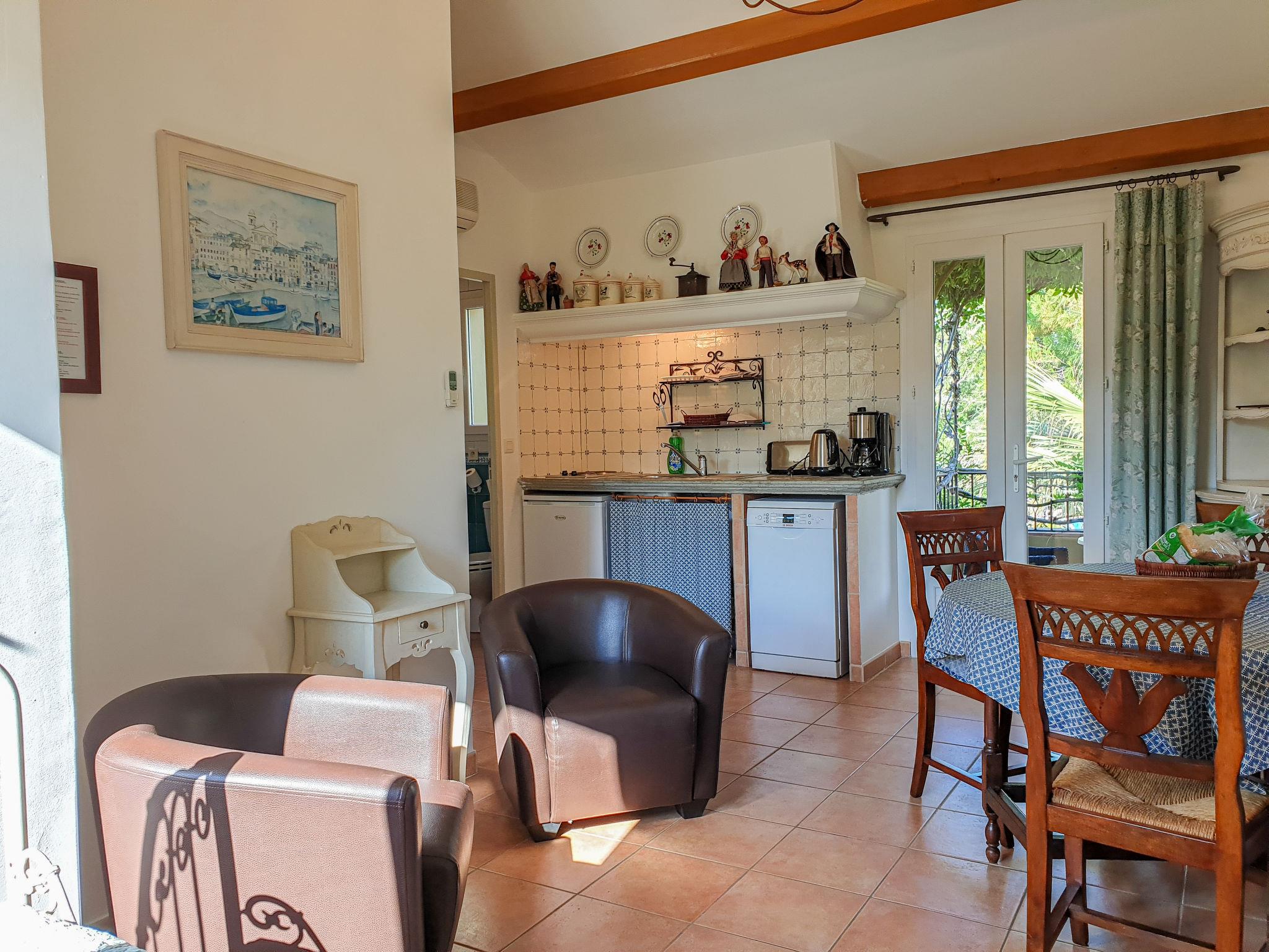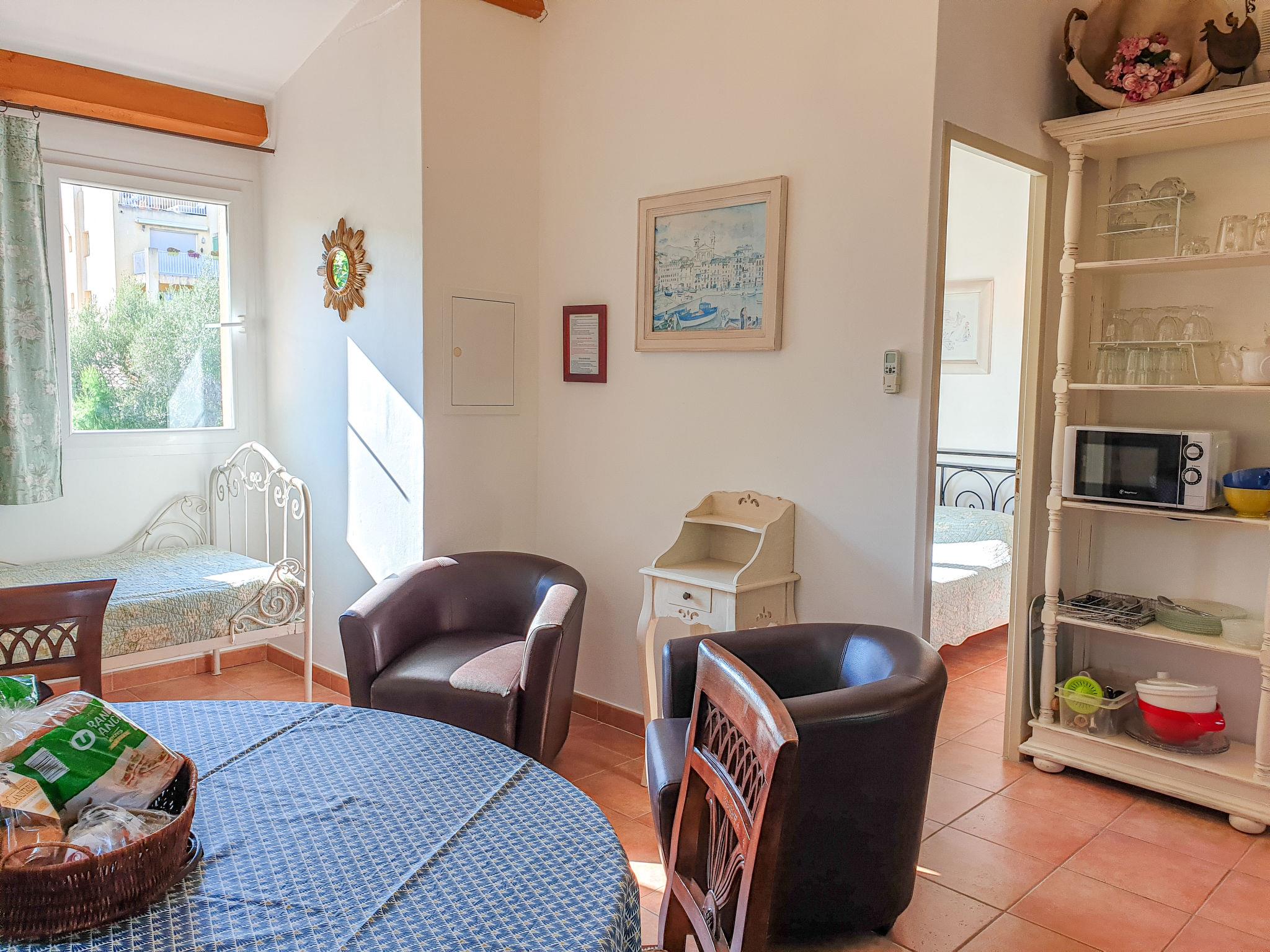 "T2 2 pers 30/32m²", 2-room apartment 30 to 32 m2. Bright, comfortable and tasteful furnishings: living/dining room with dining table and TV can be hired. 1 room with 1 french bed (140 cm, length 200 cm). Open kitchen (2 hot plates, dishwasher, toaster, kettle, microwave, electric coffee machine). Shower/WC. Heating, air-conditioning. Balcony or terrace. Terrace furniture, balcony furniture. Facilities: iron. Please note: not suitable for children under 18 years. Non-smokers only. Smoke alarm. Offer by a commercial proprietor according to Art. 155, IV, CGI FR9260.610.1