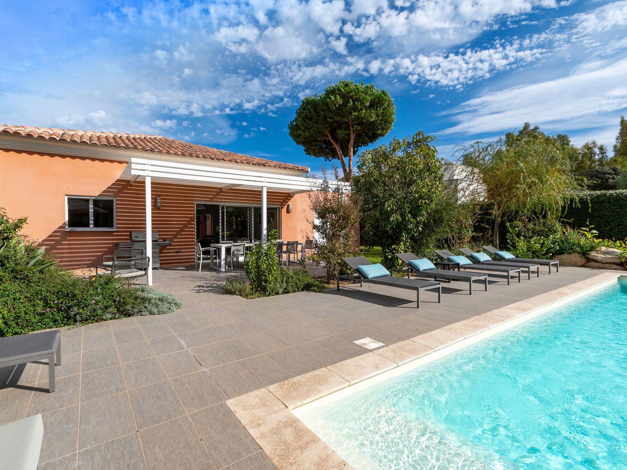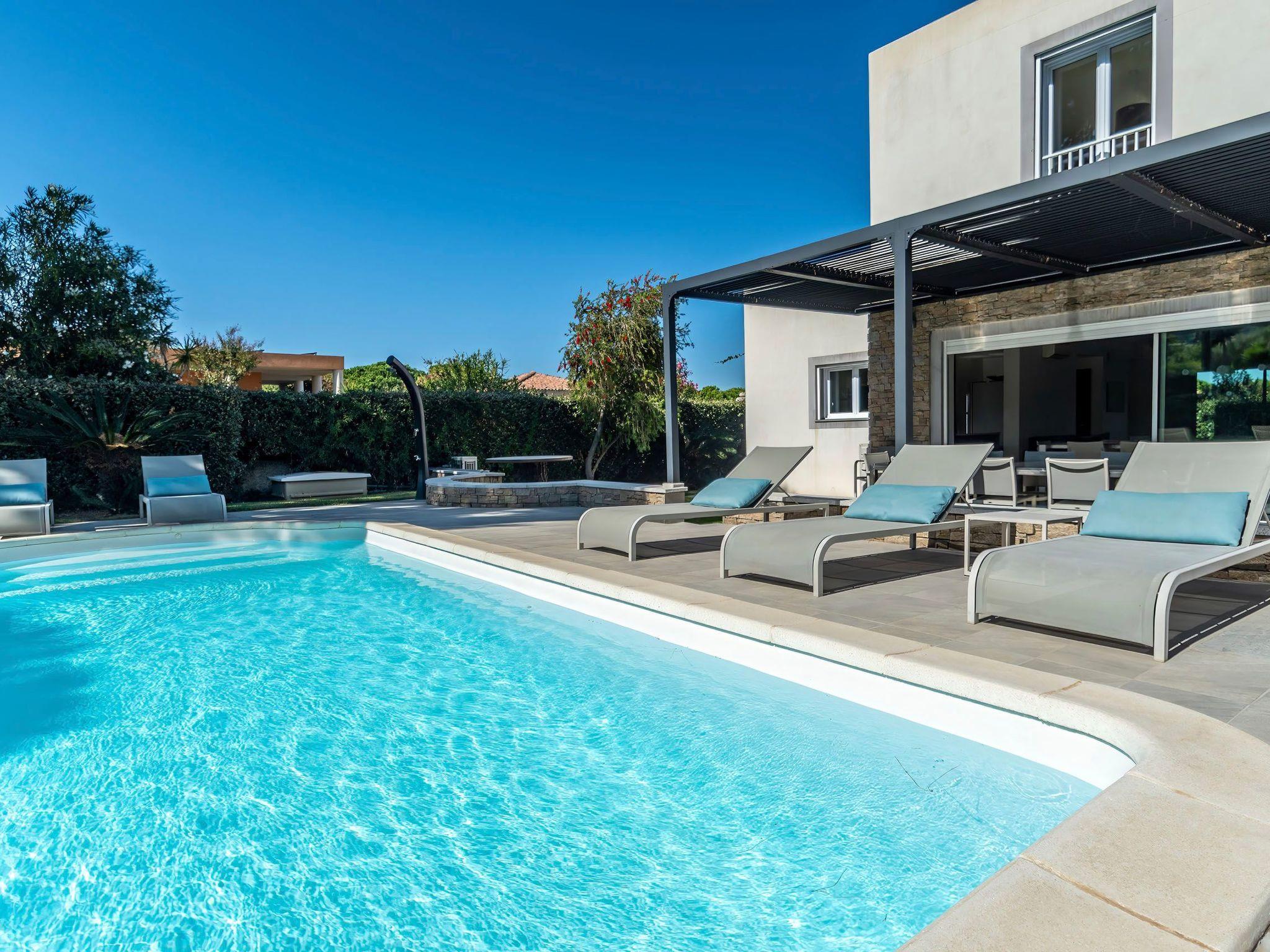 Outside, each villa opens onto a generous 1000 m² garden, where a private swimming pool awaits you for moments of absolute relaxation. A terrace with a table for 12, a Weber gas barbecue (cleaned daily) and an outdoor shower complete the idyllic setting. For added convenience, private parking for two cars is available, and for the safety of your loved ones, our pools can be equipped with protective barriers and even heated on request.