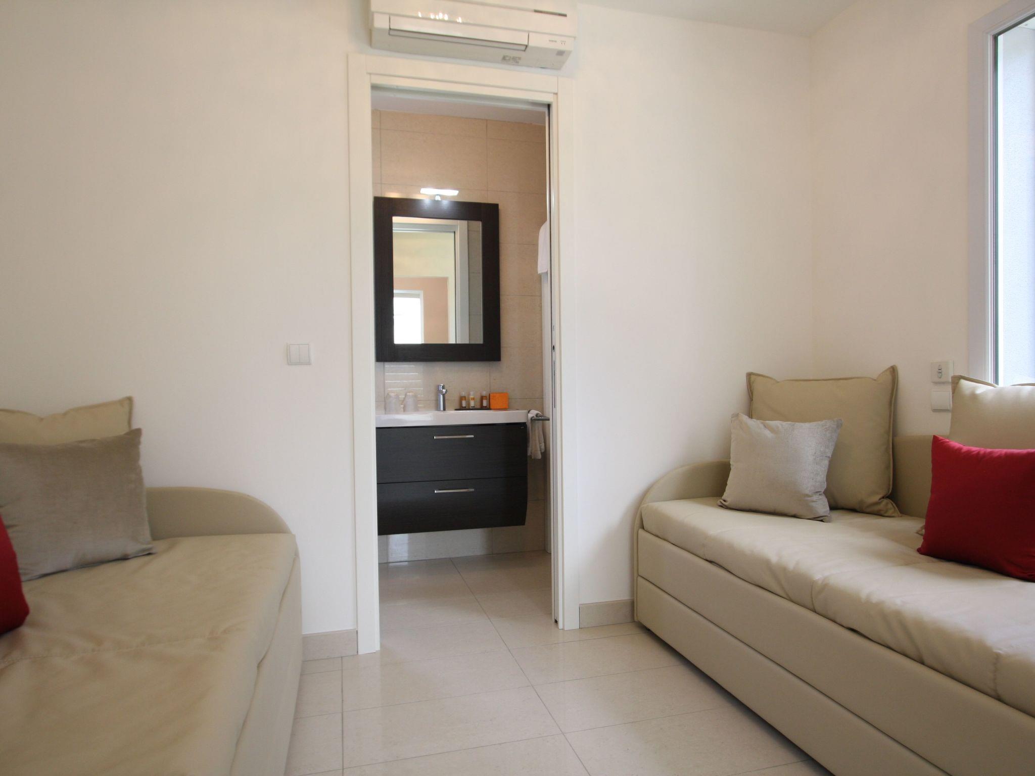 Large holiday home for 14 people in Calvi, in the heart of the Domaine Villas Mandarine, just 900 m from the beach. Ideal for families or groups, this exclusive villa offers 6 bedrooms with en suite bathrooms, air conditioning, private pool, fenced garden, and hotel services included: housekeeping, linen, concierge service, Wi-Fi.