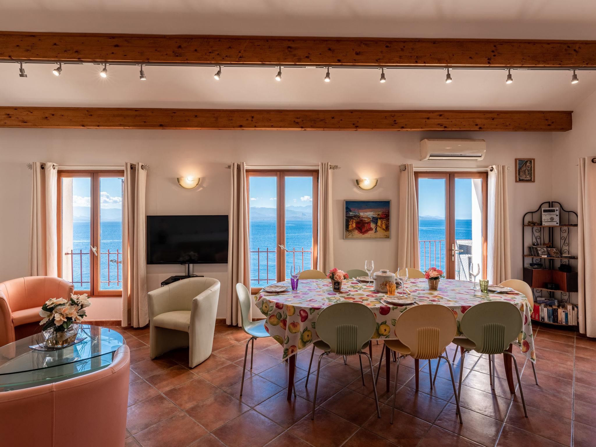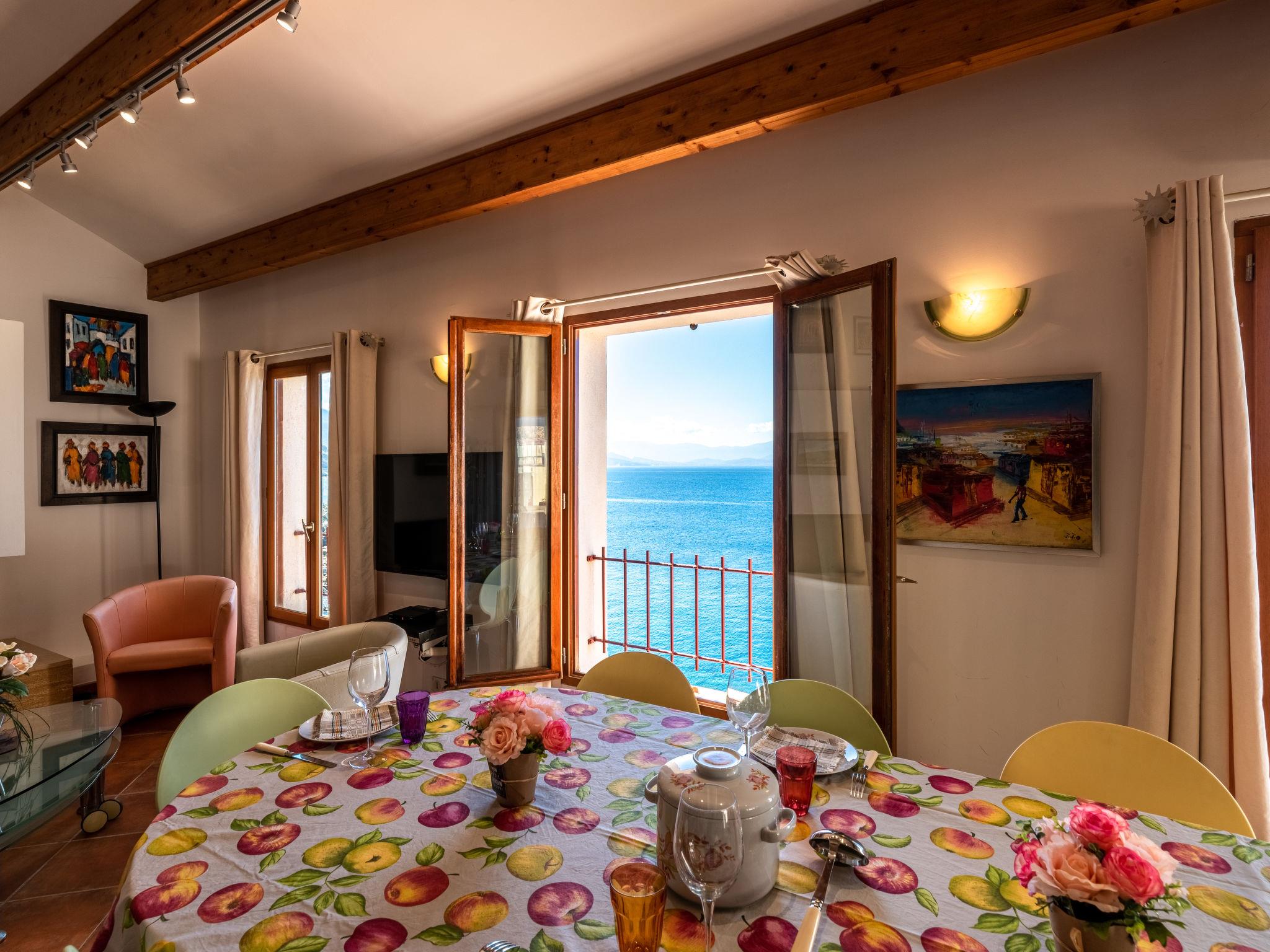 "Maison Balbi", 5-room house 140 m2 on 2 levels. Spacious, modern and tasteful furnishings: 1 room with 1 french bed (160 cm, length 200 cm). 1 room with 2 beds (90 cm, length 190 cm). Shower, sep. WC. Upper floor: large living/dining room with open-hearth fireplace, dining table, satellite TV and hi-fi system. Exit to the terrace. Small walk-through room. Exit to the terrace. 1 large room with 1 french bed (180 cm, length 200 cm), satellite TV. Exit to the balcony. Open kitchen (oven, dishwasher, 4 induction hot plates, toaster, kettle, microwave, freezer, electric coffee machine, Capsules for coffee machine (Nespresso) extra, fondue Set (cheese)) with small bar. Shower/WC. Electric heating, air-conditioning. Natural stone floors. Small balcony, large terrace, small patio, porch. Terrace furniture, balcony furniture, barbecue (portable), deck chairs, box-room. Marvellous panoramic view of the sea and Golfe de Saint-Florent. Facilities: washing machine, iron, baby cot. Internet (WiFi, free). Please note: non-smokers only. Maximum 1 pet/ dog allowed. Smoke alarm, fire extinguisher. 2B058000025Q2