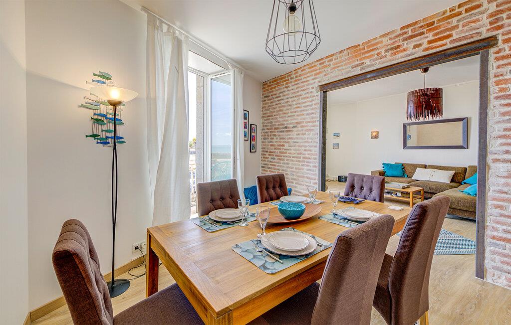 Velkommen til denne charmerende lejlighed, hvor der venter jer en enestående beliggenhed og en betagende udsigt over Cancale-bugten. Lejligheden er oprindeligt fra 1880'erne/1890'erne, og i dag fremstår den yderst flot med den perfekte blanding af autentisk charme og moderne komfort. Størrelsen gør den til et ideelt valg for den lille familie eller to vennepar, der er på udsigt efter en vaskeægte badeferie lige ved stranden. Benyt jer af det funktionelle interiør og tilbered en lækker morgenmad i køkkenet, inden I begiver jer på tur.