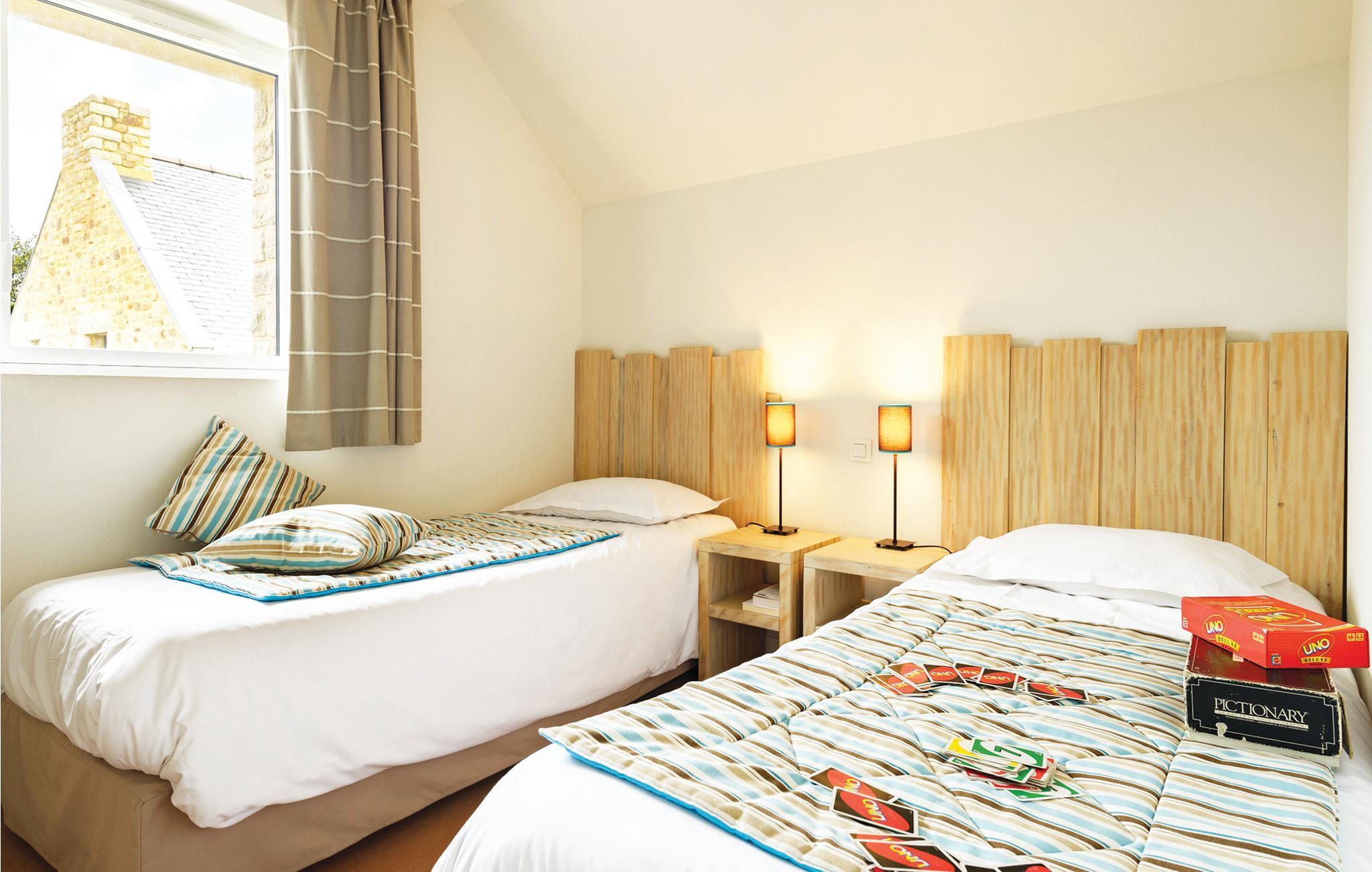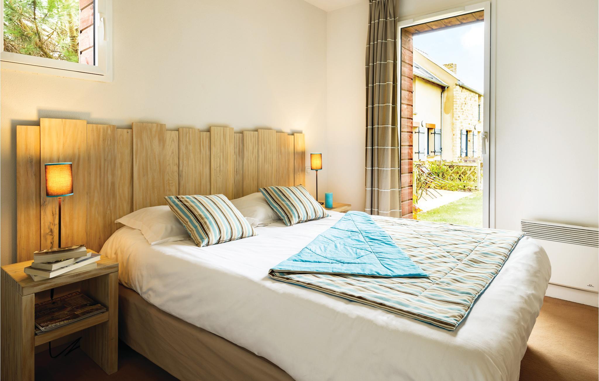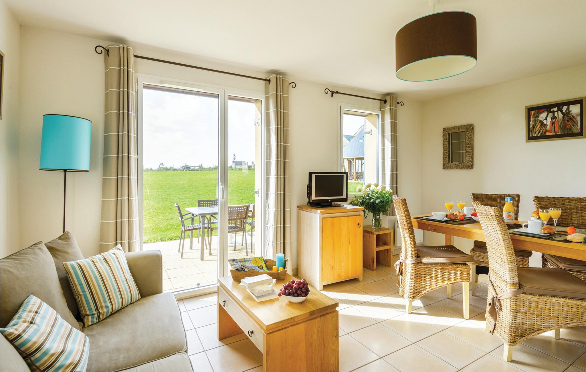 Huset ligger i en feriepark og er opført i en typisk, bretonsk stil, der kombinerer sten og skifer. Boligen har udsigt over Port de la Houle, havet og til åbner ud til flotte grønne omgivelser. Indretningen fremtræder lyst, moderne og komfortabelt, så I får her en skøn base til at hvile stængerne efter en aktiv feriedag. Nyd nogle lækre fælles måltider ved det lange spisebord med et godt glas vin, inden I finder jer godt til rette med brætspil eller en god film i sofaen.