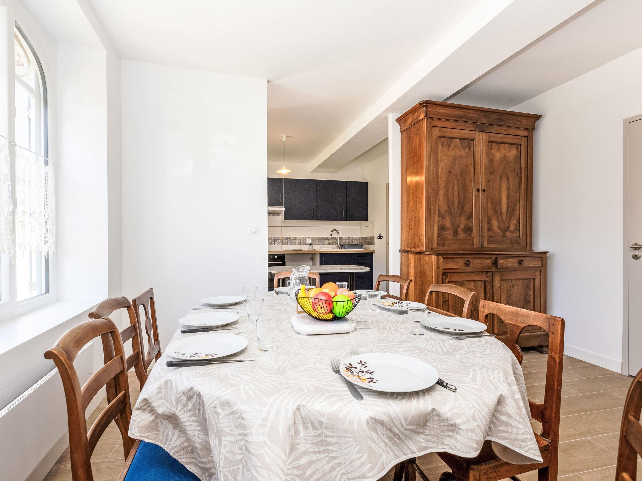 5-room house 116 m2 on 2 levels. Comfortable and tasteful furnishings: large living/dining room with TV (flat screen). 1 room with 1 french bed (1 x 140 cm, length 190 cm), shower/WC. Open kitchen (oven, 4 induction hot plates, toaster, kettle, microwave, freezer, electric coffee machine, Capsules for coffee machine (Tassimo) extra). Sep. WC. Upper floor: 2 rooms, each room with 1 french bed (1 x 140 cm, length 190 cm). 1 room with 2 beds (90 cm, length 190 cm). Shower/WC. Electric heating. South facing position, garden 90 m2, south facing position. Terrace furniture, barbecue, deck chairs. Facilities: washing machine, iron, hair dryer. Internet (WiFi, free). Parking (1 car). Please note: suitable for families. Smoke alarm. Offer by a private individual according to Art. 155, IV of CGI.