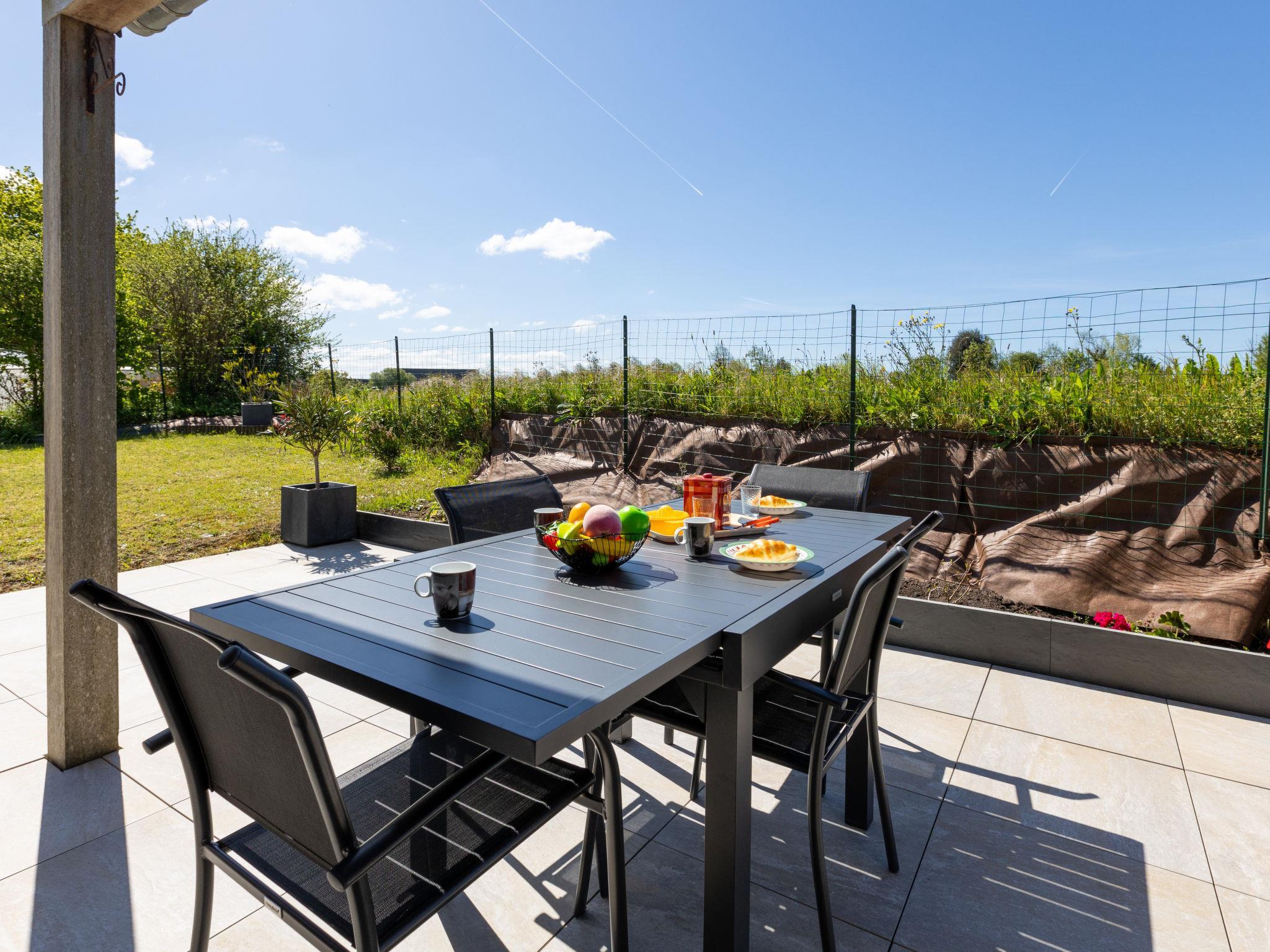 Terraced house "Agapanthe", 2 storeys, surrounded by fields. In the district of la Ville Garnier 2 km from the centre of Cancale, in a quiet position residential area (villas), 1 km from the sea, 4 km from the beach. Private: well-kept garden (fenced) with lawn, parking at the house. Shop 1.7 km, grocery 1.7 km, supermarket 1.7 km, restaurant 900 m, bakery 1.5 km, bus stop "Ville es gris" 550 m, railway station "La Gouesnière" 7.8 km, sandy beach "du verger" 4 km, thermal baths "Thermes marins de St Malo" 11.5 km. Sports harbour 1.3 km. Nearby attractions: Saint Malo Intramuros 14.5 km, Le grand aquarium de St malo 17 km, Dinan 34.3 km, Dinard 20 km, Dol de Bretagne 20 km, Le Mont St Michel 46 km. The keys‘ handover takes place by the agency Interhome in Cancale, 2 km.