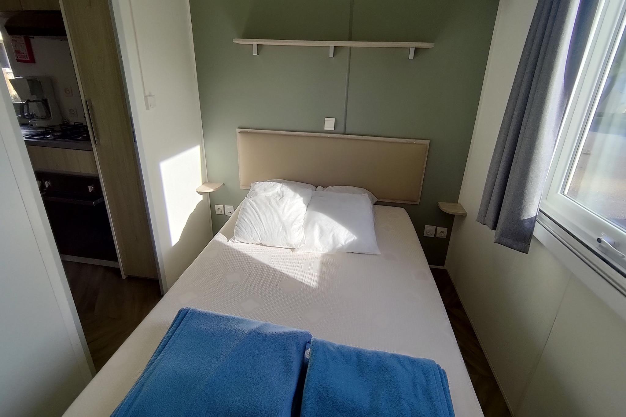 Bo med din familie i dette komfortable mobilehome ved havet i Canet-en-Roussillon. Her kan du nyde fritidsaktiviteter såsom vandlandet, mens børnene nyder ferieparkens legeplads. Der er noget for enhver smag i denne utrolige feriepark. Dette mobilehome har 3 soveværelser og en sovesofa, et veludstyret køkken og et badeværelse. Det er beliggende i en feriepark, der strækker sig mellem Middelhavet og Etang du Canet, og tilbyder over 9 km fin sandstrand. Der er tennisbane, boulebane, fodboldbane, boblebad, trampolin, bordtennis, brætspil og legetøj. Hvis du ønsker det, kan et valgfrit pas lejes for at nyde parkens storslåede pools. South Beach, den nærmeste af alle strandene, ligger kun 500 meter væk. Der ligger en restaurant, et supermarked og et bageri i kort afstand. Etang de Canet Saint-Nazaire er et paradis for naturelskere, et enestående fredet sted, et yndet tilholdssted for lyserøde flamingoer om sommeren, men også hjemsted for over 200 fuglearter og en særlig rig flora. Gå ikke glip af et besøg i fiskerlandsbyen og opdagelsesstien langs bredden af søen (mountainbike-ture, fitness-sti). Med dette komfortable mobilehome mellem himmel og hav, vil du nyde en ferie fuld af farver og minder.