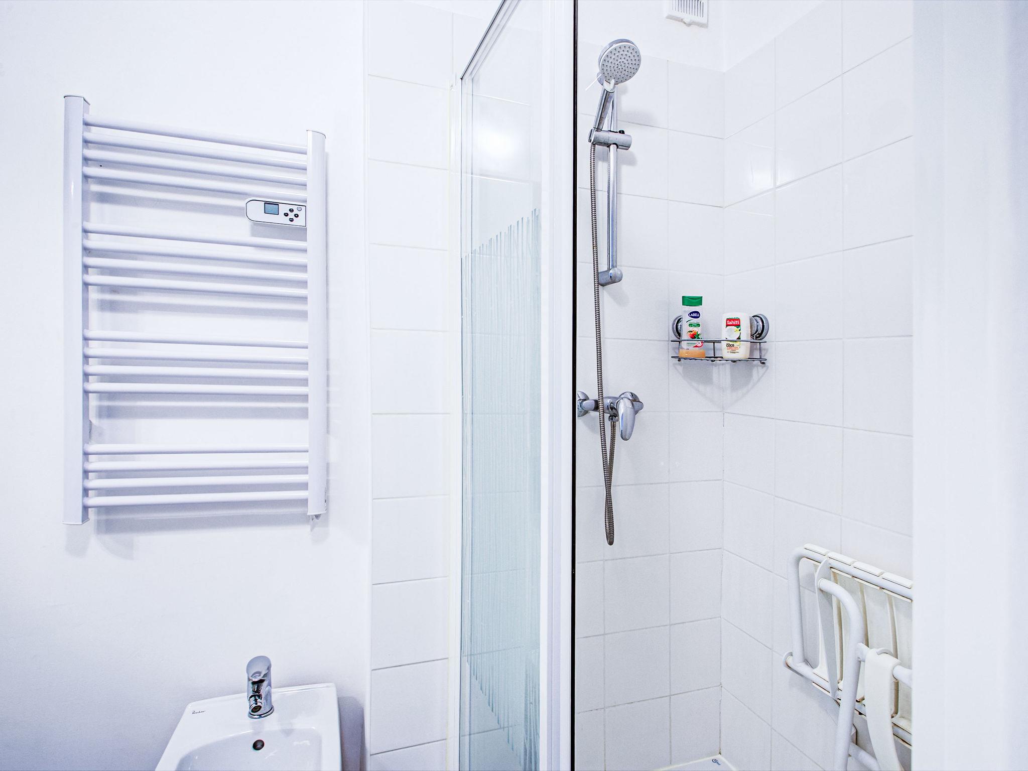 1-room apartment 35 m2 on 1st floor, north-west facing position. Fully renovated: living/sleeping room with 1 fold-away bed (140 cm, length 190 cm), dining table and TV (flat screen). Exit to the balcony. Kitchenette (dishwasher, 4 ceramic glass hob hotplates, toaster, kettle, microwave, freezer, electric coffee machine, Capsules for coffee machine (Krups) extra). Shower, bidet, sep. WC. Electric heating. Small balcony 6 m2. Balcony furniture. Facilities: washing machine, children's high chair, baby cot (extra). Internet (WiFi, extra). Parking. Please note: non-smokers only. Smoke alarm. Parking spaces available only from 01.08 untill 31.08 (public parking with subscription). Offer by a private individual according to Art. 155, IV of CGI.