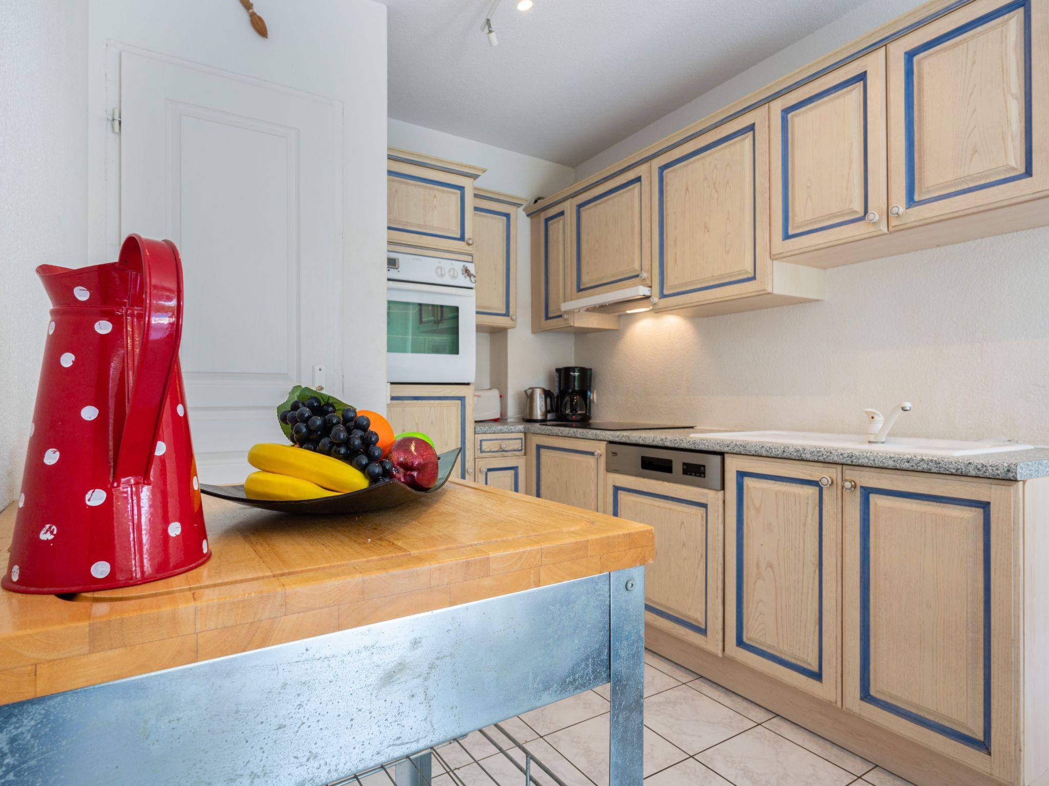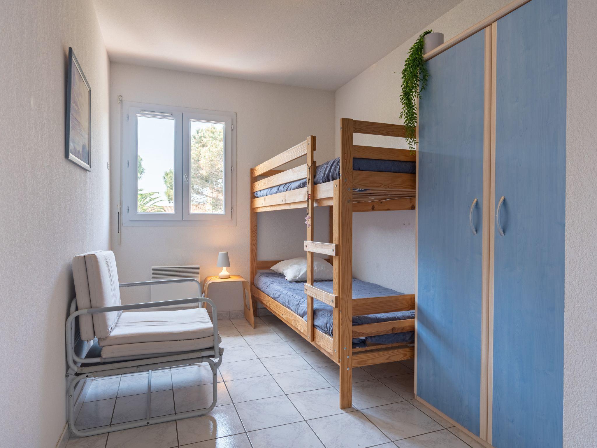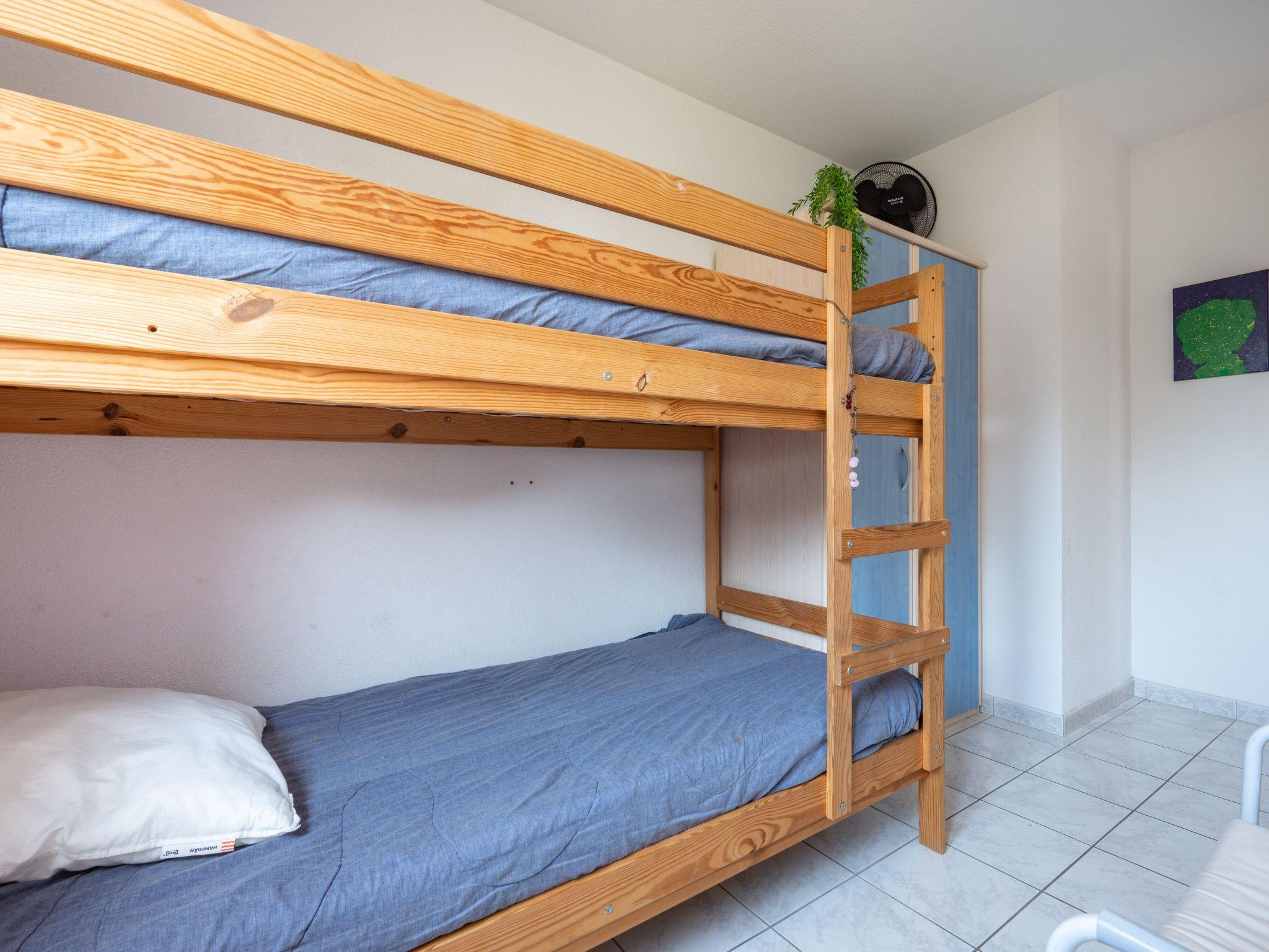4-room terraced house 65 m2 on 2 levels. Very practical furnishings: living/dining room with TV (flat screen), fan. Exit to the terrace. 1 room with 1 french bed (140 cm, length 190 cm), fan. Kitchenette (oven, dishwasher, 4 induction hot plates, toaster, kettle, electric coffee machine). Sep. WC. Heating, electric heating, air-conditioning. Upper floor: 1 room with 1 x 2 bunk beds (90 cm, length 190 cm), fan. 1 room with 1 sofabed (140 cm, length 190 cm), fan. Shower/WC, sep. WC. Large terrace 20 m2. Terrace furniture, barbecue. Facilities: washing machine. Internet (WiFi, free). Parking. Please note: smoke alarm.