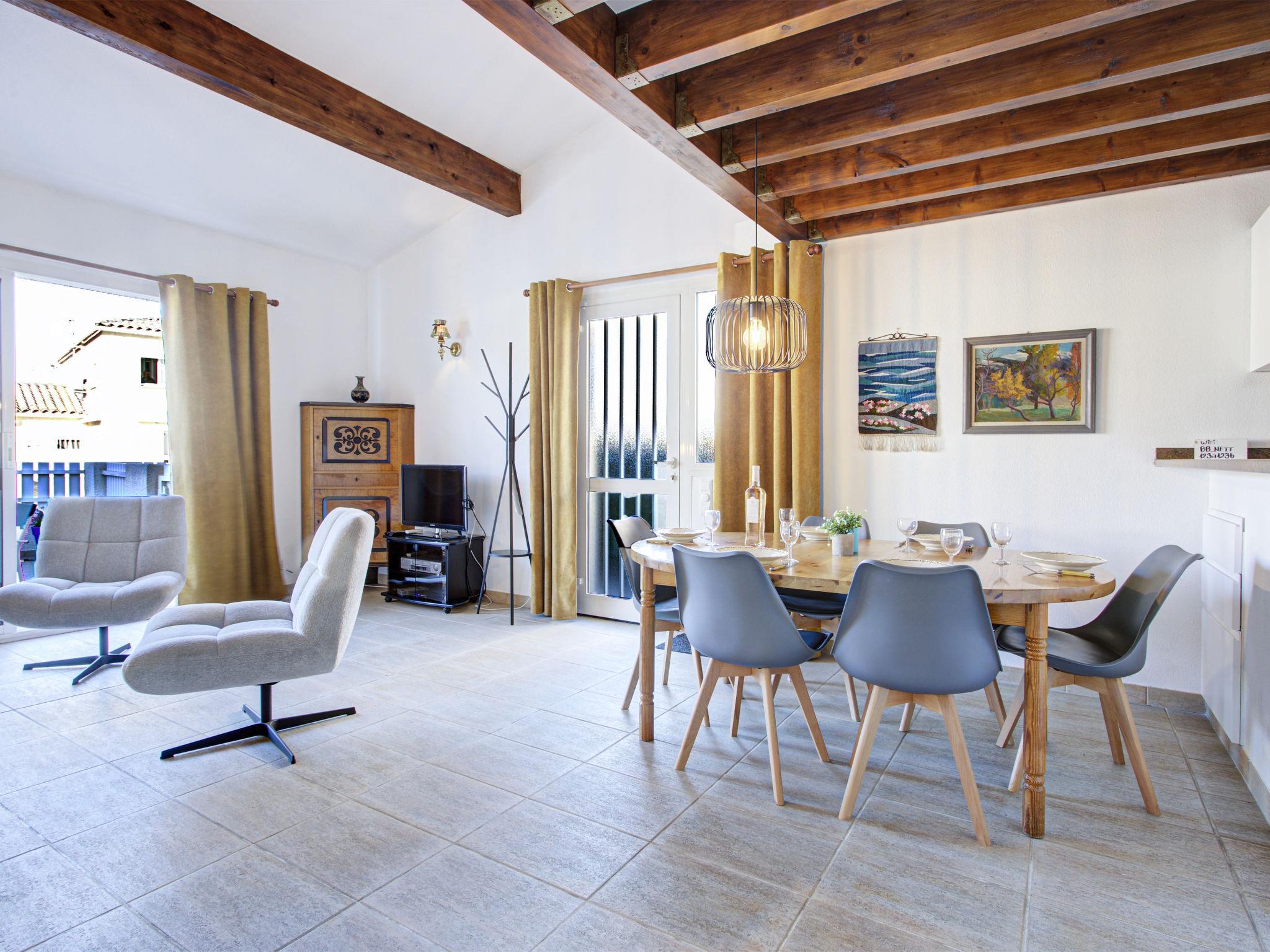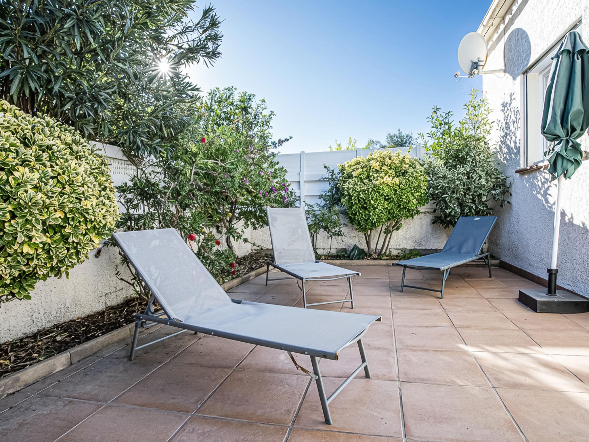 Canet Plage: Terraced house "Villa 12 Cassin", 2 storeys. In the district of Canet sud, in a quiet position in the residential district, 100 m from the sea, 100 m from the beach. Shop, grocery, supermarket 300 m, shopping centre 8 km, restaurant, bar, bakery 300 m, bus stop 150 m, sandy beach 100 m, park "Aqualand St Cyprien" 10 km, diving center 18 km, outdoor swimming pool 3 km, indoor swimming pool 3 km, lake Etang de Canet 1 km. Sports harbour 5 km, golf course (18 hole) 8 km, sailing school 5 km, minigolf 3 km. Nearby attractions: Perpignan 12 km, Collioure 25 km, Banyuls 37 km, Espagne 35 km, Andorre 180 km, Barcelone 200 km. Well-known lakes can easily be reached: Lac de Villeneuve de La Raho 19 km, Lac de St Jean Pla de Corts 39 km, Gorges du Gouleyrous 42 km. Hiking paths: Abbaye de St Martin du Canigou 70 km, Pic du Canigou 77 km, Lac des Bouillouses 105 km.