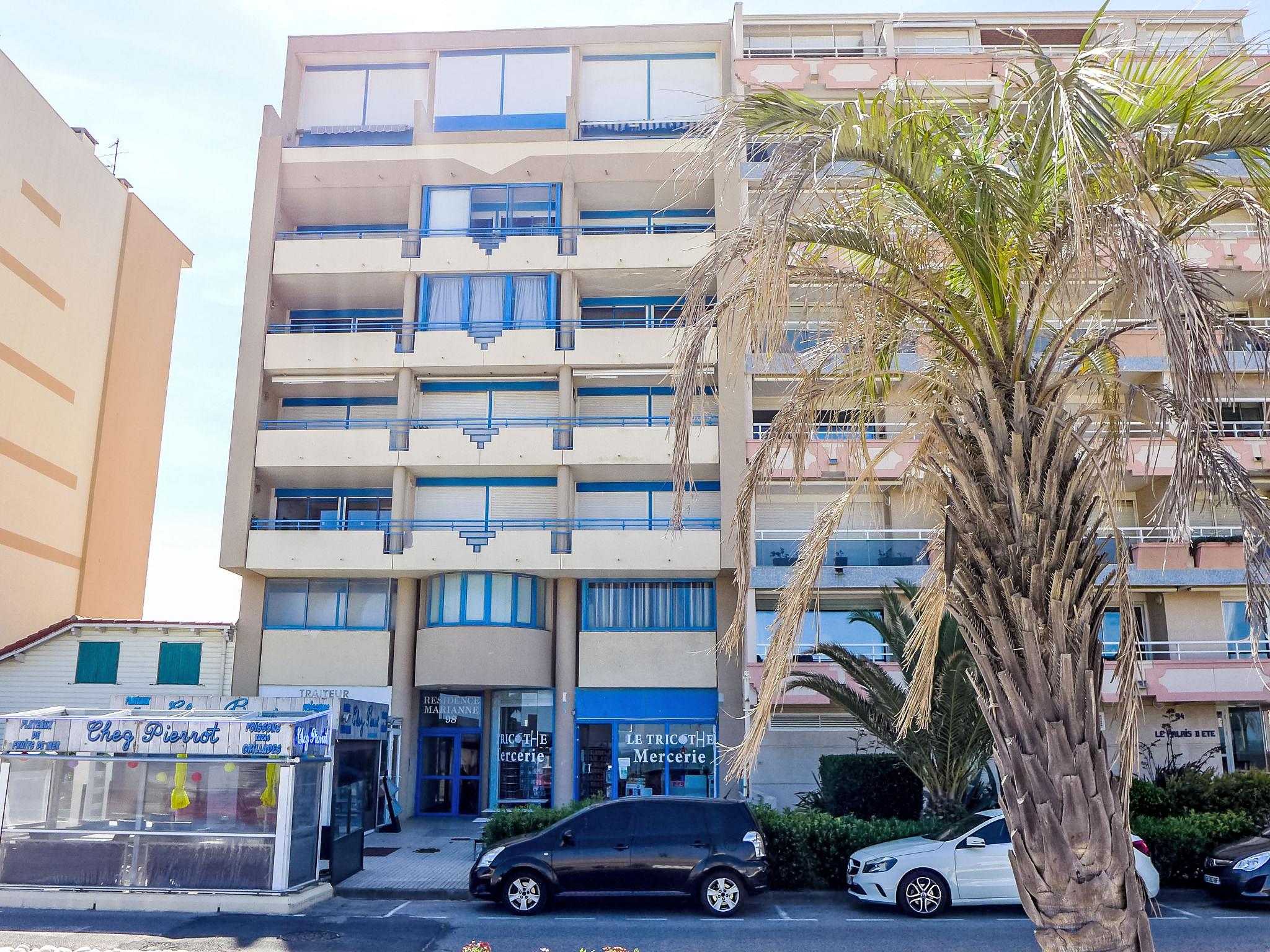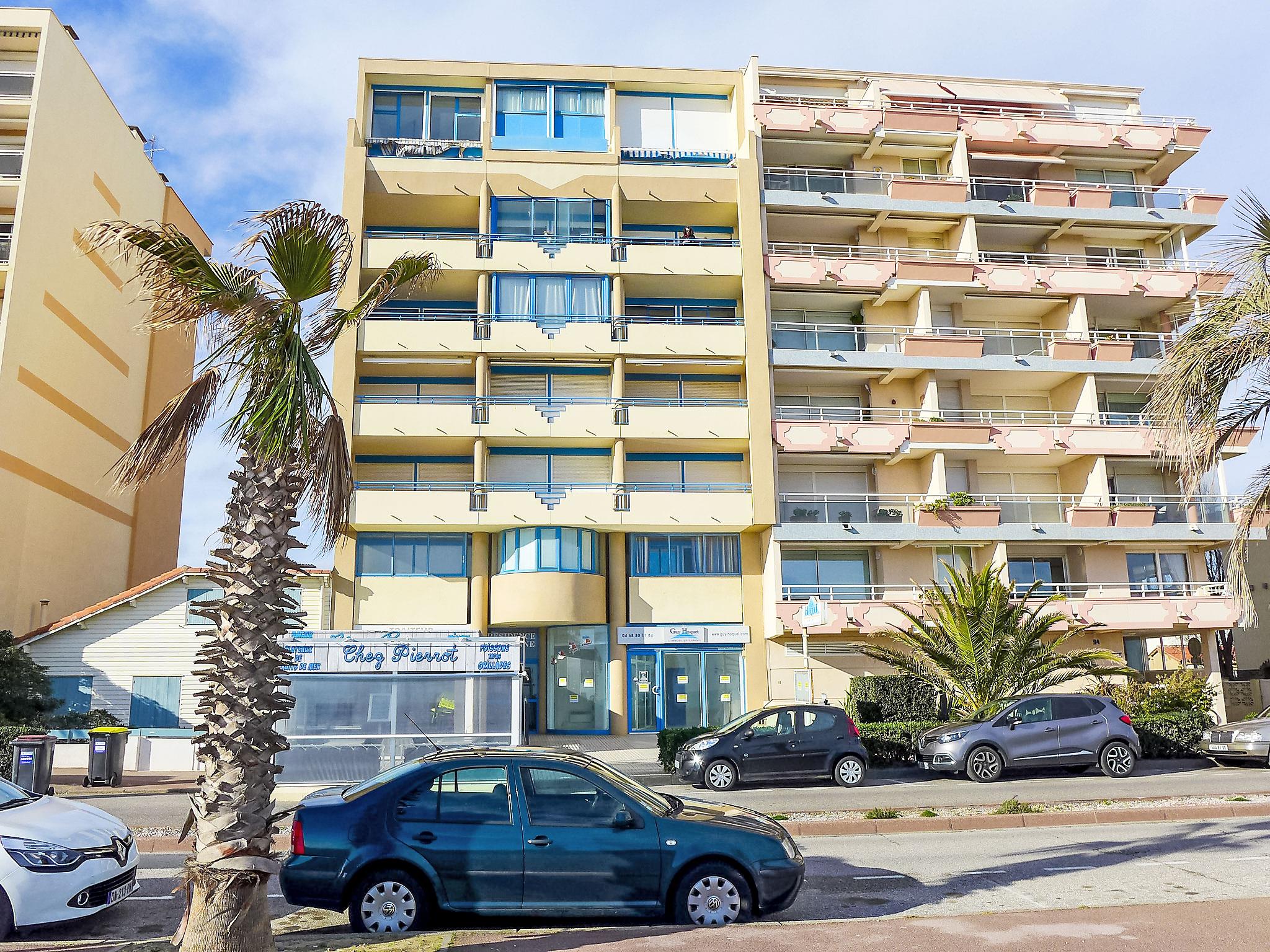 Canet Plage: Residence "Marianne", 6 storeys. In the district of Canet Sud, 20 m from the sea, 20 m from the beach, east facing position. In the complex: lift. Shop 100 m, restaurant 20 m, bar 100 m, bus stop 150 m, railway station "Perpignan" 12 km, sandy beach 20 m, park "Aqualand St Cyprien" 10 km, diving center 18 km, outdoor swimming pool 2 km, indoor swimming pool 2 km, lake Etang de Canet 2 km. Sports harbour 2 km, golf course (18 hole) 10 km, sailing school 2 km, minigolf 100 m. Nearby attractions: Perpignan 12 km, Collioure 25 km, Banyuls 37 km, Espagne 35 km, Andorre 180 km, Barcelone 200 km. Well-known lakes can easily be reached: Lac de Villeneuve de la Raho 19 km, Lac de St Jean Pla de Corts 39 km, Gorges du Gouleyrous 42 km. Hiking paths: Abbaye St Martin du Canigou 70 km, Pic du Canigou 77 km, Lac des Bouillouses 105 km.