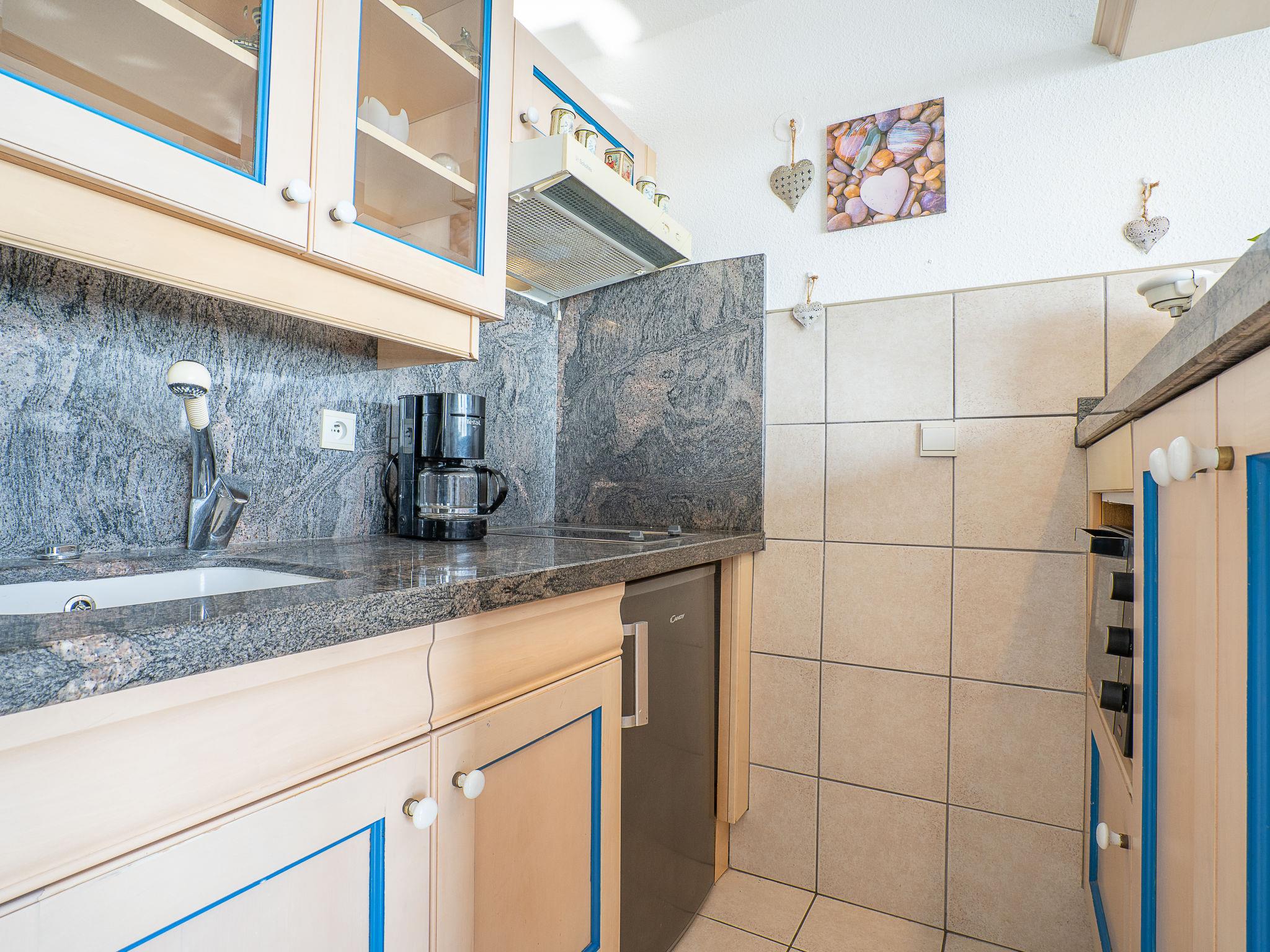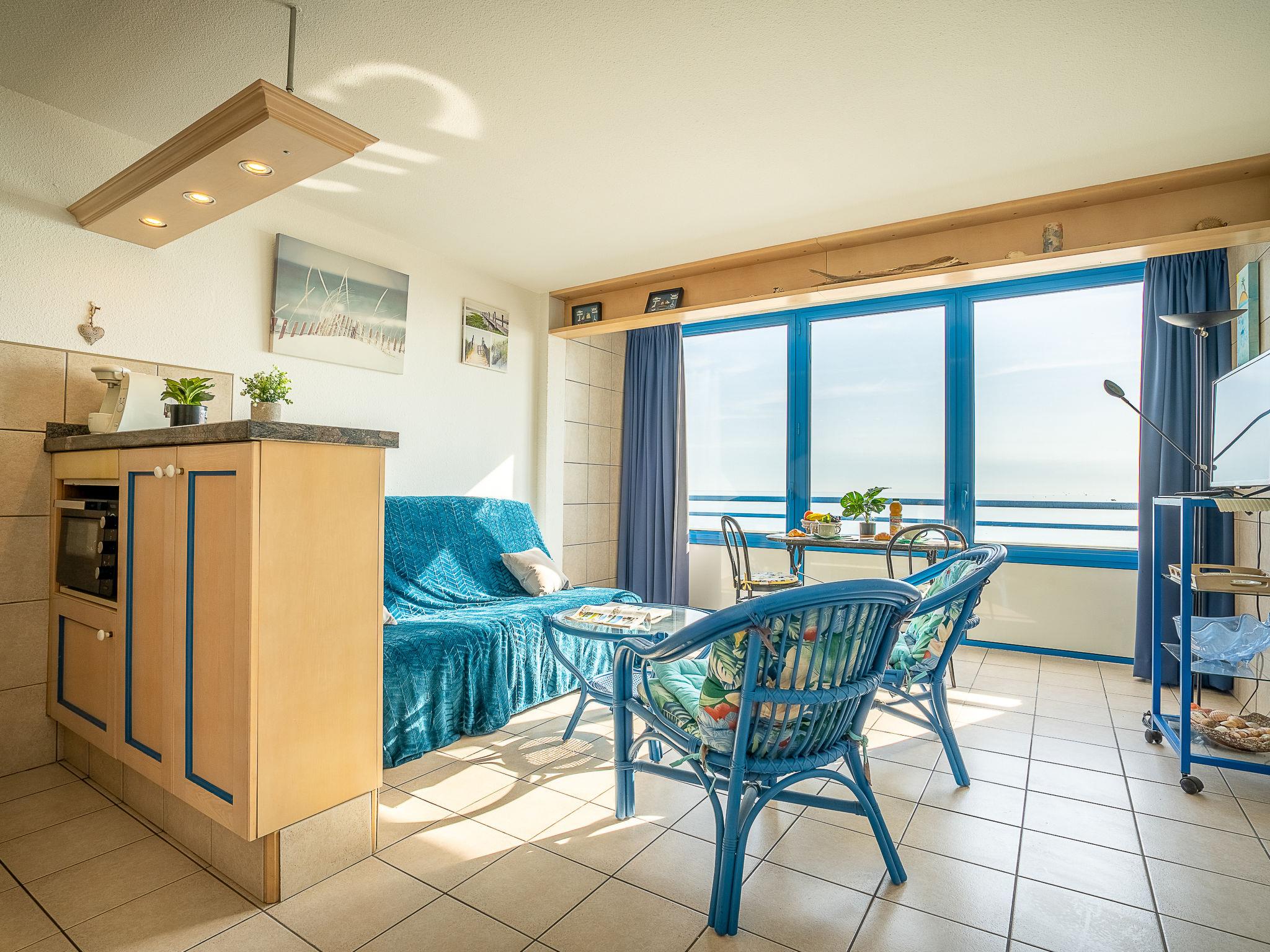 1-room apartment 27 m2 on 4th floor. Living/sleeping room with 1 double sofabed (1 x 140 cm, length 200 cm), TV and flat screen. Kitchenette (oven, 2 ceramic glass hob hotplates, microwave, electric coffee machine). Shower, sep. WC. Heating, electric heating. Beautiful view of the sea. Facilities: Internet (WiFi, extra). Please note: maximum 1 pet/ dog allowed. Smoke alarm.