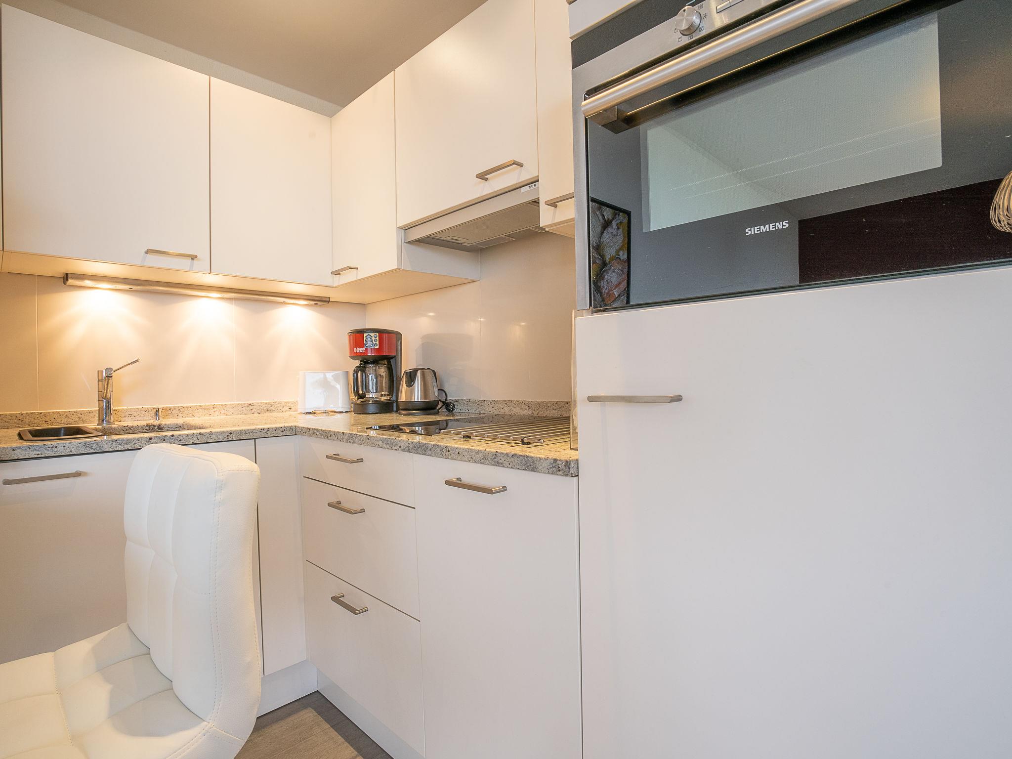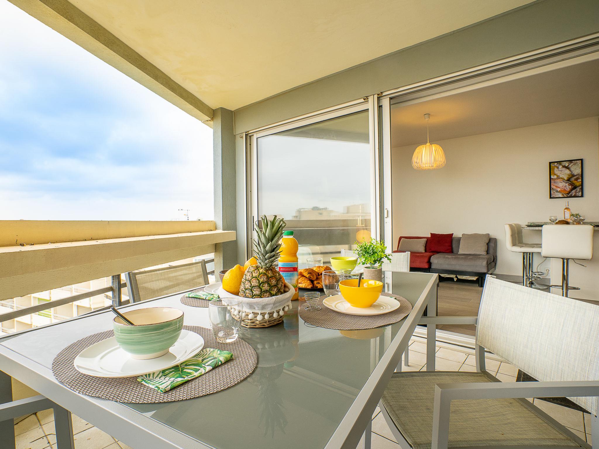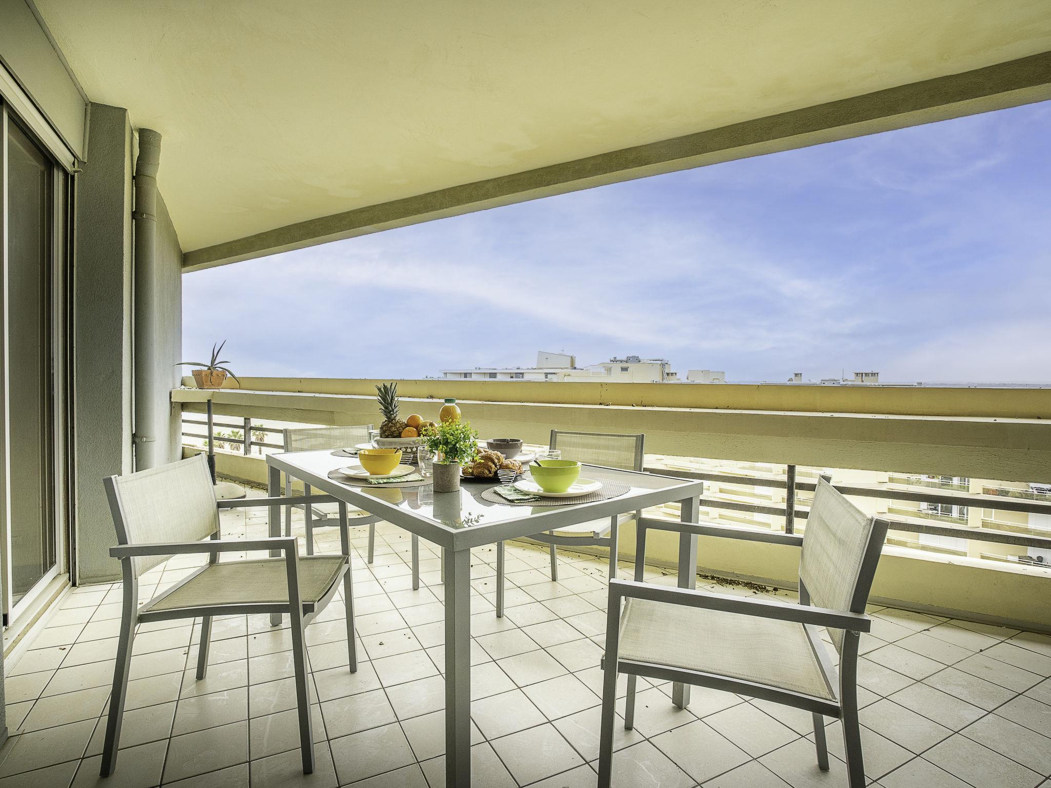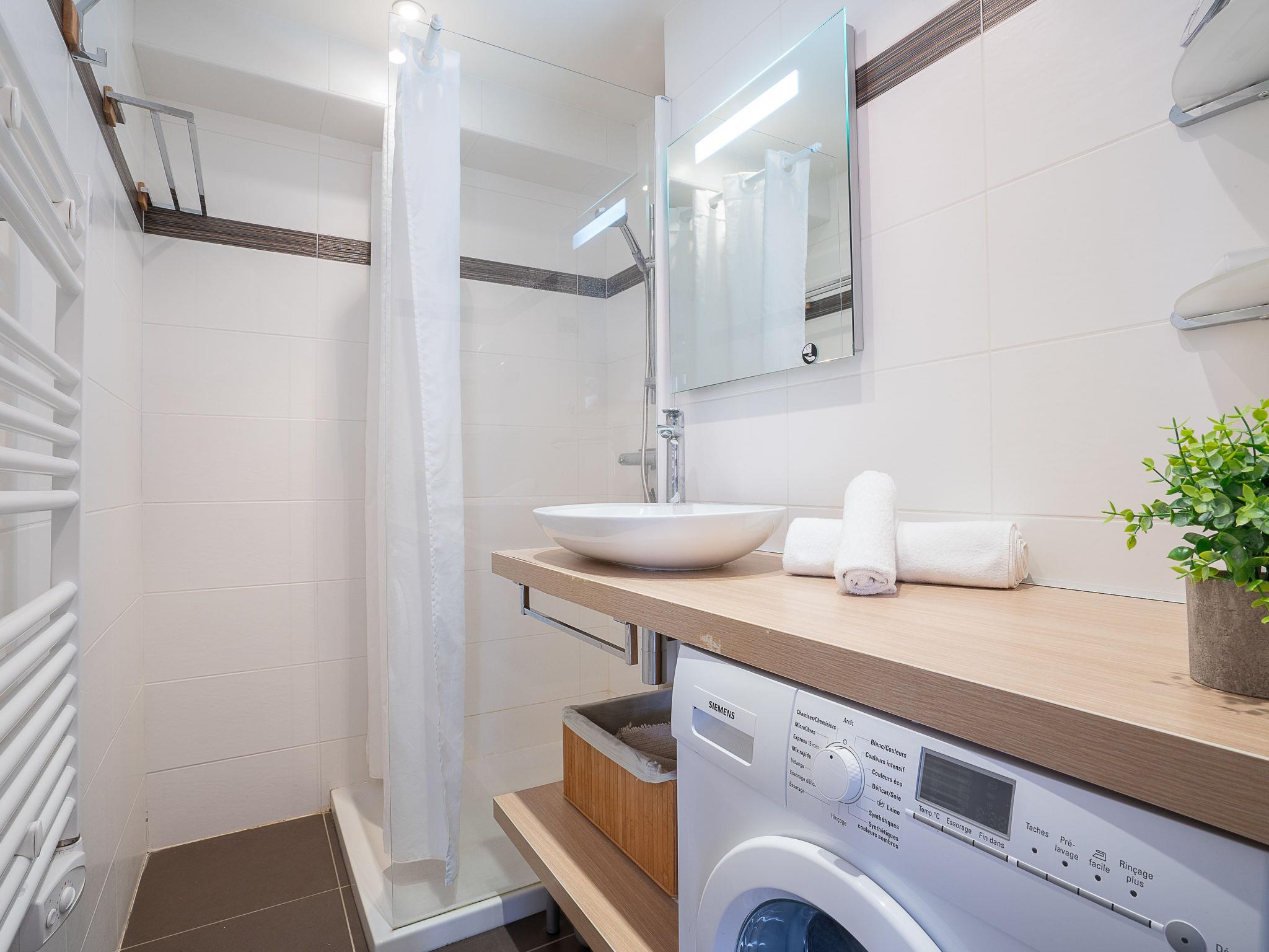 2-room apartment 38 m2 on 7th floor. Living/dining room with 2 sofabeds (90 cm, length 200 cm), flat screen and DVD. Exit to the terrace. 1 room with 1 french bed (2 x 90 cm, length 200 cm). Kitchenette (oven, dishwasher, 2 induction hot plates, toaster, kettle, electric coffee machine, combination microwave). Shower, sep. WC. Electric heating. Terrace 11 m2. Very beautiful view of the sea, the lake, the mountains and the countryside. Facilities: washing machine. Internet (WiFi, free). Parking space n 348. Please note: smoke alarm.