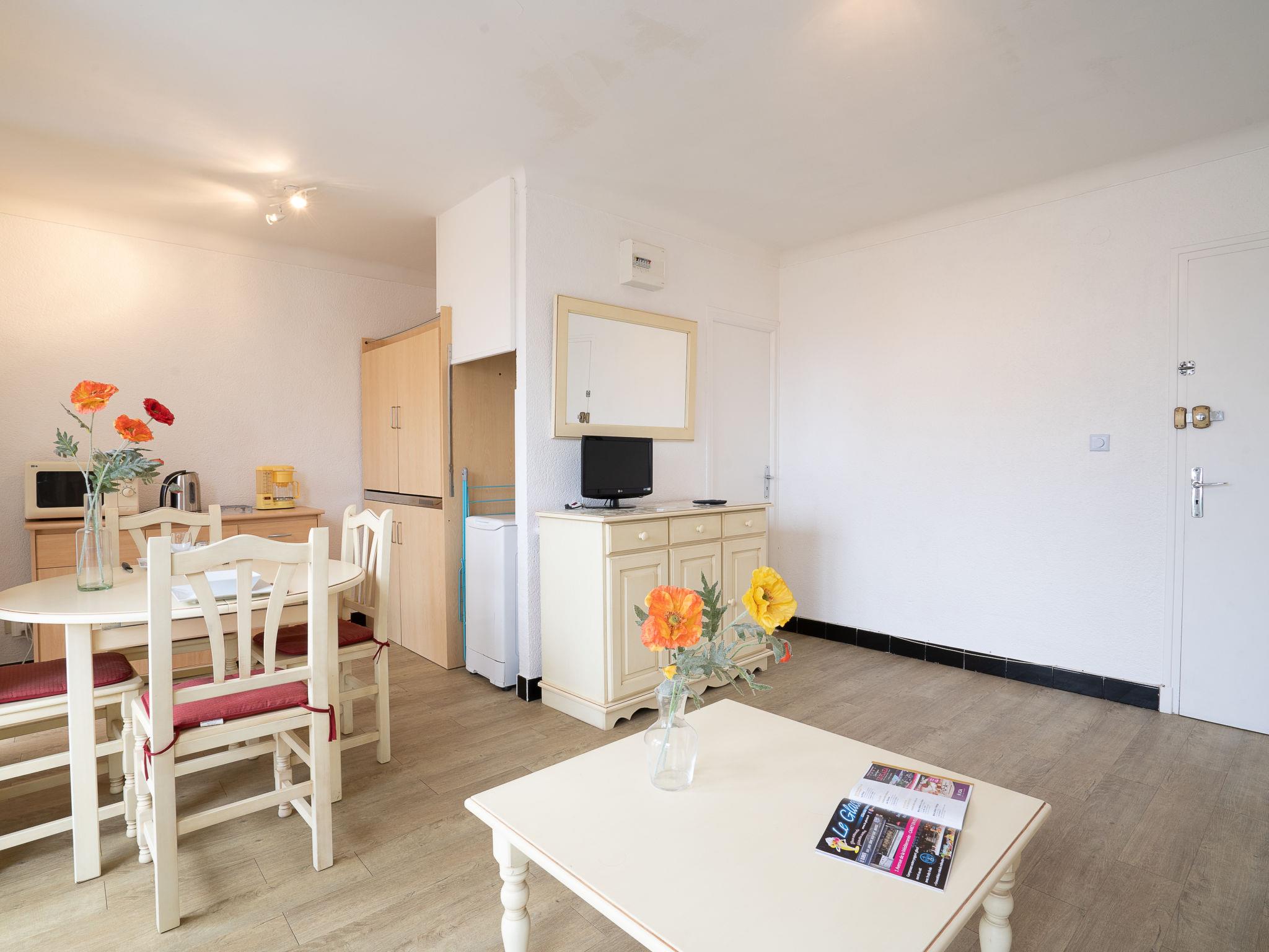 1-room studio 25 m2 on 1st floor. Beautiful furnishings: living/dining room with 1 french bed (1 x 140 cm, length 190 cm), TV (flat screen). Exit to the balcony. Kitchenette (2 hot plates, toaster, kettle, microwave, electric coffee machine). Shower/WC. Electric heating. Balcony 5 m2, east facing position. Balcony furniture. Facilities: washing machine, iron. Internet (WiFi, free). Parking. Please note: smoke alarm, no lift. FR6660.430.2