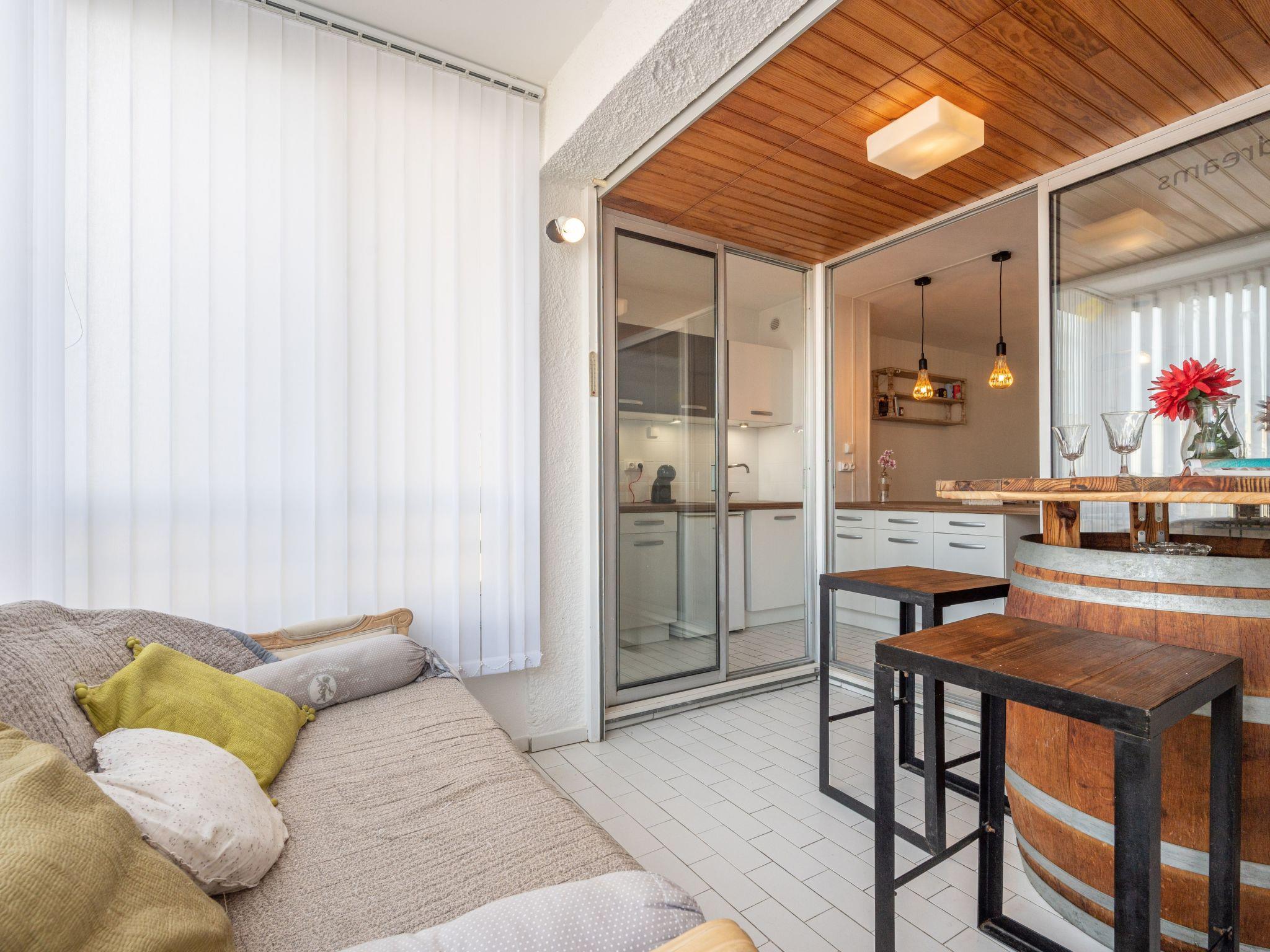 Canet Plage: Residence "Hacienda", 6 storeys. In the district of la place de la méditerranée, in the centre of Canet Plage, 100 m from the sea. In the complex: lift. Public car park at 20 m. Shop 50 m, shopping centre 8 km, restaurant, bar 50 m, bakery 200 m, café, bus stop 50 m, railway station "Perpignan" 12 km, sandy beach 20 m, park "Aqualand St Cyprien" 12 km, diving center 18 km, outdoor swimming pool 2 km, indoor swimming pool 2 km. Sports harbour 1.5 km, golf course (18 hole) 8 km, tennis 2 km, minigolf 1 km. Nearby attractions: Perpignan 12 km, Collioure 25 km, Banyuls 37 km, Espagne 35 km, Andorre 180 km, Barcelone 200 km. Well-known lakes can easily be reached: Villeneuve de la Raho 19 km, St Jean Pla de Corts 39 km, Gorges du Gouleyrous 42 km. Hiking paths: St Martin du Canigou 70 km, Massif du Canigou 77 km, Lac des Bouillouses 105 km.