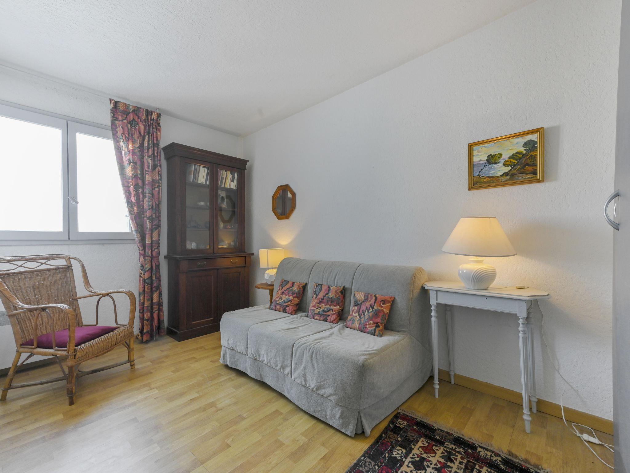 3-room apartment 53 m2 on 4th floor. Simple furnishings: living/dining room with TV (flat screen), air conditioning. Exit to the terrace. 1 room with 1 french bed (1 x 140 cm, length 190 cm), fan. 1 room with 1 double sofabed (1 x 140 cm, length 190 cm). Open kitchen (oven, dishwasher, 4 ceramic glass hob hotplates, toaster, microwave, electric coffee machine, Capsules for coffee machine (Nespresso)). Shower, sep. WC. Forced-air heating. Small terrace 10 m2. Terrace furniture. Beautiful view of the sea. Facilities: washing machine. Internet (WiFi, extra). Parking space n 435. Please note: smoke alarm.