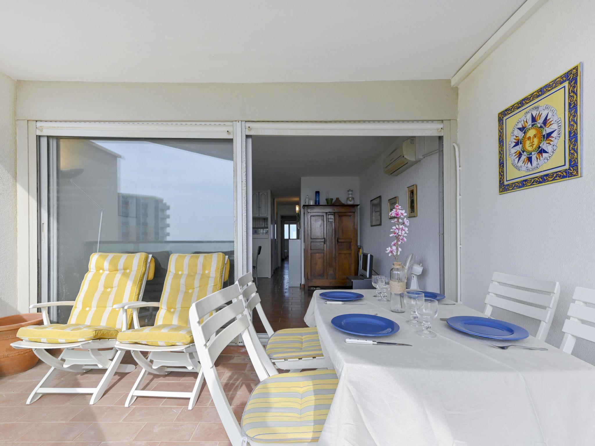 Canet Plage: Residence "Rose des Sables", 7 storeys, terraced. In the district of Canet Sud, 50 m from the sea, 50 m from the beach, road to cross. In the complex: lift. Shop, grocery, supermarket 50 m, shopping centre 8 km, restaurant, bar, bakery, bus stop 50 m, railway station "Perpignan" 12 km, sandy beach 50 m, diving center 18 km, outdoor swimming pool 3 km, indoor swimming pool 3 km, lake Etang de Canet 2 km. Sports harbour 5 km, golf course (18 hole) 8 km, sailing school 5 km, minigolf 1 km. Nearby attractions: Perpignan 12 km, Collioure 25 km, Banyuls 37 km, Espagne 35 km, Andorre 180 km, Barcelone 200 km. Well-known lakes can easily be reached: Lac de Villeneuve de la Raho 19 km, Lac de St Jean Pla de Corts 29 km, Gorges du Gouleyrous 42 km. Hiking paths: Abbaye de St Martin du Canigou 70 km, Pic du Canigou 77 km, Lac des Bouillouses 105 km. Please note: Additional accommodations can be booked.