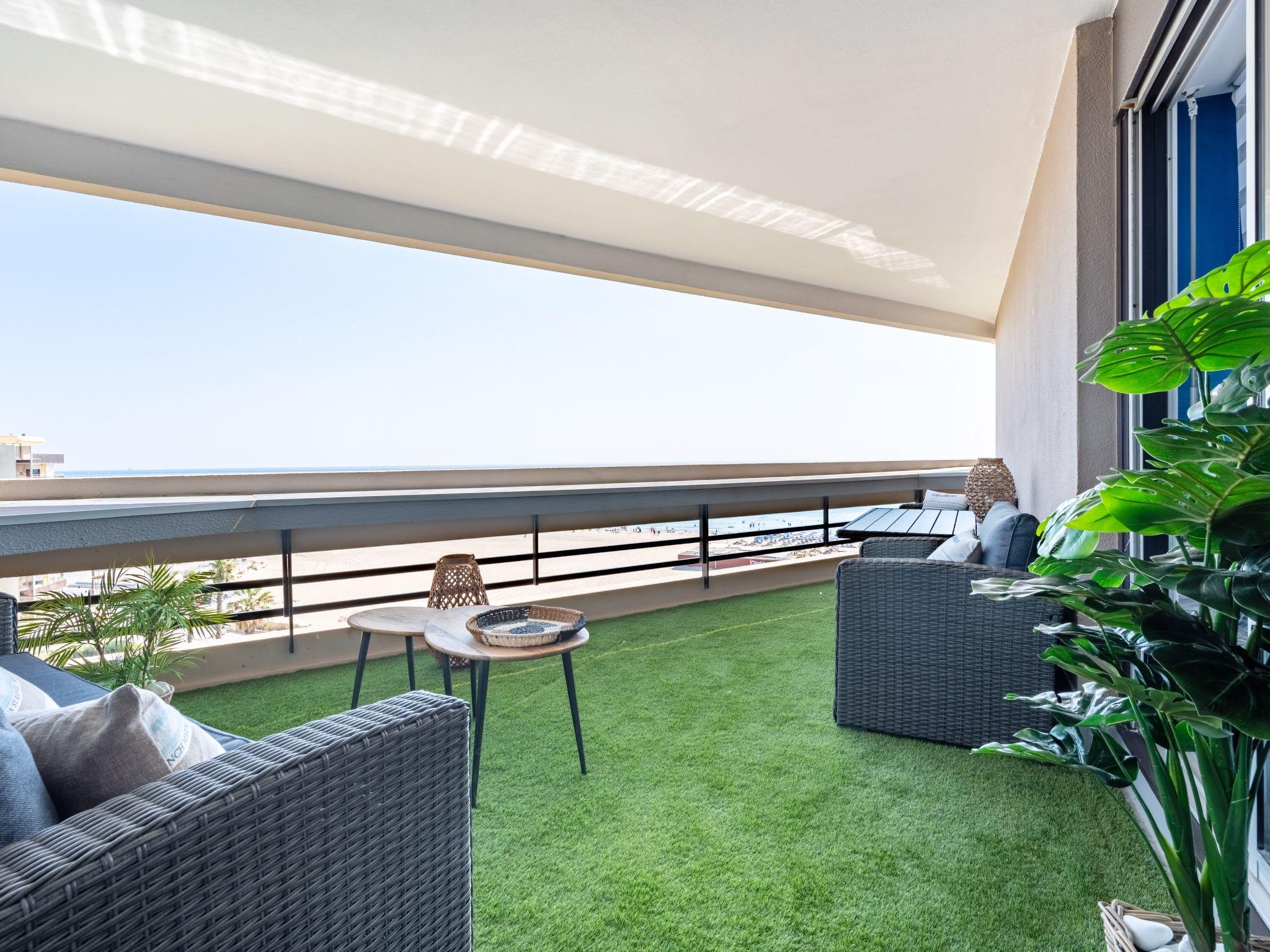 Canet Plage: Residence "Les Terrasses du Levant", 7 storeys. In the district of Canet Sud, 50 m from the sea, 50 m from the beach. In the complex: lift. Shop 200 m, shopping centre 8 km, restaurant, café 200 m, bus stop 150 m, railway station "Perpignan" 12 km, sandy beach 50 m, park "Aqualand St Cyprien" 12 km, diving center 18 km, outdoor swimming pool 3 km, indoor swimming pool 3 km, lake Etang de Canet 1 km. Sports harbour 5 km, golf course (18 hole) 8 km, tennis 3 km, minigolf 1 km. Nearby attractions: Perpignan 12 km, Collioure 25 km, Banyuls 37 km, Espagne 35 km, Andorre 180 km, Barcelone 200 km. Well-known lakes can easily be reached: Lac de Villeneuve de la Raho 19 km, Lac de St Jean Pla de Corts 39 km, Gorges de Gouleyrous 42 km. Hiking paths: Abbaye de St Martin du Canigou 70 km, Pic du Canigou 77 km, Lac des Bouillouses 105 km. Please note: Additional accommodations can be booked.