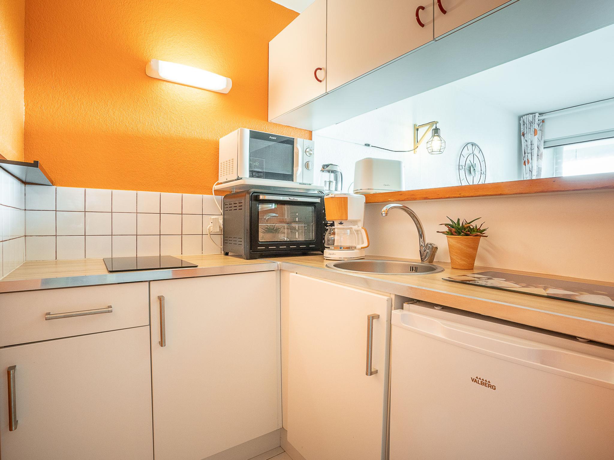 Canet Plage: Residence "Les Terrasses du Levant", 7 storeys. In the district of Canet Sud, 50 m from the sea, 50 m from the beach. In the complex: lift. Shop 200 m, shopping centre 8 km, restaurant, café 200 m, bus stop 150 m, railway station "Perpignan" 12 km, sandy beach 50 m, park "Aqualand St Cyprien" 12 km, diving center 18 km, outdoor swimming pool 3 km, indoor swimming pool 3 km, lake Etang de Canet 1 km. Sports harbour 5 km, golf course (18 hole) 8 km, tennis 3 km, minigolf 1 km. Nearby attractions: Perpignan 12 km, Collioure 25 km, Banyuls 37 km, Espagne 35 km, Andorre 180 km, Barcelone 200 km. Well-known lakes can easily be reached: Lac de Villeneuve de la Raho 19 km, Lac de St Jean Pla de Corts 39 km, Gorges de Gouleyrous 42 km. Hiking paths: Abbaye de St Martin du Canigou 70 km, Pic du Canigou 77 km, Lac des Bouillouses 105 km. Please note: Additional accommodations can be booked.