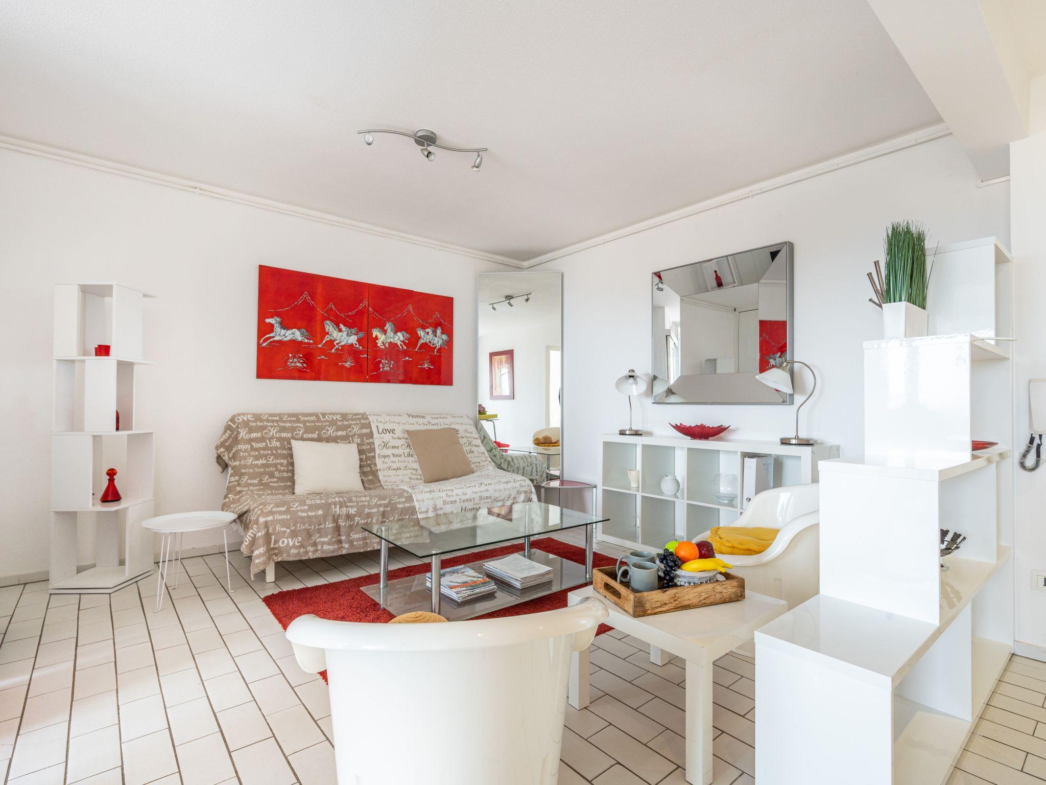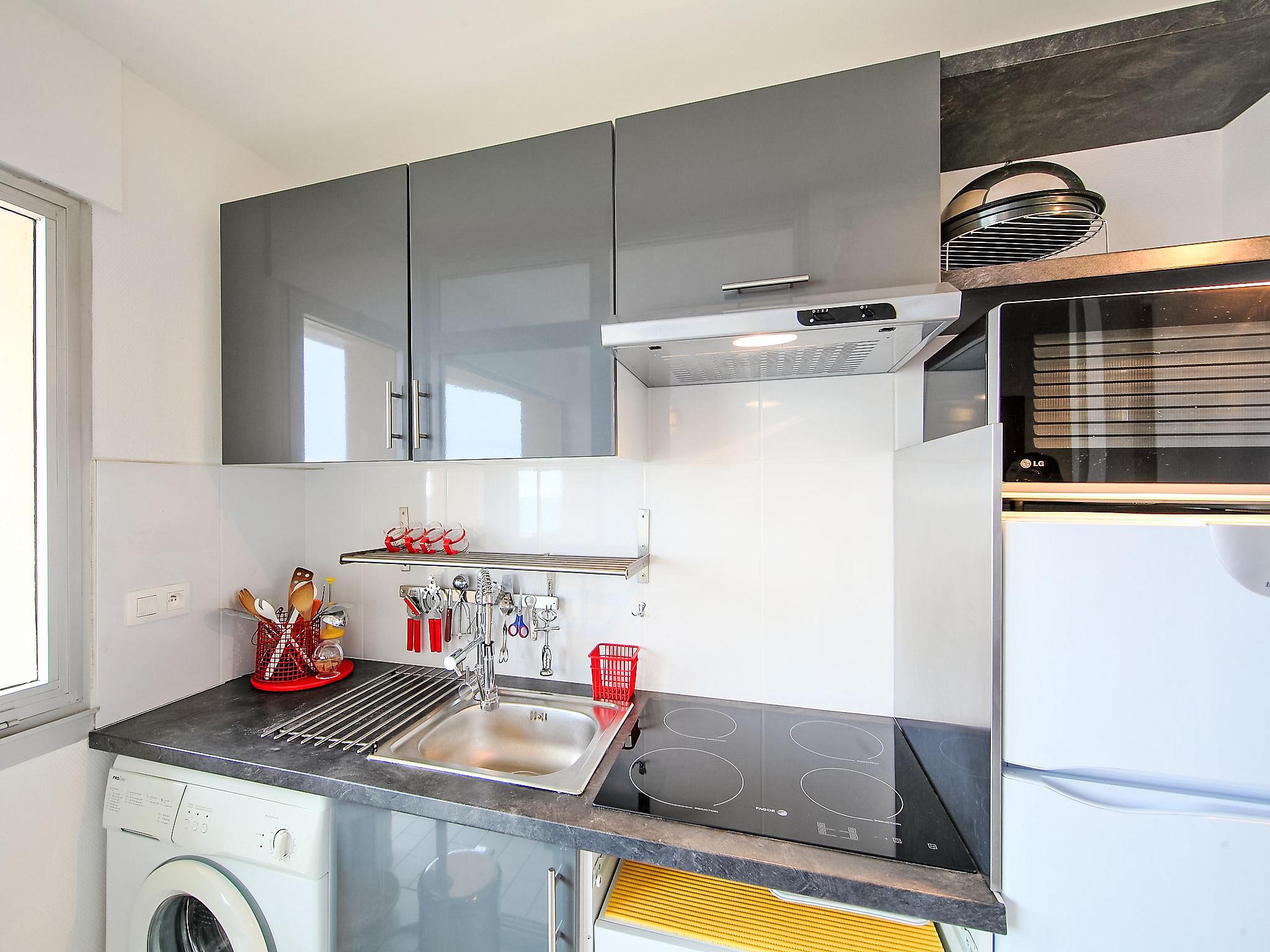2-room apartment 40 m2 on 7th floor. Living/dining room with 1 double sofabed (1 x 140 cm, length 190 cm), TV (flat screen). Exit to the balcony, to the loggia. 1 room with 1 french bed (140 cm, length 190 cm). Exit to the terrace. Kitchenette (dishwasher, 4 induction hot plates, kettle, microwave, freezer, electric coffee machine, combination microwave). Bathroom, sep. WC. Balcony 7 m2. Terrace furniture, covered balcony. View of the sea. Facilities: washing machine, iron. Internet (WiFi, extra). Parking. Please note: smoke alarm. Parking available July and August. FR49283