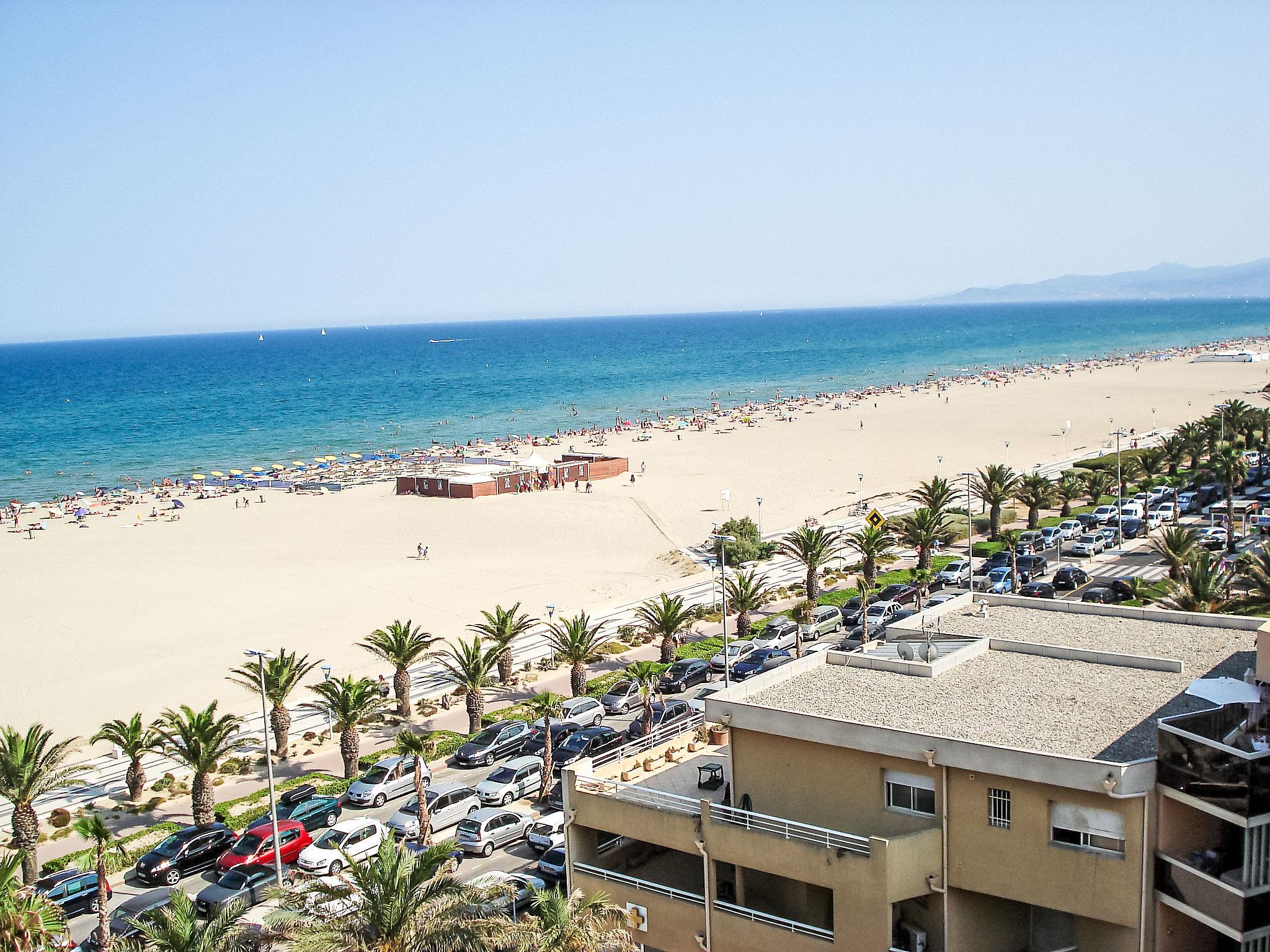 Canet Plage: Residence "Soleil Bleu". In the district of Canet Sud, 50 m from the sea, 10 m from the beach, road to cross. In the complex: lift. Public car park at 50 m, public parking on the road. Shop 50 m, shopping centre 8 km, restaurant 20 m, bus stop 50 m, railway station "Perpignan" 12 km, sandy beach 10 m, diving center 18 km, outdoor swimming pool 2 km, thermal baths 700 m, lake Etang de Canet 3 km. Sports harbour 5 km, golf course (18 hole) 12 km, tennis 4 km, minigolf 50 m. Nearby attractions: Perpignan 12 km, Collioure 25 km, Banyuls 37 km, Espagne 35 km, Andorre 180 km, Barcelone 200 km. Well-known lakes can easily be reached: Lac de Villeneuve de la Raho 19 km, Lac de St Jean Pla de Corts 39 km, Gorges de Gouleyrous 42 km. Hiking paths: Abbaye de St Martin du Canigou 70 km, Pic du Canigou 77 km, Lac des Bouillouses 105 km.
