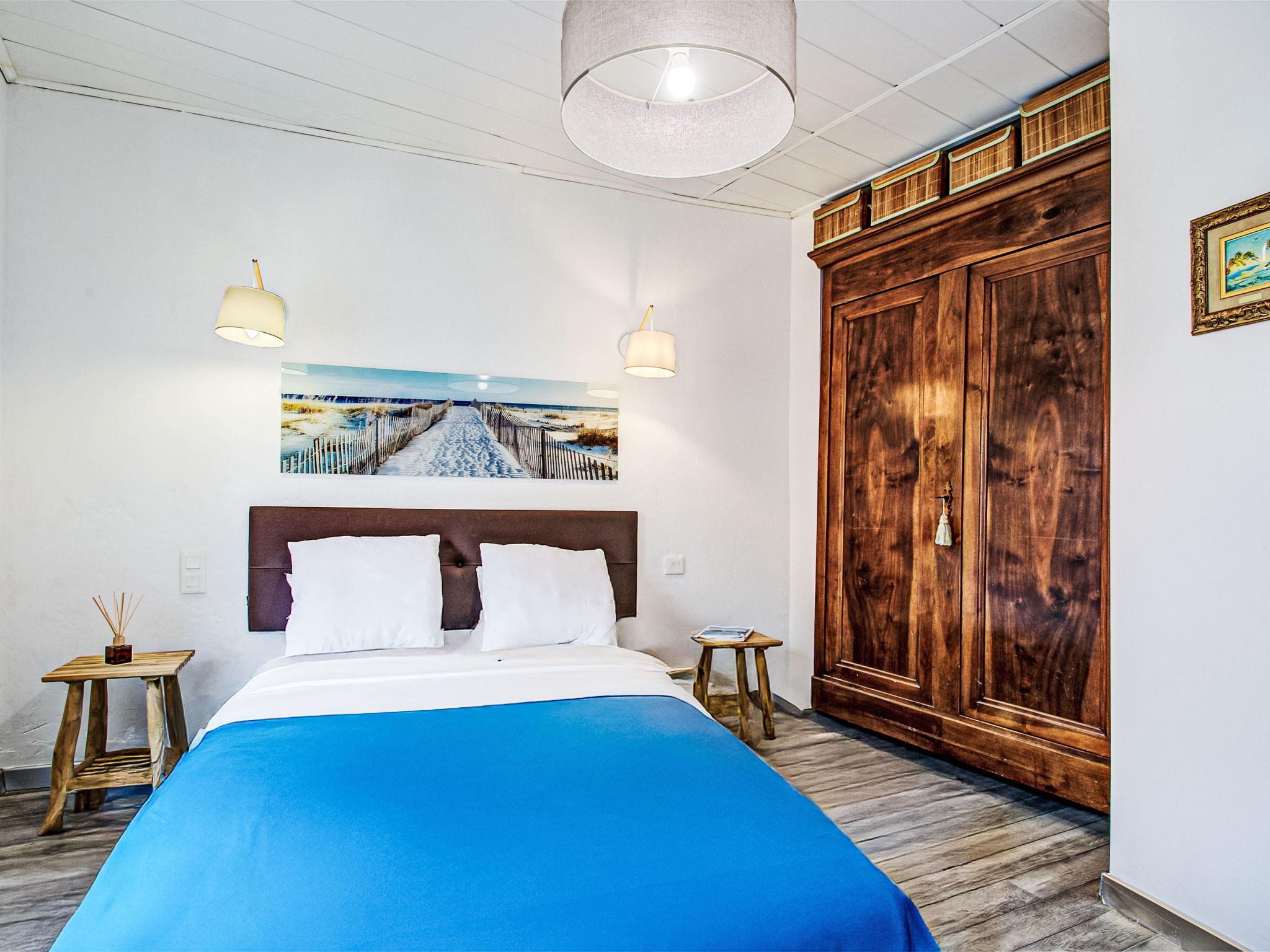 5-room house 70 m2 on 2 levels. Partly renovated, comfortable and beautiful furnishings: living/dining room with TV (flat screen), air conditioning. Exit to the terrace. Kitchenette (oven, dishwasher, 4 induction hot plates, toaster, kettle, microwave, electric coffee machine, Capsules for coffee machine (Nespresso) extra). Upper floor: 1 room with 1 french bed (1 x 140 cm, length 190 cm), air conditioning. 1 room with 1 french bed (1 x 160 cm, length 200 cm), air conditioning. 1 room, without window with shower and air conditioning. Exit to the terrace. Shower, sep. WC. 2nd upper floor: gallery with 1 french bed (1 x 140 cm, length 190 cm), air conditioning. Large terrace 60 m2, terrace 20 m2. Terrace furniture, electric barbecue, deck chairs (2). View of the resort. Facilities: washing machine, iron, hair dryer. Internet (WiFi, free). Parking (fenced). Please note: non-smoking house. Maximum 1 pet/ dog allowed. Smoke alarm. One of the bedrooms is accessible via the bathroom, with stairs leading up to the air-conditioned bedroom. Offer by a private individual according to Art. 155, IV of CGI.