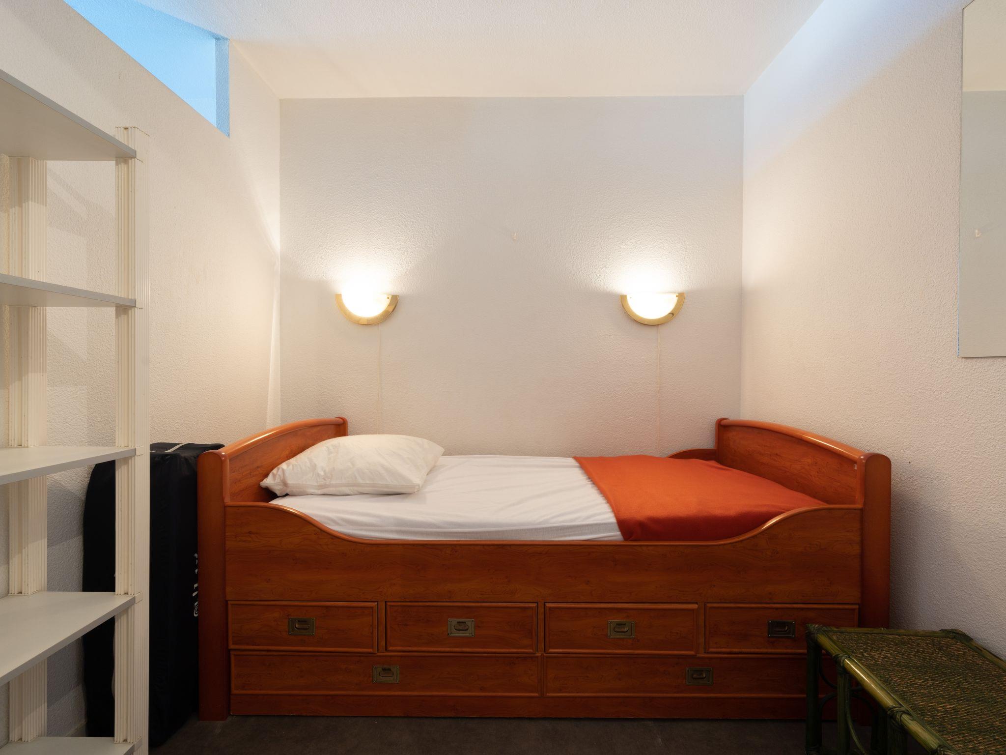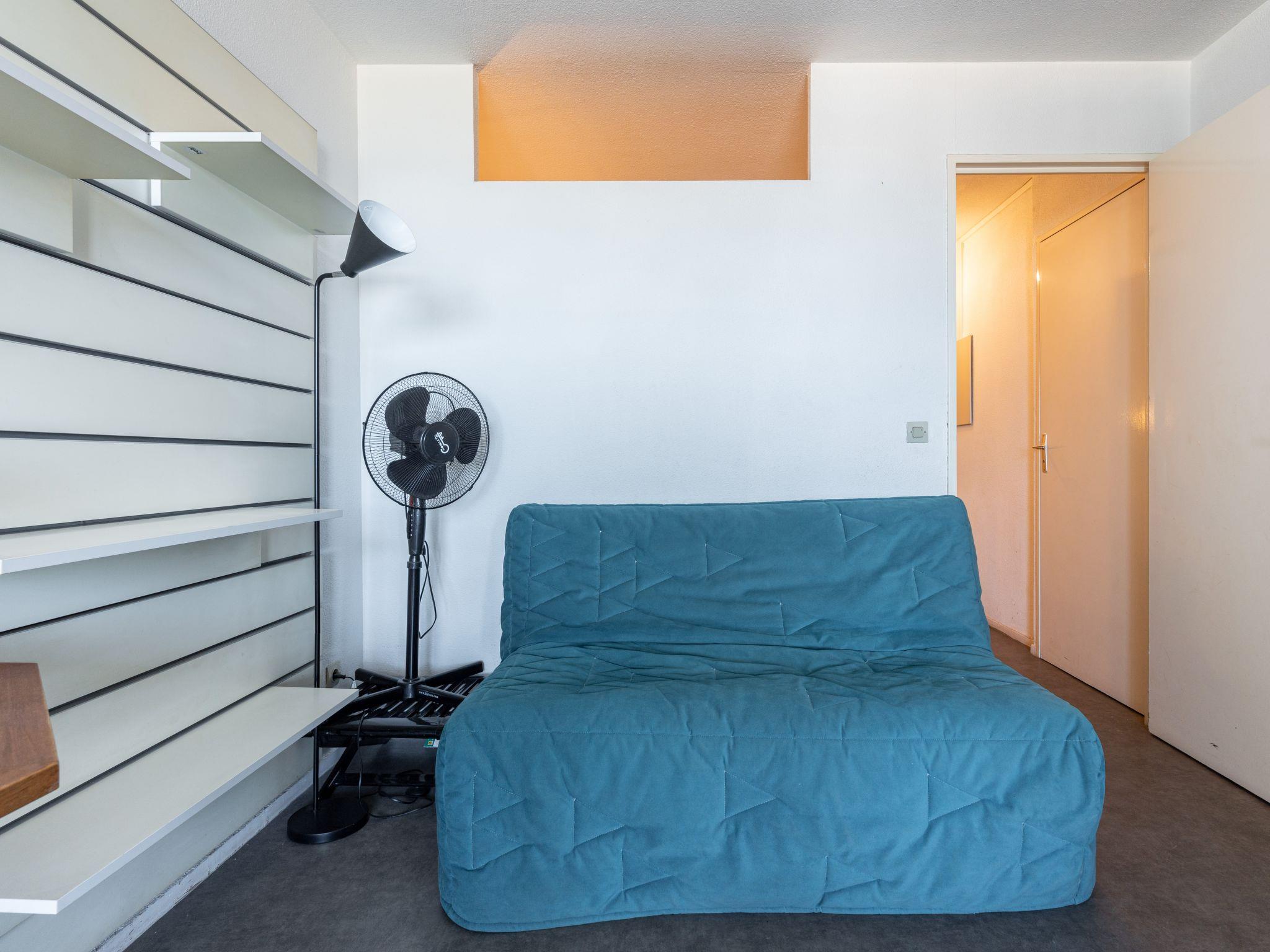 2-room apartment 41 m2 on 4th floor. Practical furnishings: living/dining room with 1 double sofabed (1 x 140 cm, length 190 cm), TV (flat screen), fan. Exit to the balcony. 1 small room with 1 french bed (1 x 140 cm, length 190 cm). Sleeping alcove with 1 bed (90 cm, length 190 cm). Kitchenette (mini-oven, oven, 2 ceramic glass hob hotplates, toaster, kettle, microwave, electric coffee machine). Bathroom, sep. WC. Electric heating. Balcony 7 m2, east facing position. Terrace furniture. View of the sea. Facilities: Internet (WiFi). Parking. Please note: non-smokers only. 1 small pet/ dog allowed. Smoke alarm.