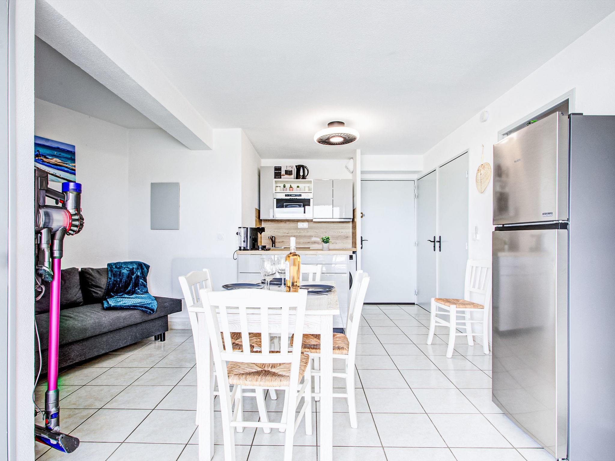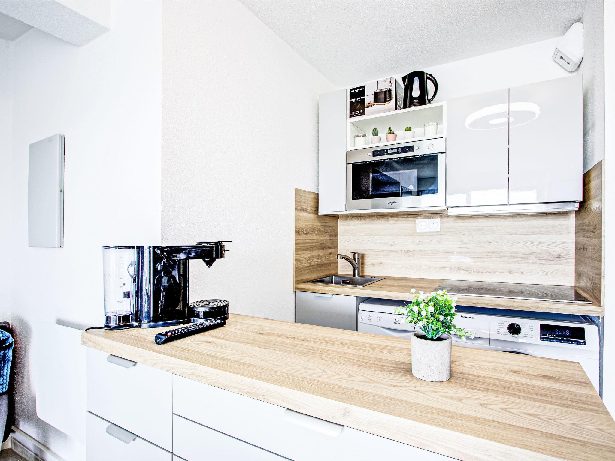 3-room apartment 35 m2 on 1st floor. Fully renovated in 2025, comfortable and beautiful furnishings: living/dining room with TV (flat screen), fan. Exit to the terrace. 1 room with 1 french bed (1 x 140 cm, length 190 cm). 1 room with 2 beds (90 cm, length 190 cm). Kitchenette (dishwasher, 4 ceramic glass hob hotplates, toaster, kettle, microwave, electric coffee machine). Shower, sep. WC. Electric heating. Terrace 10 m2, north facing position. Terrace furniture. Facilities: washing machine. Internet (WiFi, free). Please note: apartment carpark side. Non-smokers only. Smoke alarm. Offer by a private individual according to Art. 155, IV of CGI.
