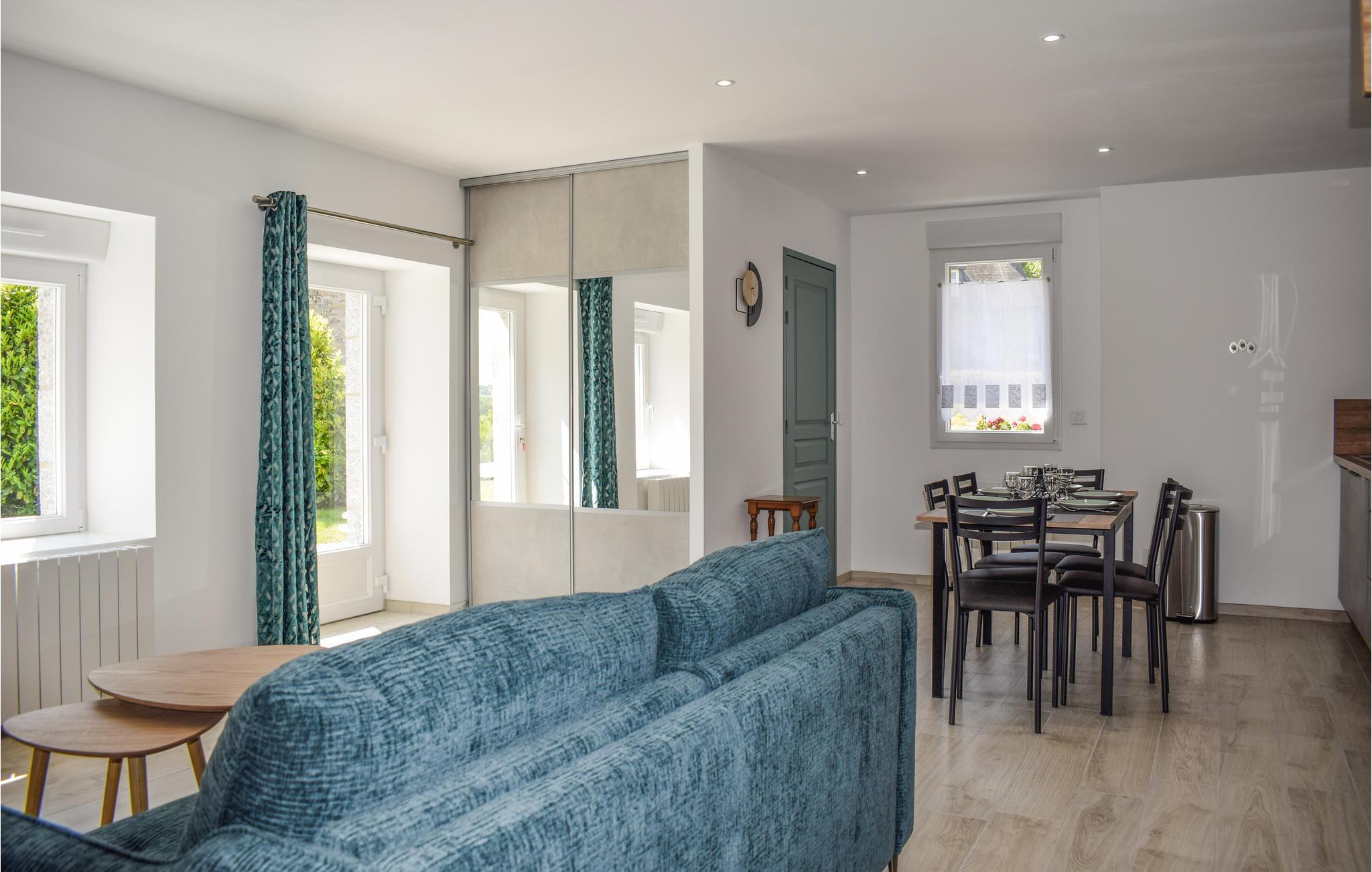 Alle medlemmer af familien vil føle sig hjemme fra dag ét i dette indbydende hus, som byder velkommen på en attraktiv beliggenhed midt i et malerisk landskab og i centrum af Bretagne. Slap af i de hyggelige lokaler, som de smukke trægulve og den hjemlige indretning med rolige farver giver et venligt udtryk. Stuen bliver hurtigt centrum for fælles aktiviteter. Efter en begivenhedsrig dag kan I finde jer tilpas her med en film, slappe af i sofaen og chatte komfortabelt i lang tid.