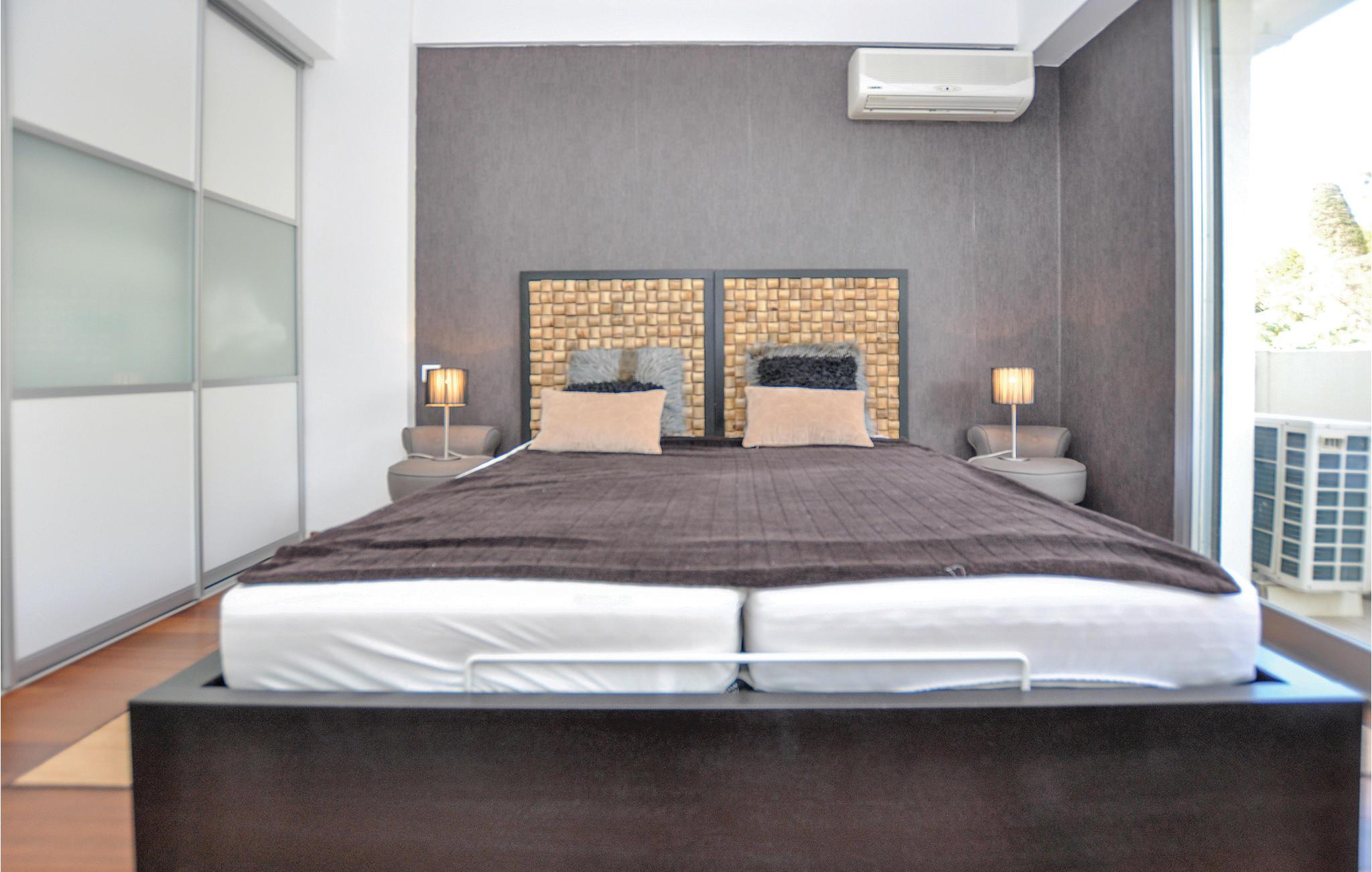 Herlig ferielejlighed med vidunderligt havpanorama helt til Esterel-massivet. I den dejligt anlagte have ligger den fælles store swimmingpool. Igennem det særskilte køkken kommer I ud på en lille altan hvor morgenkaffen kan nydes. I har poolen til rådighed hele året, og foran bygningen er jeres parkeringsplads. Her bor I kun 20 minutters gang fra de storslåede strande og den gamle by Le Suquet, i rolig beliggenhed i Cannes højder. Den ideelle feriebolig for at nyde godt af byen og de mange højtider og festivaller. Mandelieubugten strækker sig helt til Théoule-sur-Mer hvor de skønne sandstrande indbyder til afslappede badedage.