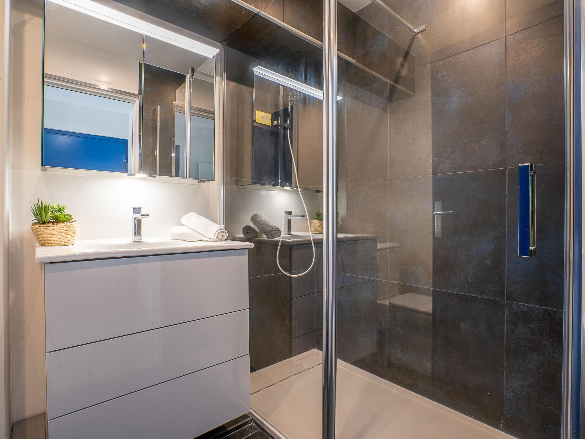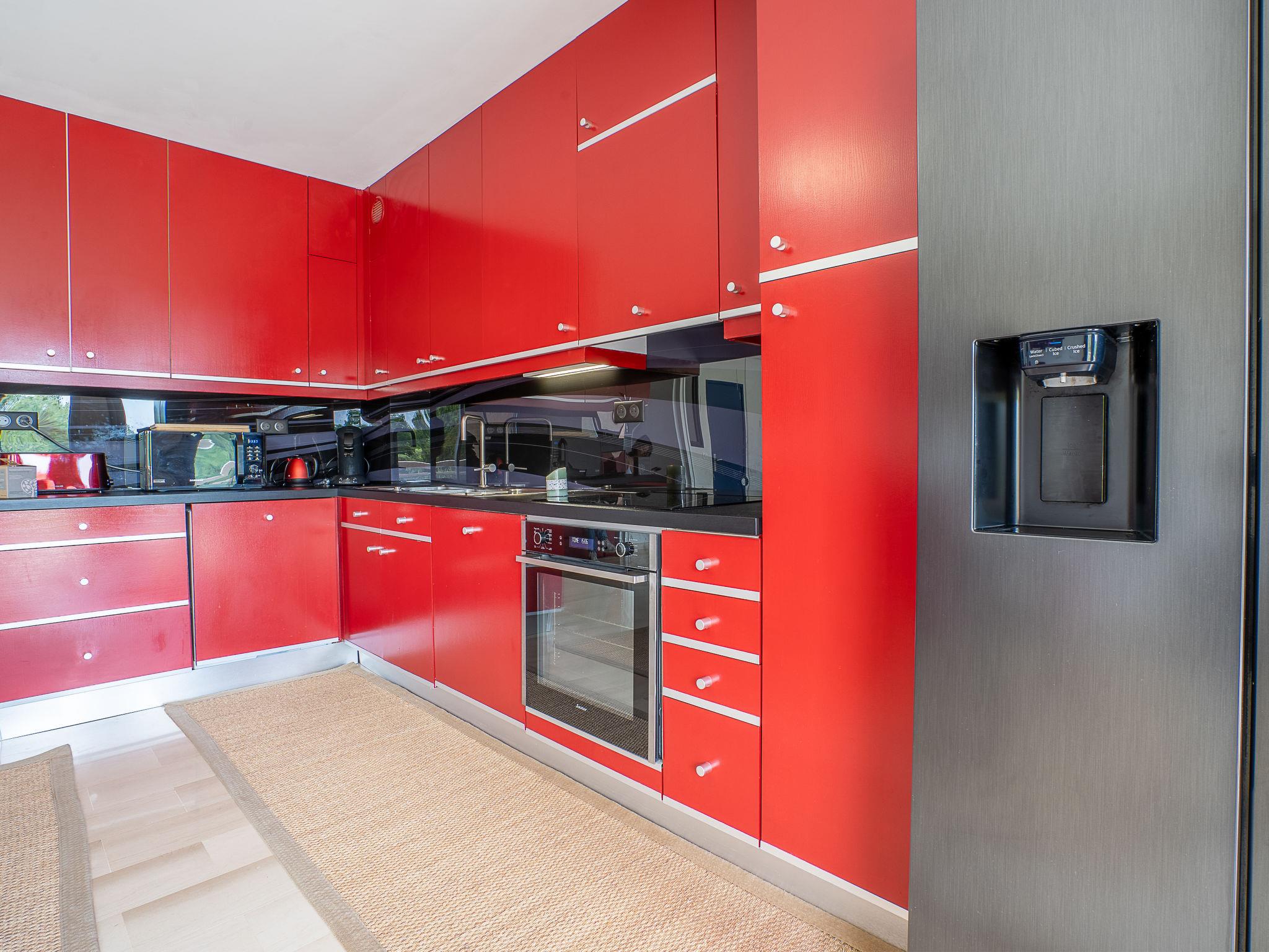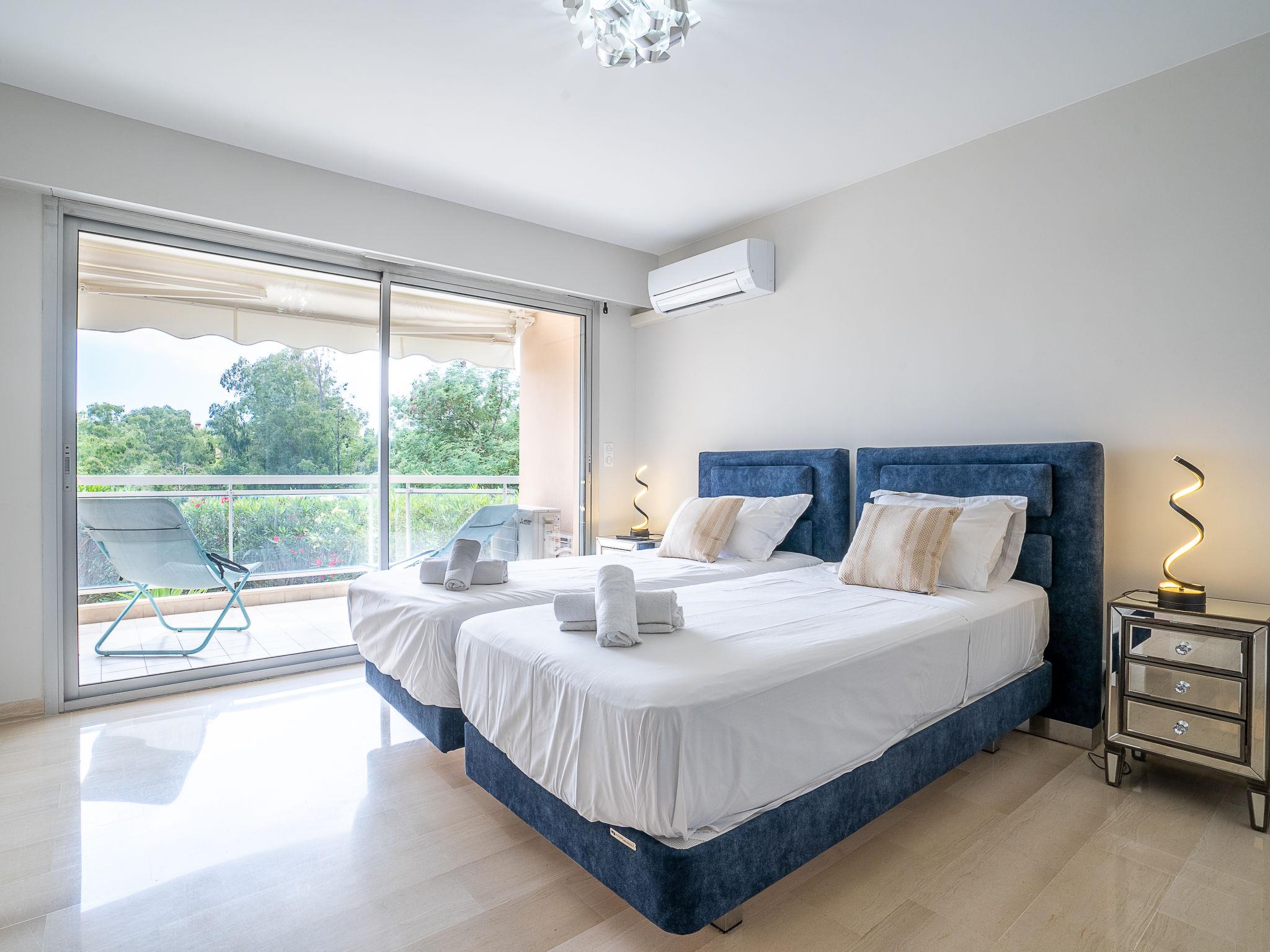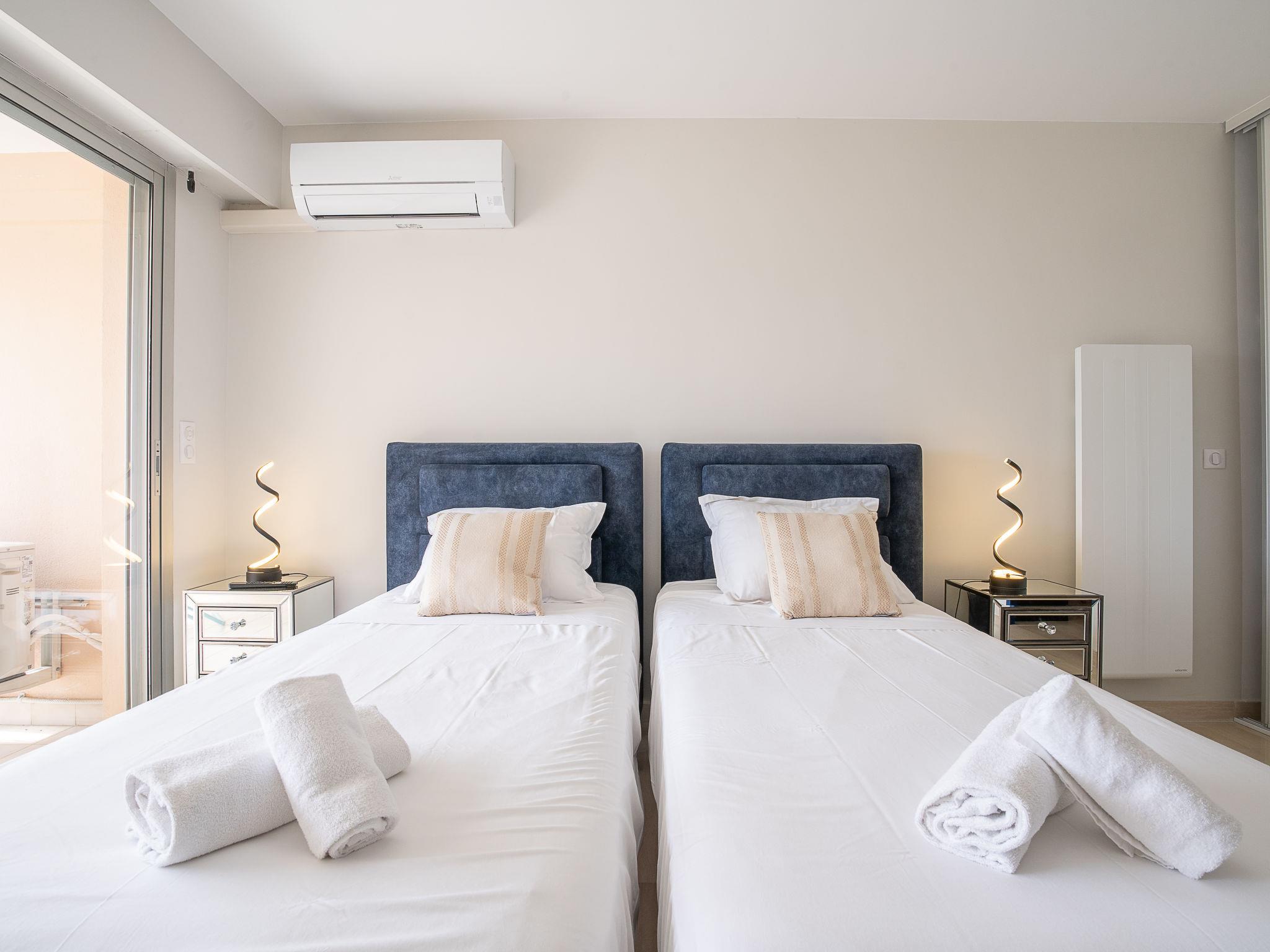 3-room apartment 75 m2, on the ground floor. Fully renovated in 2021, comfortable and beautiful furnishings: living/dining room with TV (flat screen). Exit to the terrace. 1 room with 1 double bed (2 x 90 cm, length 200 cm), shower/WC, TV and air conditioning. Exit to the terrace. 1 room with 1 french bed (1 x 160 cm, length 200 cm), air conditioning. Exit to the terrace. Open kitchen (oven, dishwasher, 3 induction hot plates, toaster, kettle, microwave, freezer, electric coffee machine, Capsules for coffee machine (Senseo) extra). Exit to the terrace. Bathroom, sep. WC. Electric heating. Terrace 8 m2, south facing position terrace 17 m2, south facing position. Terrace furniture. Very beautiful view of the sea. Facilities: washing machine. Internet (WiFi, free). Parking space n 96 (roofed). Please note: not suitable for small children. Non-smoking house. Smoke alarm. 06029022720AK