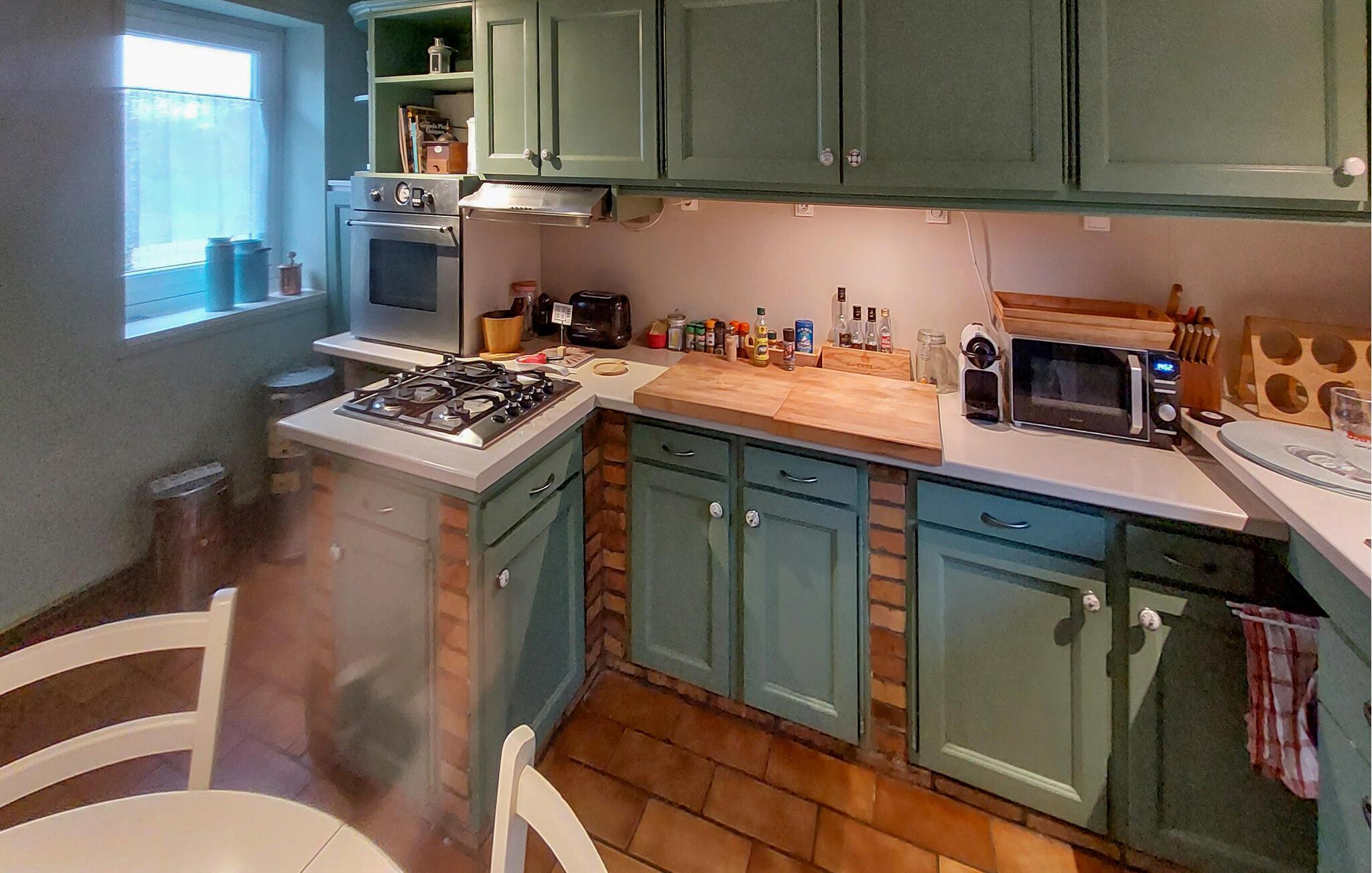 Denne gård fra 1600-tallet er blevet nænsomt restaureret og vil glæde jer med sin vellykkede blanding af rustikke elementer og moderne komfort. Tilbered lækre måltider i det indbydende landhuskøkken og nyd dem ved det hyggelige spisebord. Slap af i den stilfulde stue foran den knitrende brændeovn eller nyd en spændende bog i den lyse veranda med udsigt til haven.
