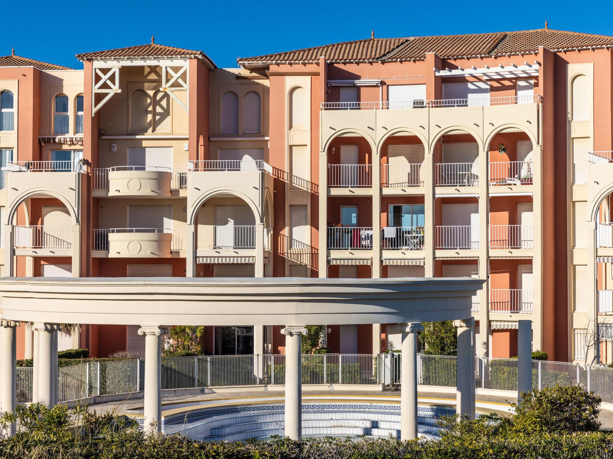 Very beautiful residence "Les Colonnes de Circé", 4 storeys. In the district of Rochelongue, in the resort 3 km from the centre of Port, 100 m from the sea, 100 m from the beach, direct access to the beach. For shared use: garden with lawn and plants, swimming pool (16 x 8 m, depth 90 - 170 cm, seasonal availability: 01.May. - 30.Sep.). In the complex: lift. Shop, grocery, restaurant, bar 80 m, bakery 100 m, pedestrian zone 80 m, bicycle rental 150 m, bus stop "Mail de Rochelongue" 350 m, railway station 6 km, public bathing area 100 m. Sports harbour 3 km, golf course (27 hole) 1.2 km, tennis 3 km, minigolf 2 km, riding stable 2 km. Nearby attractions: Aqualand 1.7 km, Ile des Loisirs 1.9 km, Captain Jako 4 km, Location Jet Ski 2 km, Location bateaux 3 km.