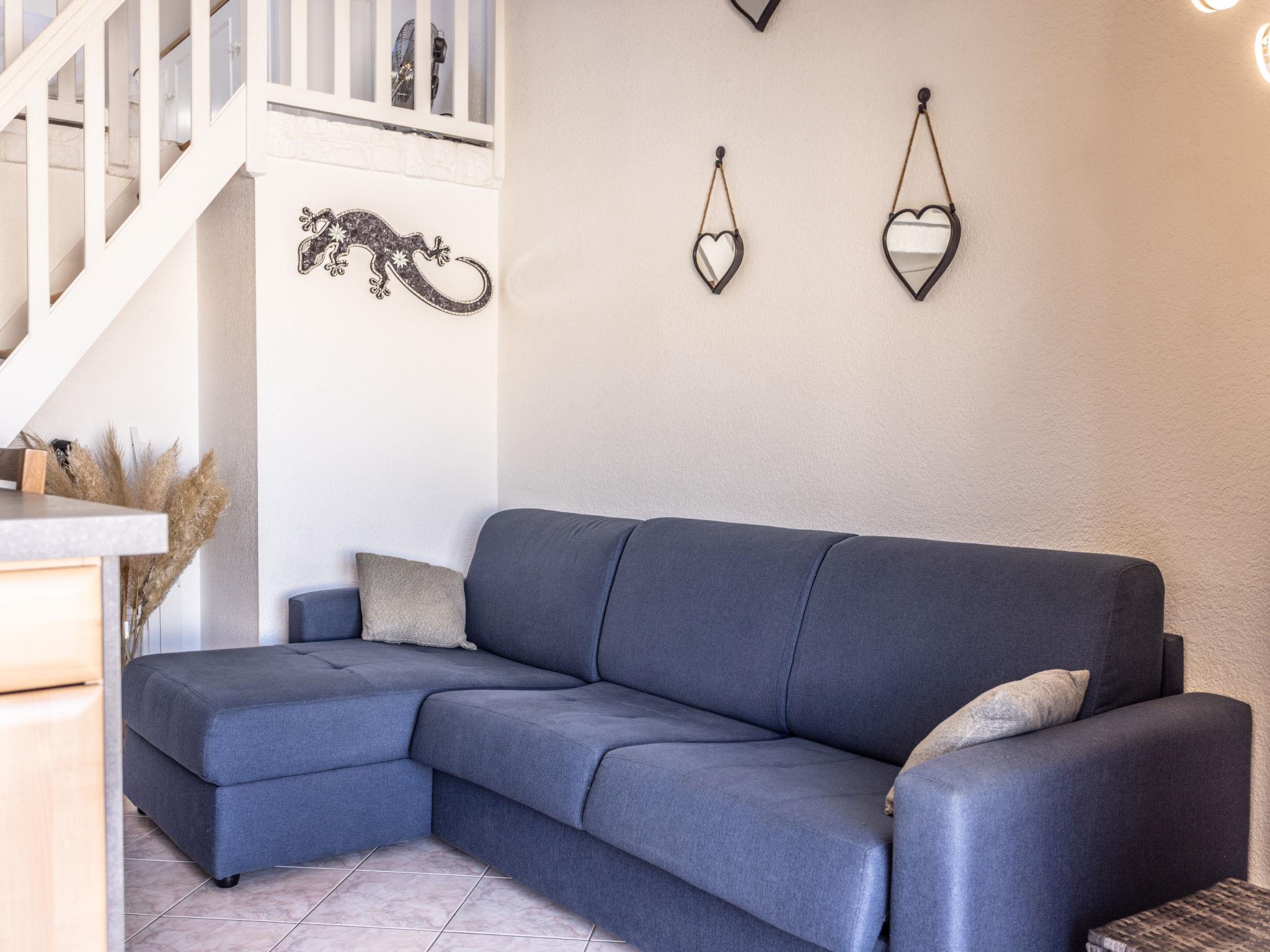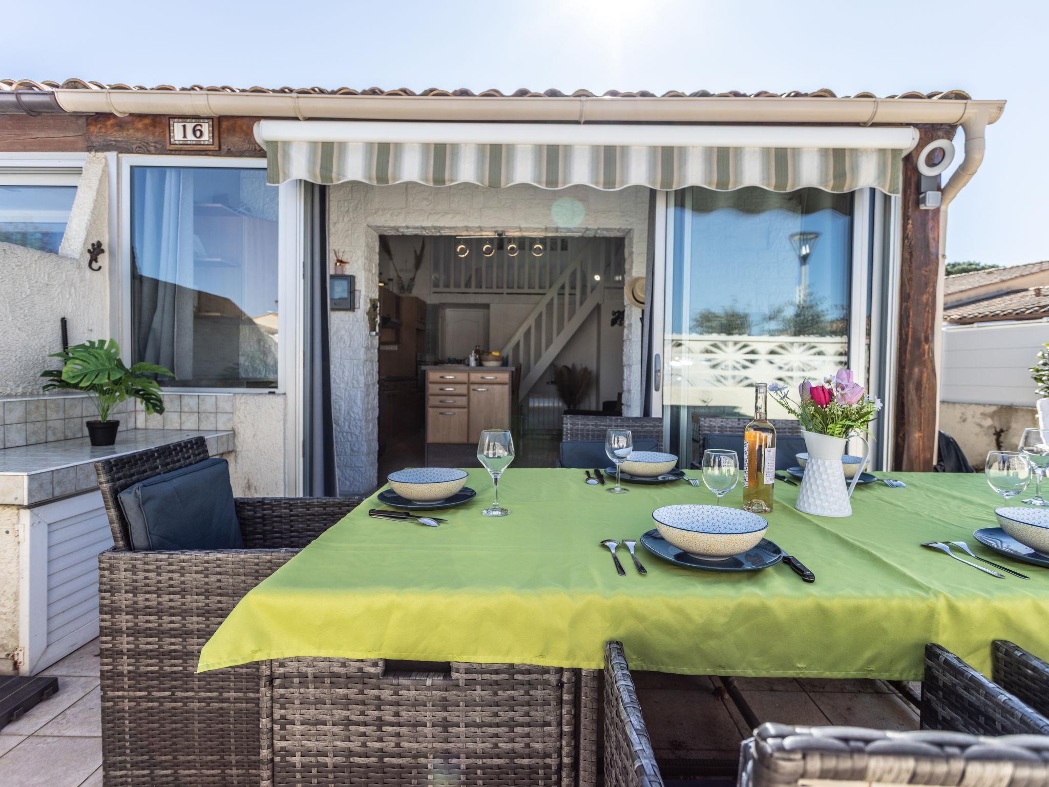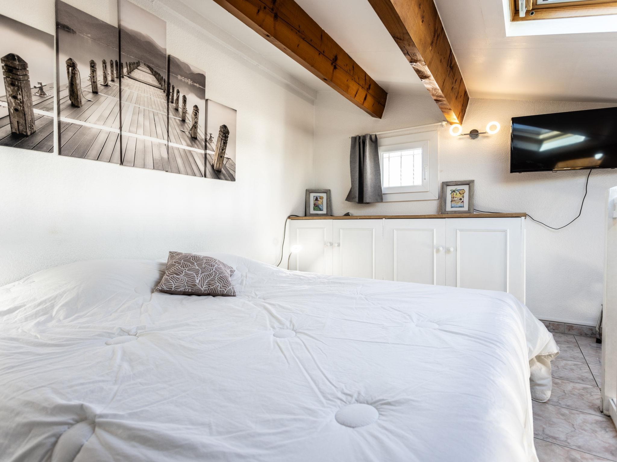 2-room terraced house 40 m2 on 2 levels. Comfortable and beautiful furnishings: living/dining room with TV (flat screen), air conditioning and forced-air heating. Exit to the terrace. 1 room with 1 french bed (160 cm, length 200 cm). Kitchenette (2 hot plates, toaster, kettle, freezer, electric coffee machine, Capsules for coffee machine (Senseo) extra, combination microwave). Shower, sep. WC. Upper floor: gallery with sloping ceilings, ceiling height 170 - 240 cm with 1 french bed (180 cm, length 190 cm). Large terrace 37 m2, west facing position and, east facing position. Facilities: washing machine. Internet (WiFi, extra). Parking space n 16. Please note: non-smoking house. Smoke alarm. Offer by a private individual according to Art. 155, IV of CGI.