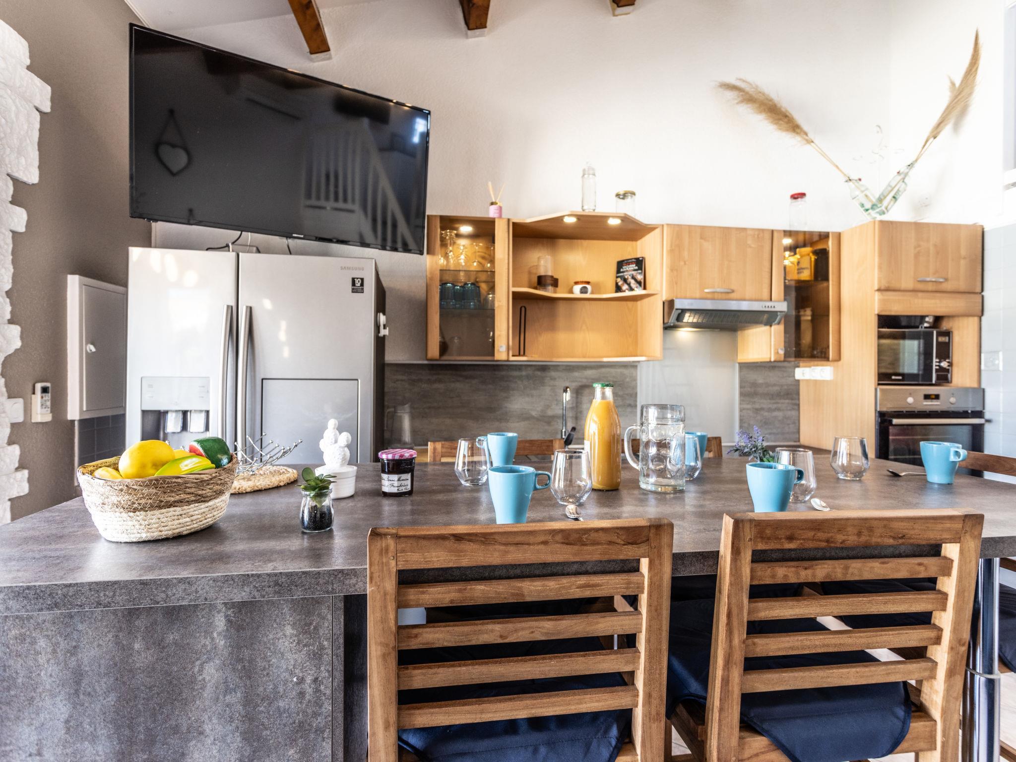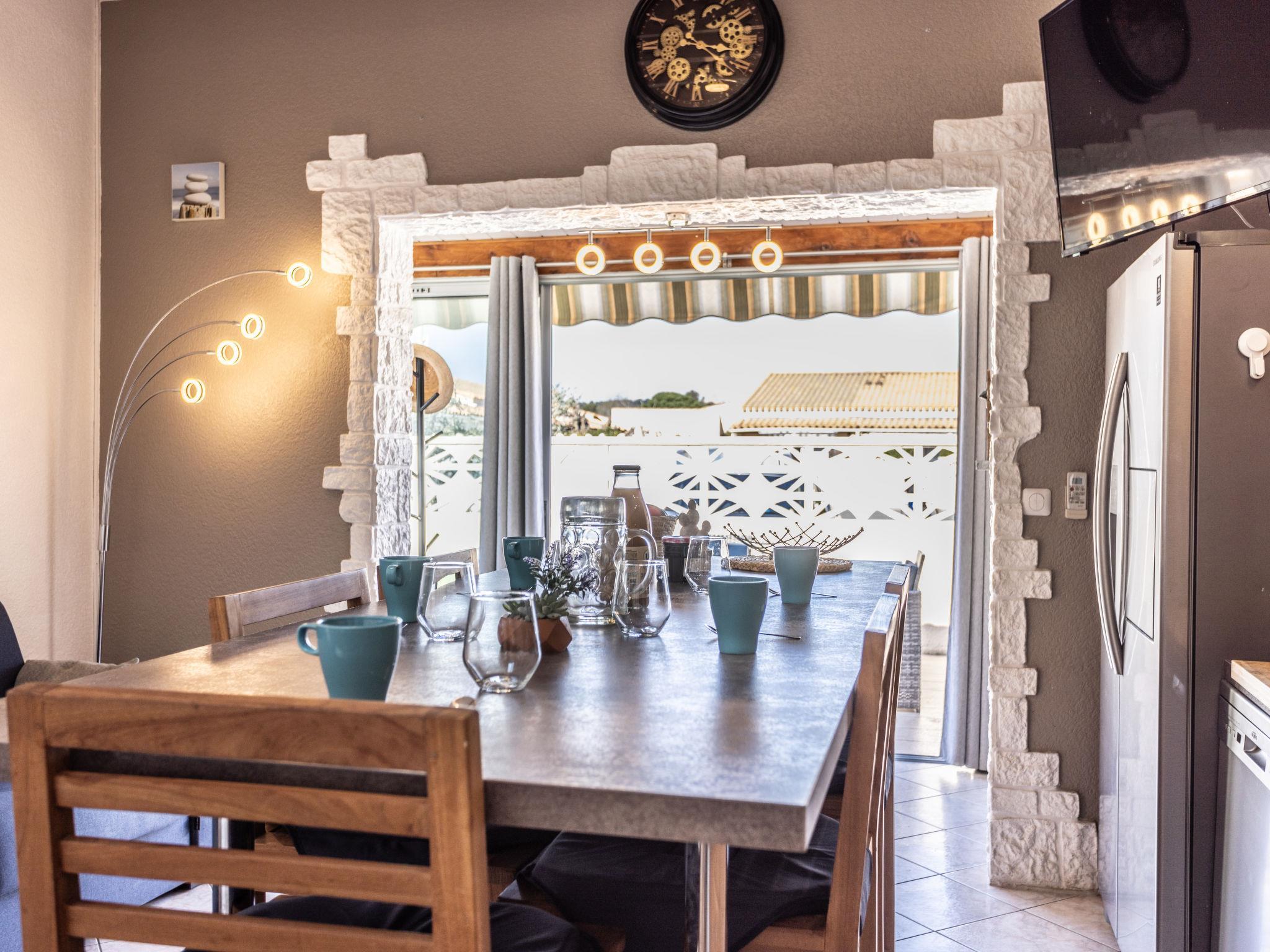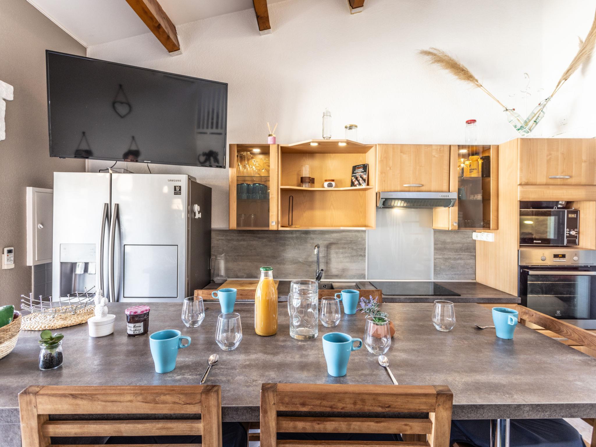 2-room terraced house 40 m2 on 2 levels. Comfortable and beautiful furnishings: living/dining room with TV (flat screen), air conditioning and forced-air heating. Exit to the terrace. 1 room with 1 french bed (160 cm, length 200 cm). Kitchenette (2 hot plates, toaster, kettle, freezer, electric coffee machine, Capsules for coffee machine (Senseo) extra, combination microwave). Shower, sep. WC. Upper floor: gallery with sloping ceilings, ceiling height 170 - 240 cm with 1 french bed (180 cm, length 190 cm). Large terrace 37 m2, west facing position and, east facing position. Facilities: washing machine. Internet (WiFi, extra). Parking space n 16. Please note: non-smoking house. Smoke alarm. Offer by a private individual according to Art. 155, IV of CGI.