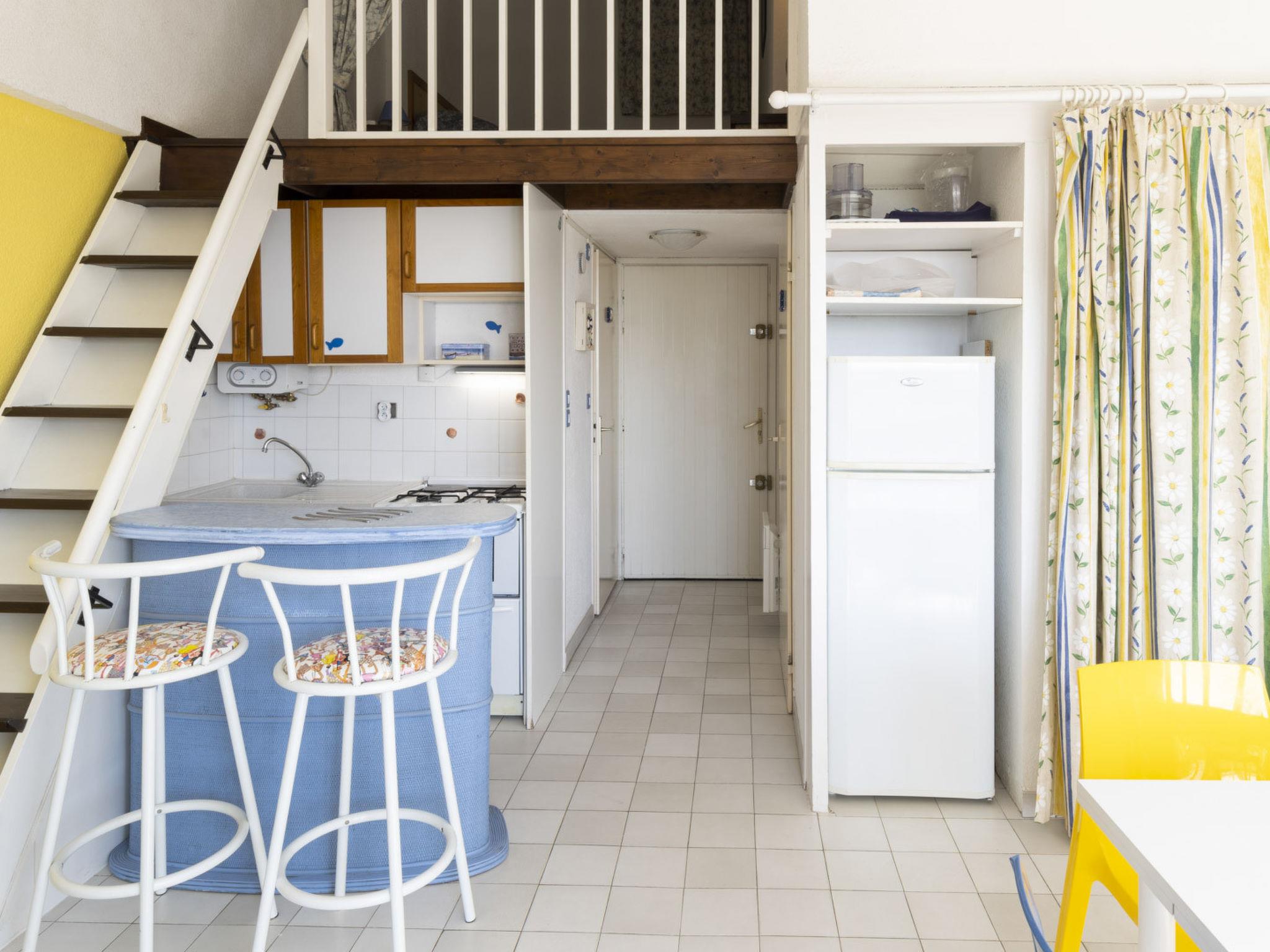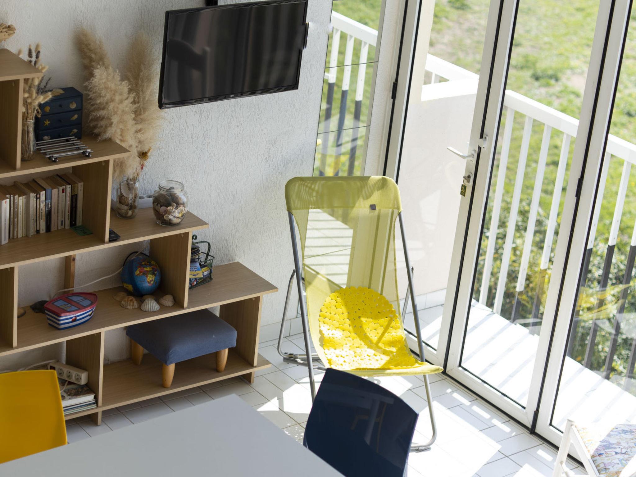 "Aquaplage B", 1-room studio 35 m2 on 1st floor. Object suitable for 5 adults. Living room with 1 sofabed and 1 x 2 bunk beds, 1 double bed, 1 pull-out bed and TV. Kitchen (dishwasher, 2 induction hot plates, toaster, microwave, freezer, electric coffee machine). Shower/WC. Balcony. View of the sea. Facilities: washing machine. Parking (1 car). Please note: non-smokers only. Smoke alarm. Offer by a commercial proprietor according to Art. 155, IV, CGI