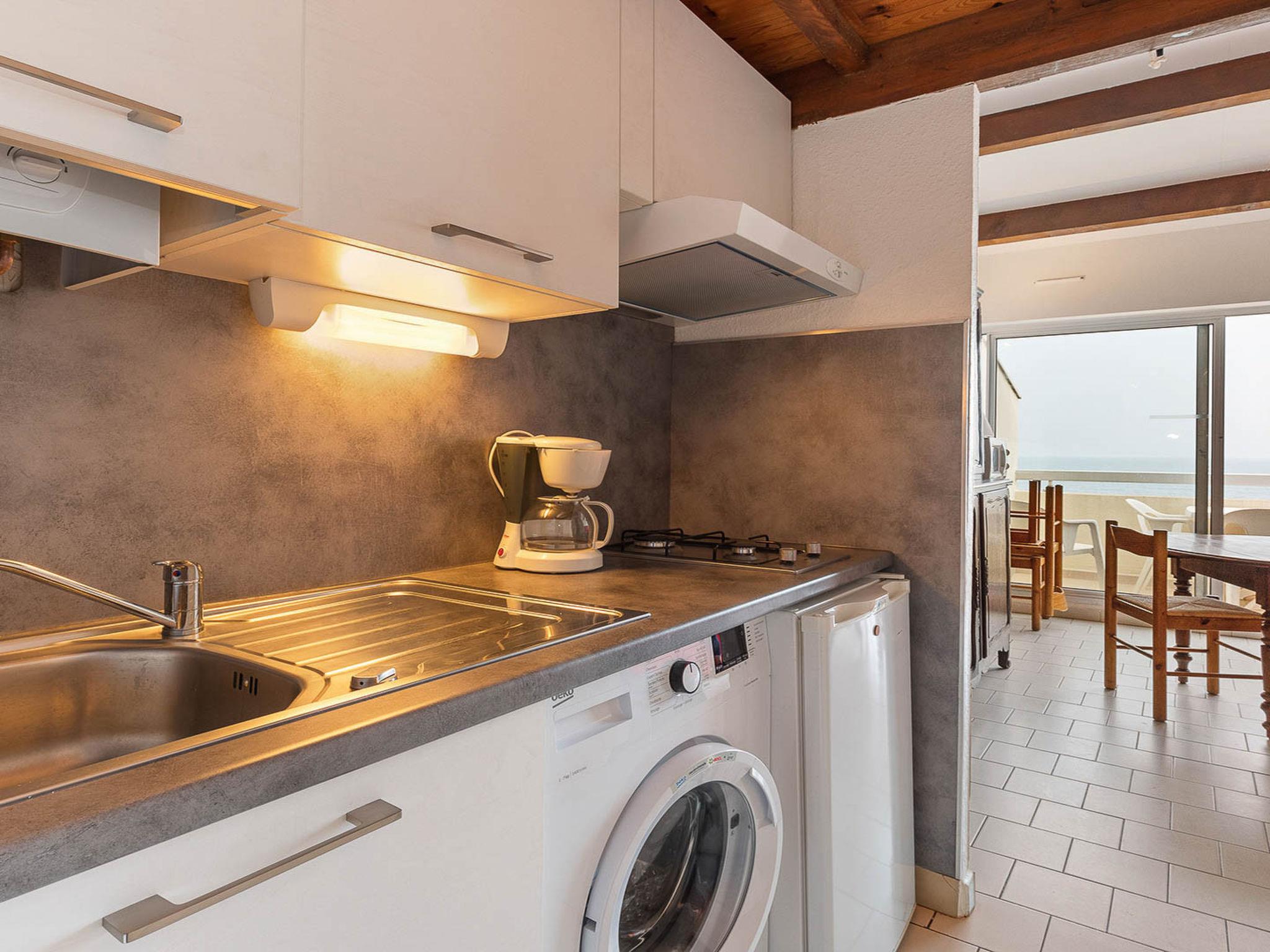 "Thalacap B", 1-room studio 20 m2 on 1st floor. Object suitable for 4 adults. Living room with 1 sofabed and 1 x 2 bunk beds, 1 pull-out bed and TV. Kitchen (2 hot plates, oven, microwave, electric coffee machine). Shower/WC. Balcony. View of the sea. Facilities: washing machine. Parking (1 car). Please note: non-smokers only. 1 pet/ dog allowed. Smoke alarm. Offer by a commercial proprietor according to Art. 155, IV, CGI