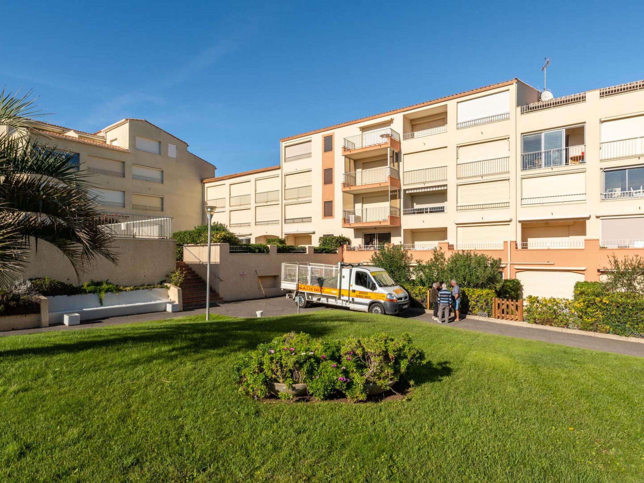 Agde: Apartment block. For shared use: swimming pool (seasonal availability: 03.Jun. - 24.Sep.). In the house: lift. Sandy beach 200 m.