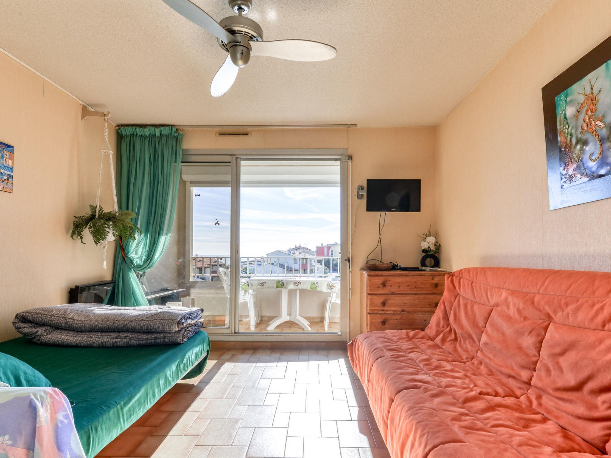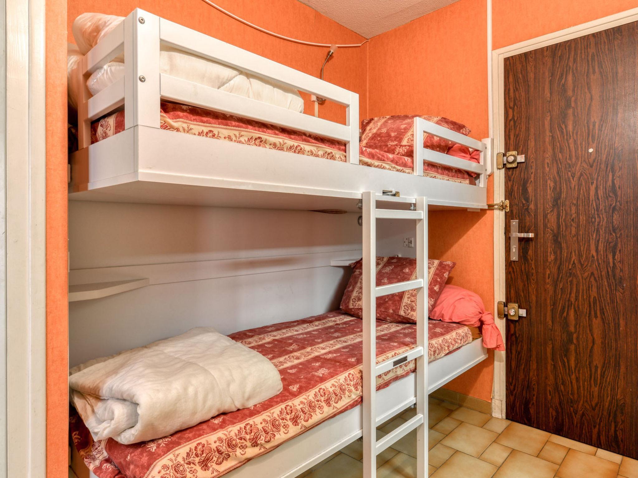 "Les Indes Galantes", 1-room studio 28 m2 on 4th floor. Object suitable for 6 adults. Living room with 2 sofabeds and 1 x 2 bunk beds, 2 pull-out beds and TV. Kitchen (2 induction hot plates, toaster, kettle, microwave, freezer, electric coffee machine). Bath/WC. Balcony. View of the sea and the swimming pool. Facilities: washing machine, iron. Internet (WiFi, free). Parking (1 car). Please note: non-smokers only. Smoke alarm. Offer by a commercial proprietor according to Art. 155, IV, CGI