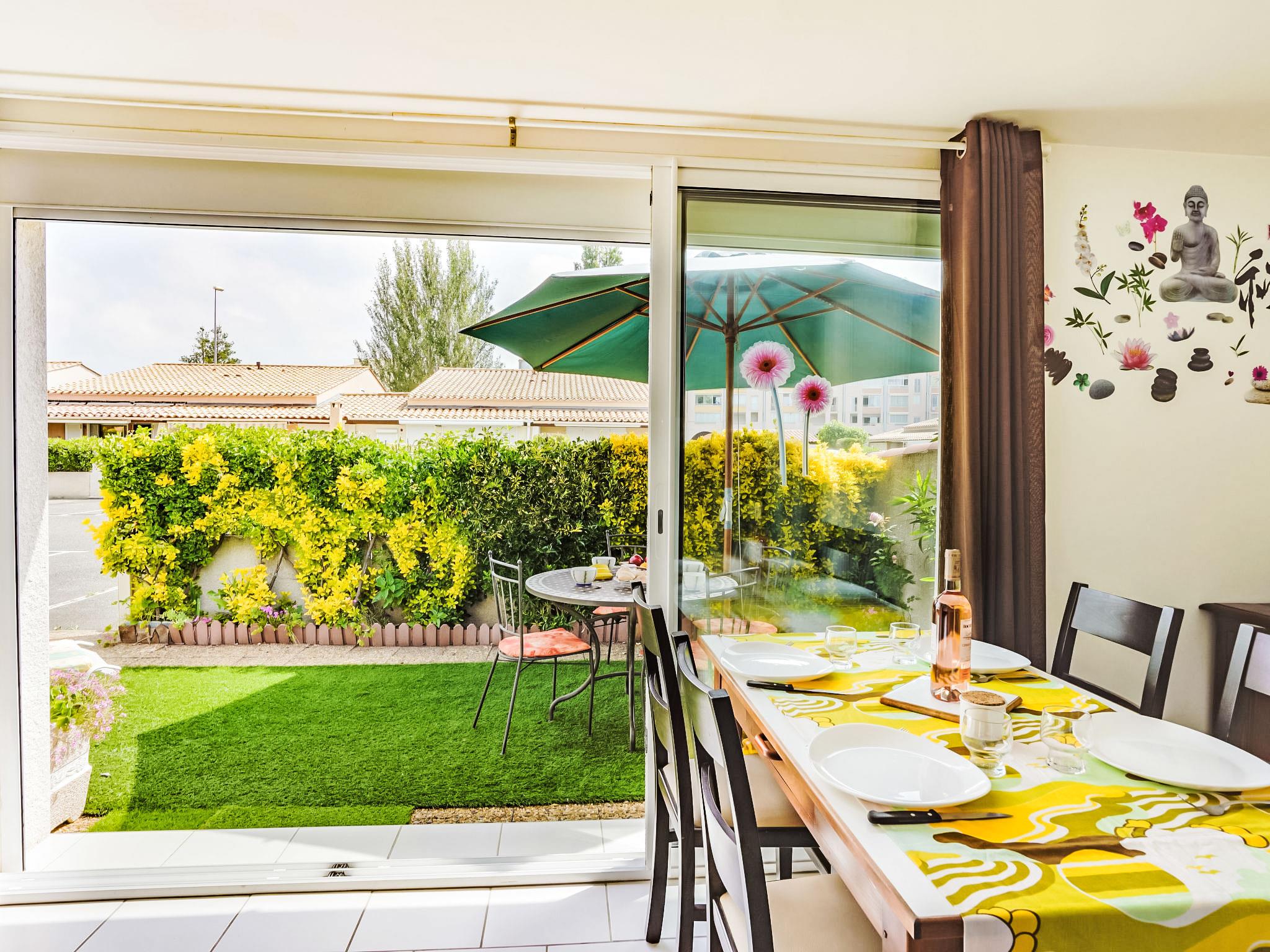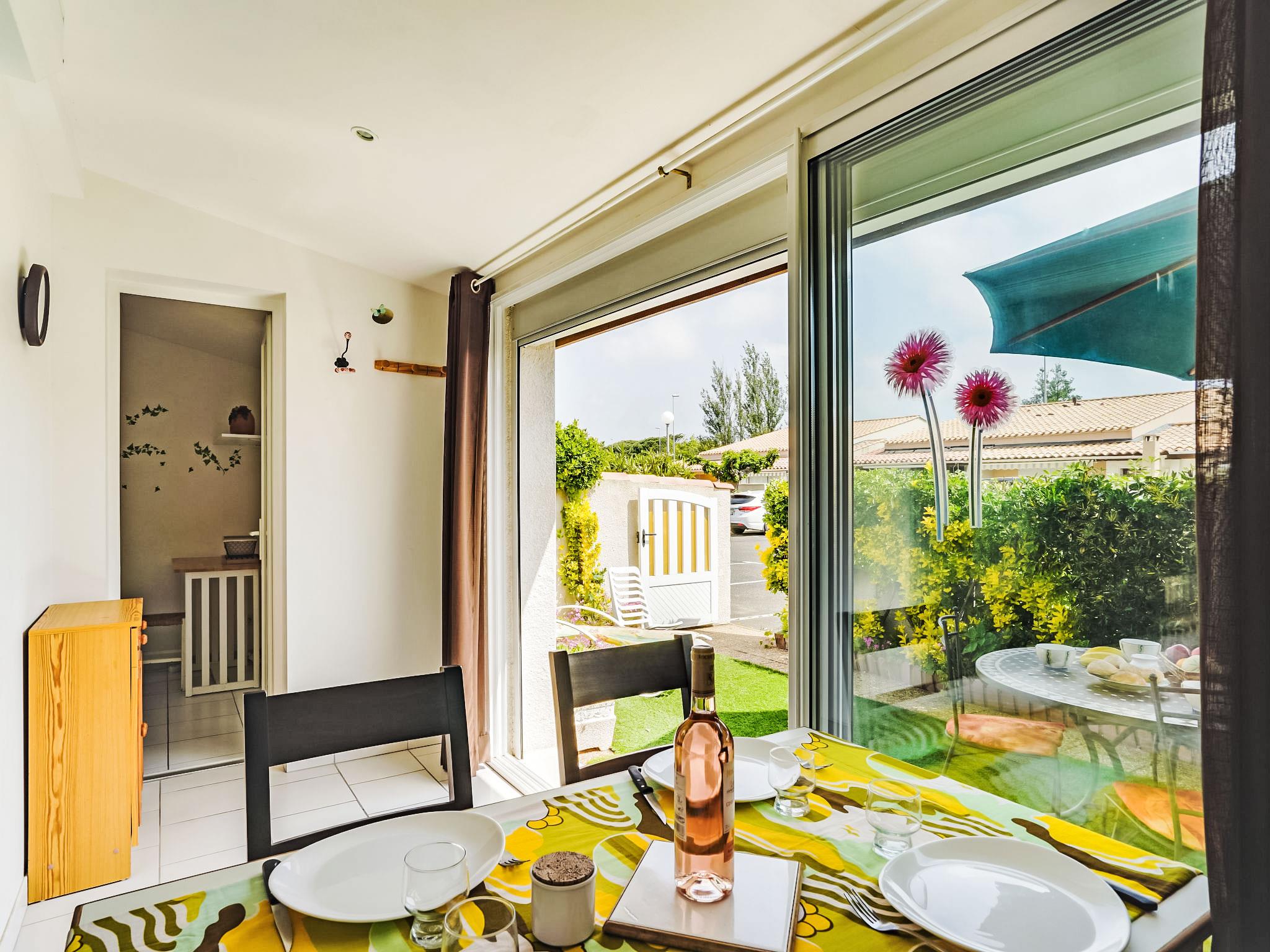 Residence "Les Cristallines". In the district of Richelieu, 400 m from the sea, 400 m from the beach. For shared use: swimming pool (12 x 6 m, depth 80 - 185 cm, seasonal availability: 28.May. - 30.Sep.). Parking at the house. Shop 400 m, grocery 1.4 km, restaurant 100 m, bakery 120 m, bus stop "Corsaires" 180 m, sandy beach "Richelieu" 400 m. Sports harbour 2 km, golf course (27 hole) 700 m, tennis 3 km. Nearby attractions: Aqualand 300 m, Ile des Loisirs 500 m, Musée de l'Ephèbe 2 km, Casino 2 km.