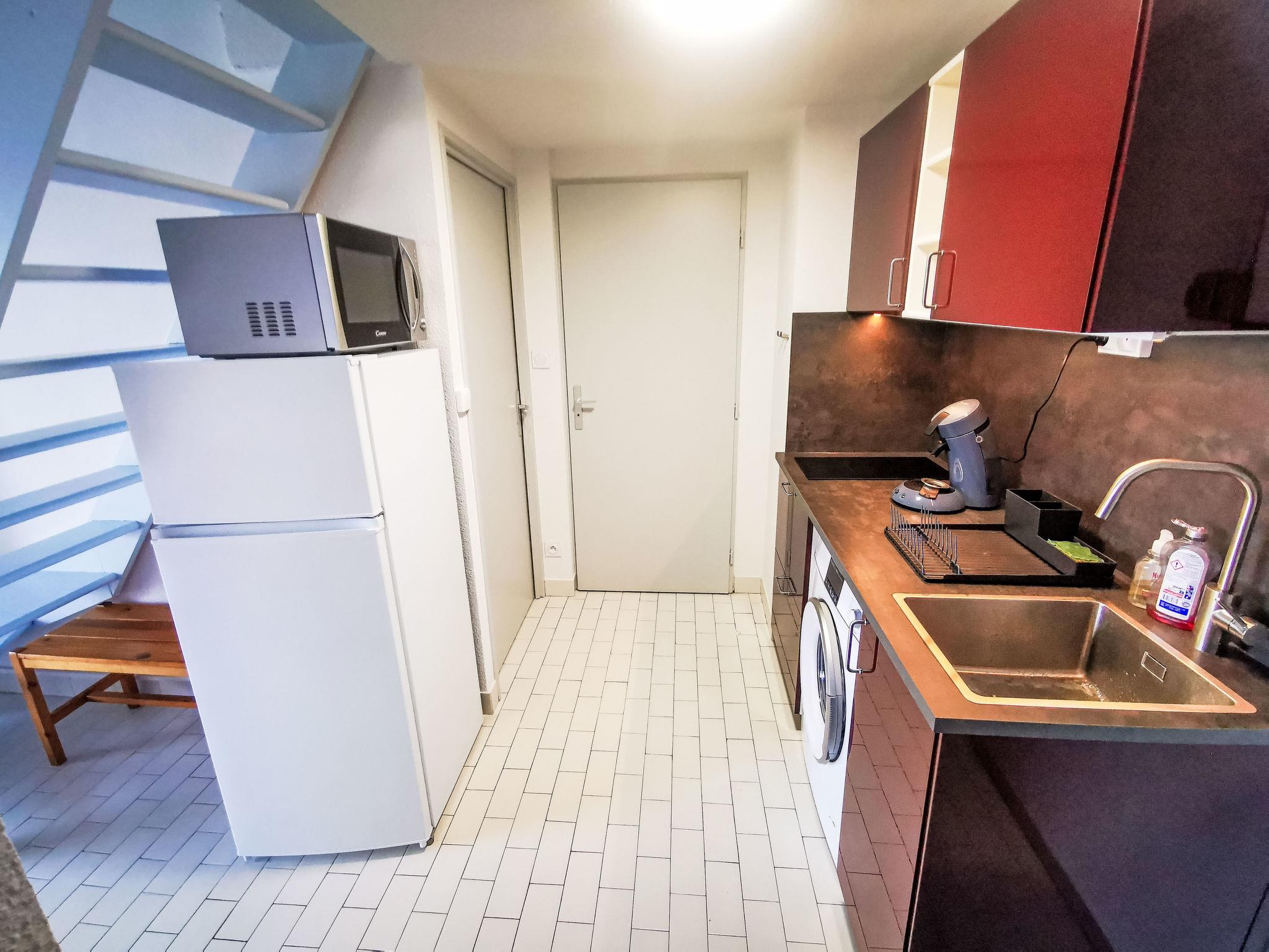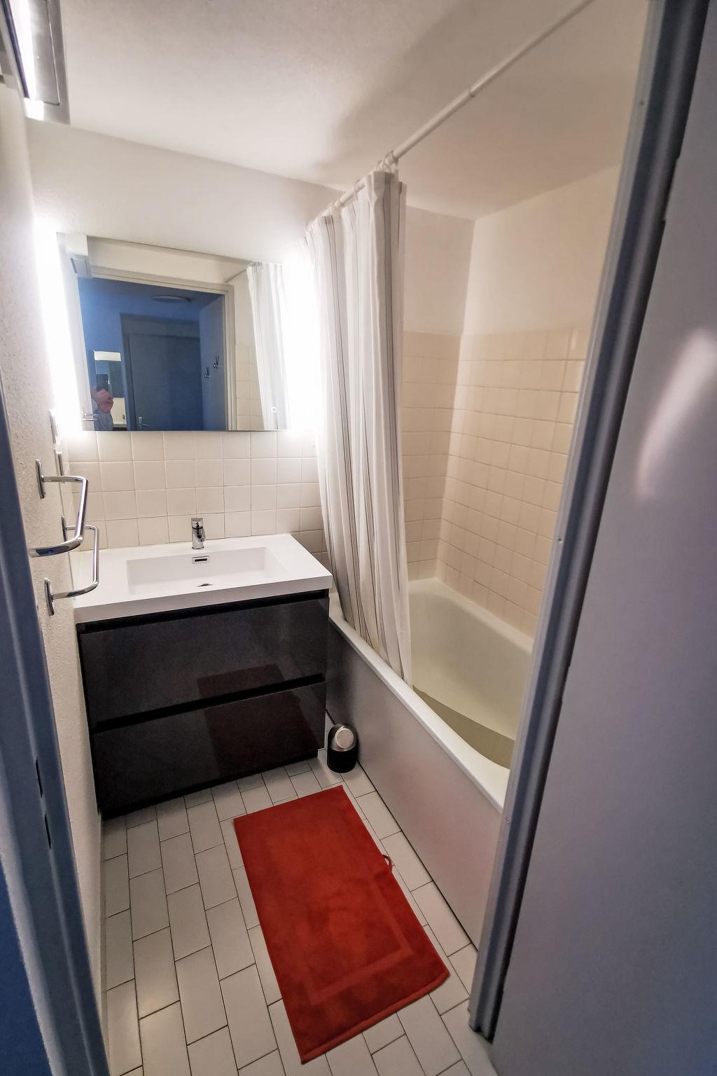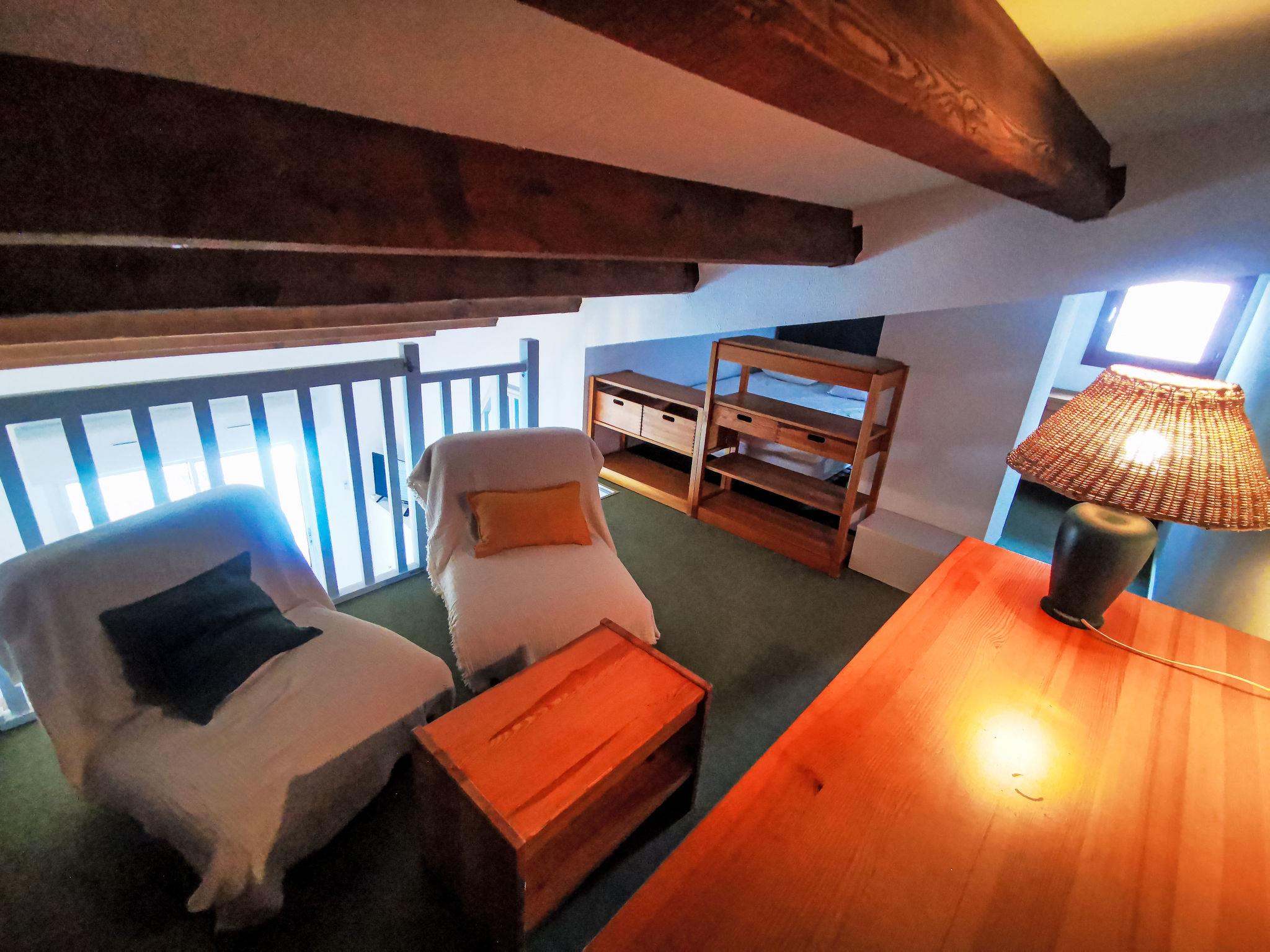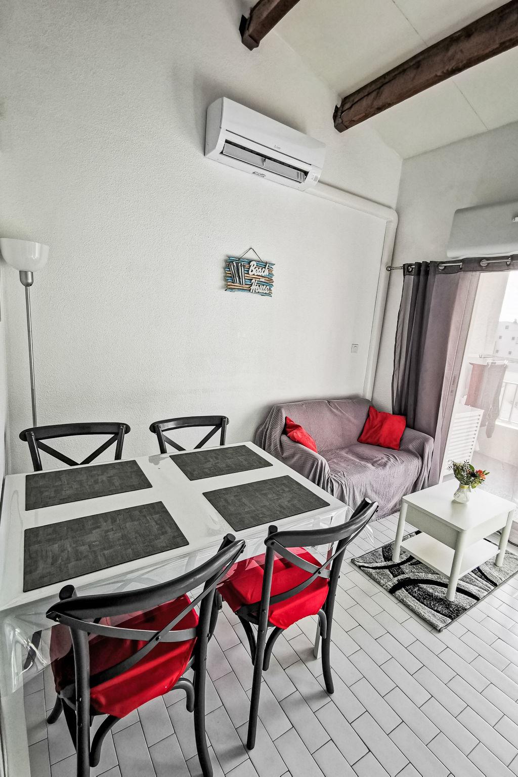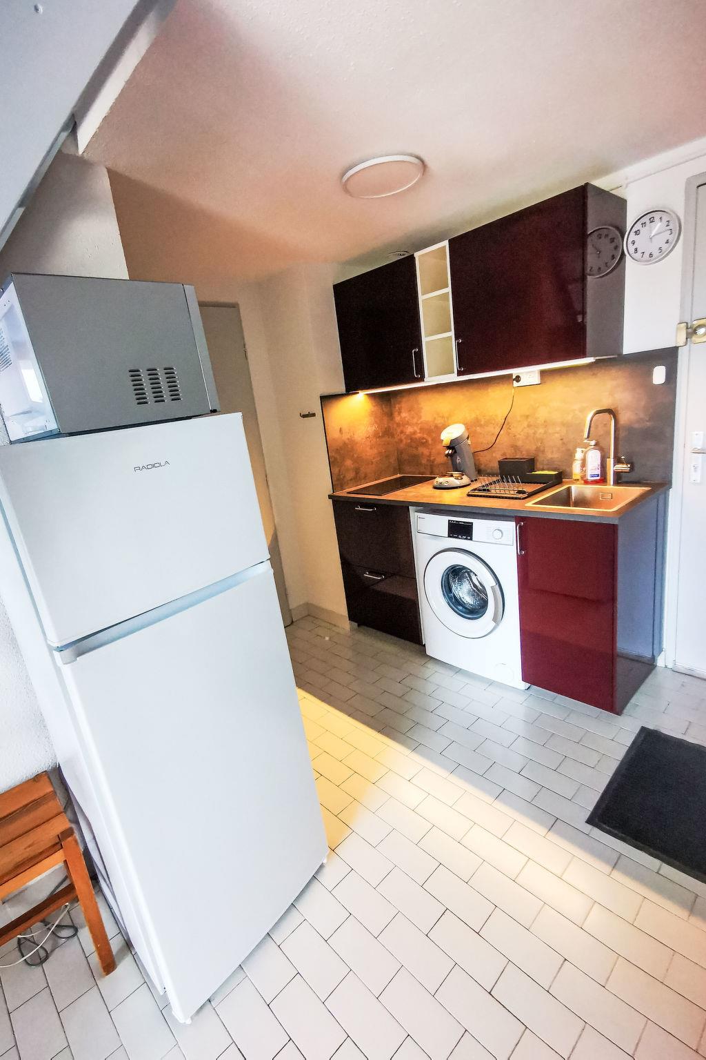 2-room apartment 40 m2 on 2 levels on 2nd floor. Living/dining room with TV (flat screen), air conditioning. Exit to the terrace. 1 room with 1 french bed (140 cm, length 190 cm). Kitchenette (2 induction hot plates, kettle, microwave, electric coffee machine, Capsules for coffee machine (senseo)). Bathroom, sep. WC. Upper floor: open gallery with sloping ceilings, ceiling height 105 - 185 cm with 1 french bed (140 cm, length 190 cm). Terrace 8 m2. Facilities: washing machine. Internet (WiFi, extra). Parking space n 152. Please note: non-smokers only. Smoke alarm. Offer by a private individual according to Art. 155, IV of CGI.