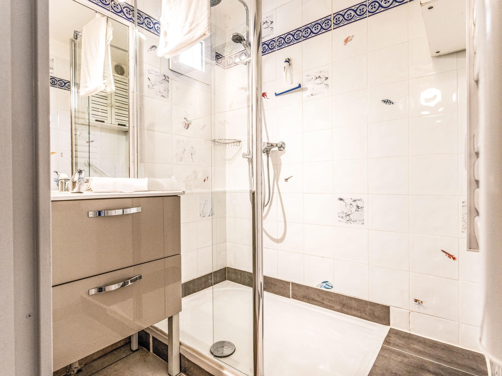 3-room terraced house 55 m2 on 2 levels. Living/dining room with panoramic window with TV (flat screen), air conditioning. Exit to the terrace. 1 room with 1 french bed (140 cm, length 190 cm), air conditioning. Kitchenette (2 hot plates, mini-oven, oven, dishwasher, 4 induction hot plates, microwave, freezer, grill, electric coffee machine, combination microwave). Shower, sep. WC. Upper floor: gallery with sloping ceilings with 1 french bed (140 cm, length 190 cm), separate WC. 1 room with 1 x 2 bunk beds (90 cm, length 190 cm), air conditioning. Large terrace 40 m2. Terrace furniture. Facilities: washing machine. Internet (WiFi, free). Parking space n 48. Please note: suitable for families. Non-smoking house. Smoke alarm. Offer by a private individual according to Art. 155, IV of CGI.
