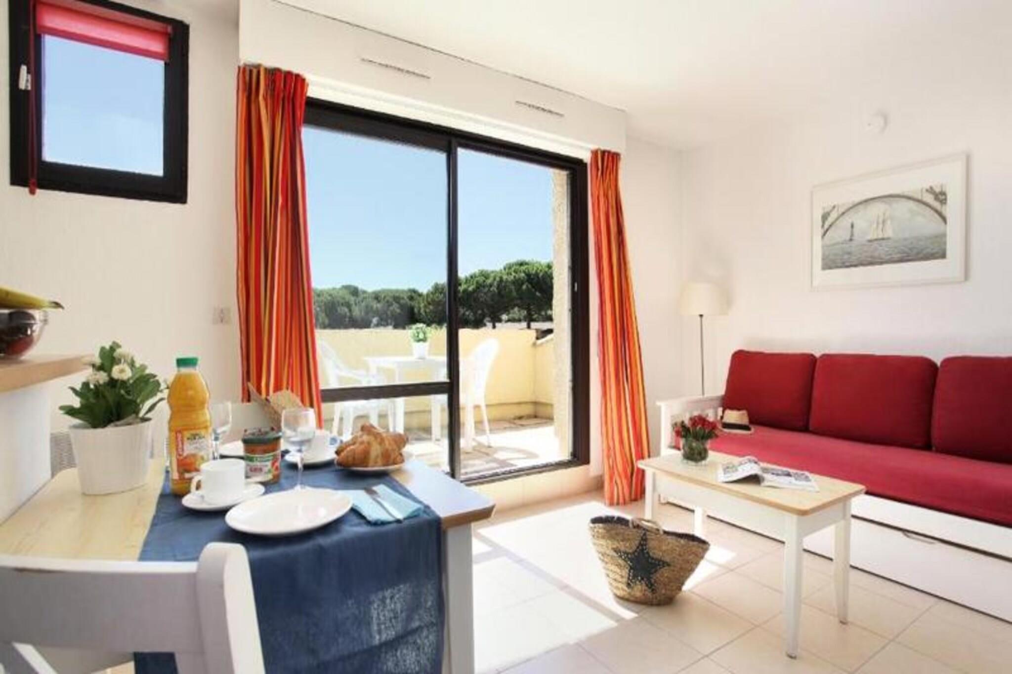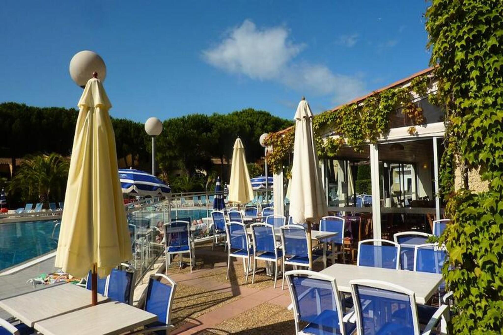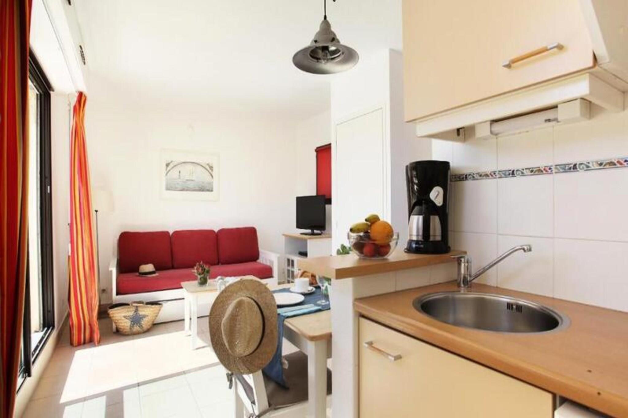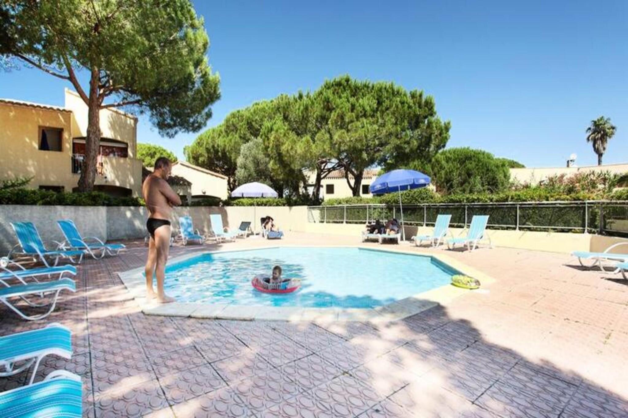Denne hyggelige studiolejlighed til 2 personer tilbyder et komfortabelt opholdsrum med en dobbelt sovesofa, hvilket gør den perfekt til en afslappende ferie. Studiet har en privat balkon, så gæsterne kan nyde den friske luft og omgivelserne. Kæledyr er tilladt mod et ekstra gebyr, hvilket sikrer, at dine lodne venner kan deltage i det sjove. Ejendommen tilbyder WiFi-adgang for din bekvemmelighed, og en lukket privat parkeringsplads er tilgængelig for hver bolig. Beliggende i hjertet af Cap d'Agde er dette feriested omgivet af frodige grønne haver med palmer, damme og søer. Kun en kort afstand fra havnen og smukke sandstrande kan gæsterne udforske områdets livlige atmosfære. Nyd den 14 km lange kystlinje, perfekt til solbadning, vandsport og afslapning ved havet. Nærliggende attraktioner omfatter også aktiviteter såsom vandreture, cykling og sport, hvilket sikrer, at der er noget for enhver smag. Lejligheden har et veludstyret tekøkken med vigtige apparater til at tilberede måltider, samt et brusebad og separat toilet for ekstra komfort. Den store 360 ??m² store swimmingpool er et stort højdepunkt, der tilbyder både en opvarmet udendørs pool og en børnebassin. Gæsterne kan også drage fordel af aktiviteter på stedet, herunder minigolf, cykling og bueskydning, hvilket gør det til en sjov ferie for hele familien.