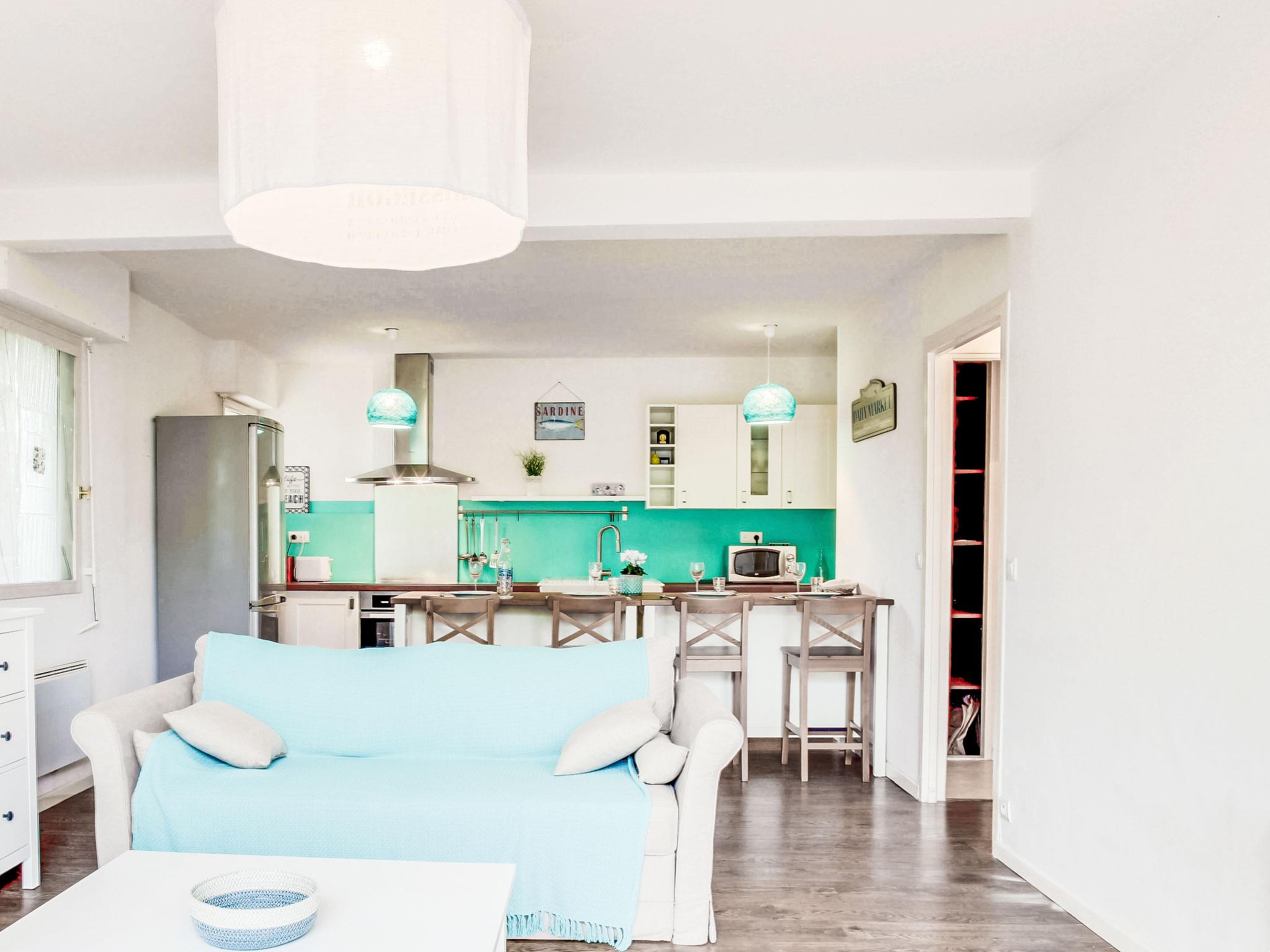2-room apartment 50 m2, on the ground floor. Comfortable and beautiful furnishings: living room with 1 sofabed (130 cm, length 190 cm). Exit to the terrace. 1 room with 2 beds (90 cm, length 200 cm). Open kitchen (oven, dishwasher, 3 induction hot plates, electric coffee machine) with dining table. Shower, sep. WC. Electric heating. Terrace 20 m2, east facing position. Terrace furniture. Facilities: washing machine. Internet (WiFi, extra). Please note: suitable for families. Non-smokers only. Smoke alarm. 400650000123J