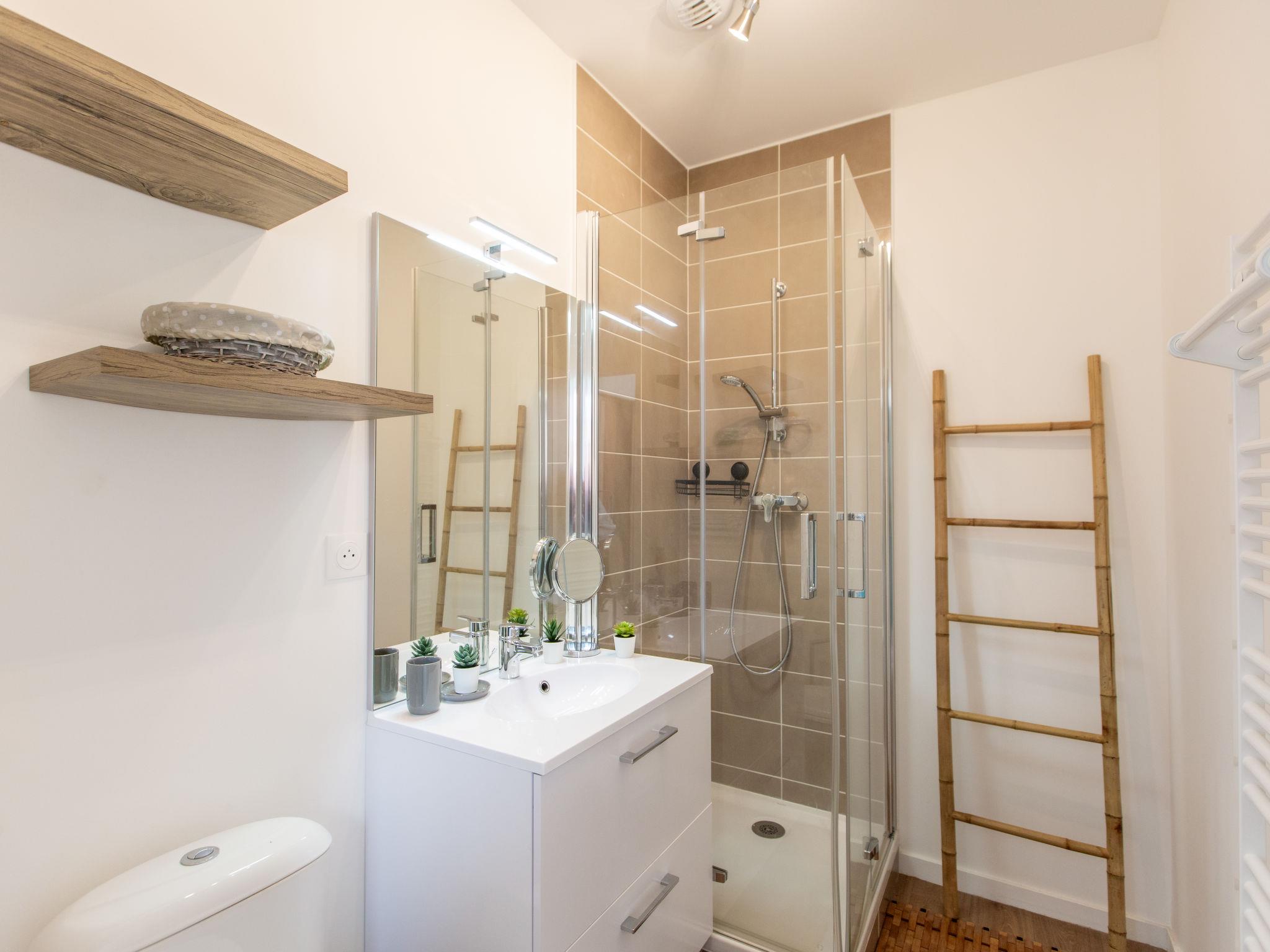 Capbreton: Apartment block "Cap Océan", 2 storeys, built in 2023. 17 apartments in the residence. In the resort, 150 m from the sea, 150 m from the beach. In the complex: washing machine, tumble dryer (for shared use). Public parking on the road. Shop 300 m, grocery 150 m, supermarket 1.8 km, restaurant 50 m, bakery 150 m, bicycle rental 100 m, bus stop "Capbreton Estacade" 300 m, sandy beach "Du Prévent" 150 m. Golf course (18 hole) 4 km, surf school 150 m, tennis 3 km, minigolf 200 m, riding stable 1 km. Nearby attractions: Seignosse 15 km, Bayonne 22 km, Dax 37 km, Biarritz 37 km. Well-known lakes can easily be reached: Réserve Naturelle des Marais d’Orx, Réserve Naturelle du courant d’Huchet.