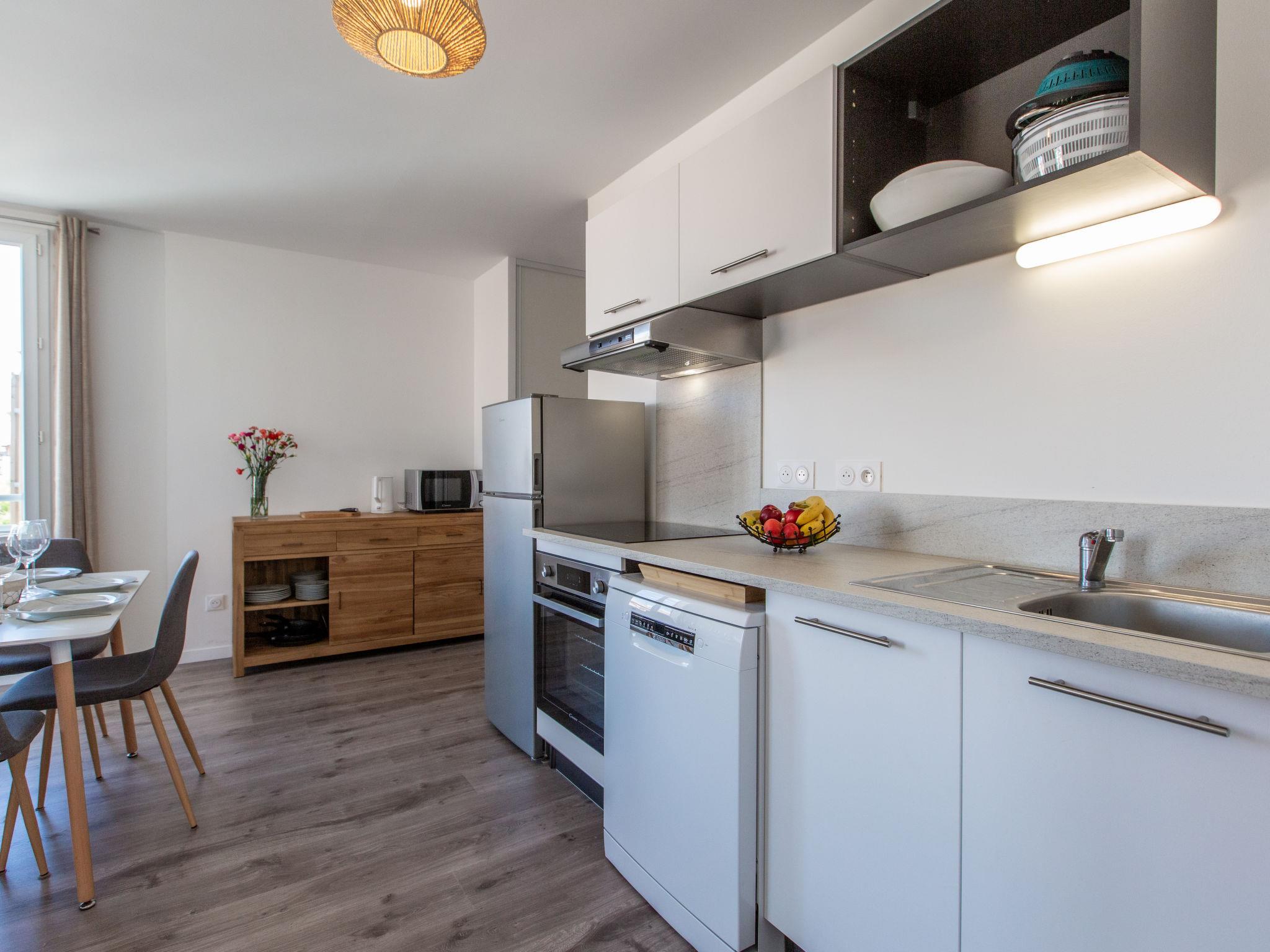 Capbreton: Apartment block "Cap Océan", 2 storeys, built in 2023. 17 apartments in the residence. In the resort, 150 m from the sea, 150 m from the beach. In the complex: washing machine, tumble dryer (for shared use). Public parking on the road. Shop 300 m, grocery 150 m, supermarket 1.8 km, restaurant 50 m, bakery 150 m, bicycle rental 100 m, bus stop "Capbreton Estacade" 300 m, sandy beach "Du Prévent" 150 m. Golf course (18 hole) 4 km, surf school 150 m, tennis 3 km, minigolf 200 m, riding stable 1 km. Nearby attractions: Seignosse 15 km, Bayonne 22 km, Dax 37 km, Biarritz 37 km. Well-known lakes can easily be reached: Réserve Naturelle des Marais d’Orx, Réserve Naturelle du courant d’Huchet.