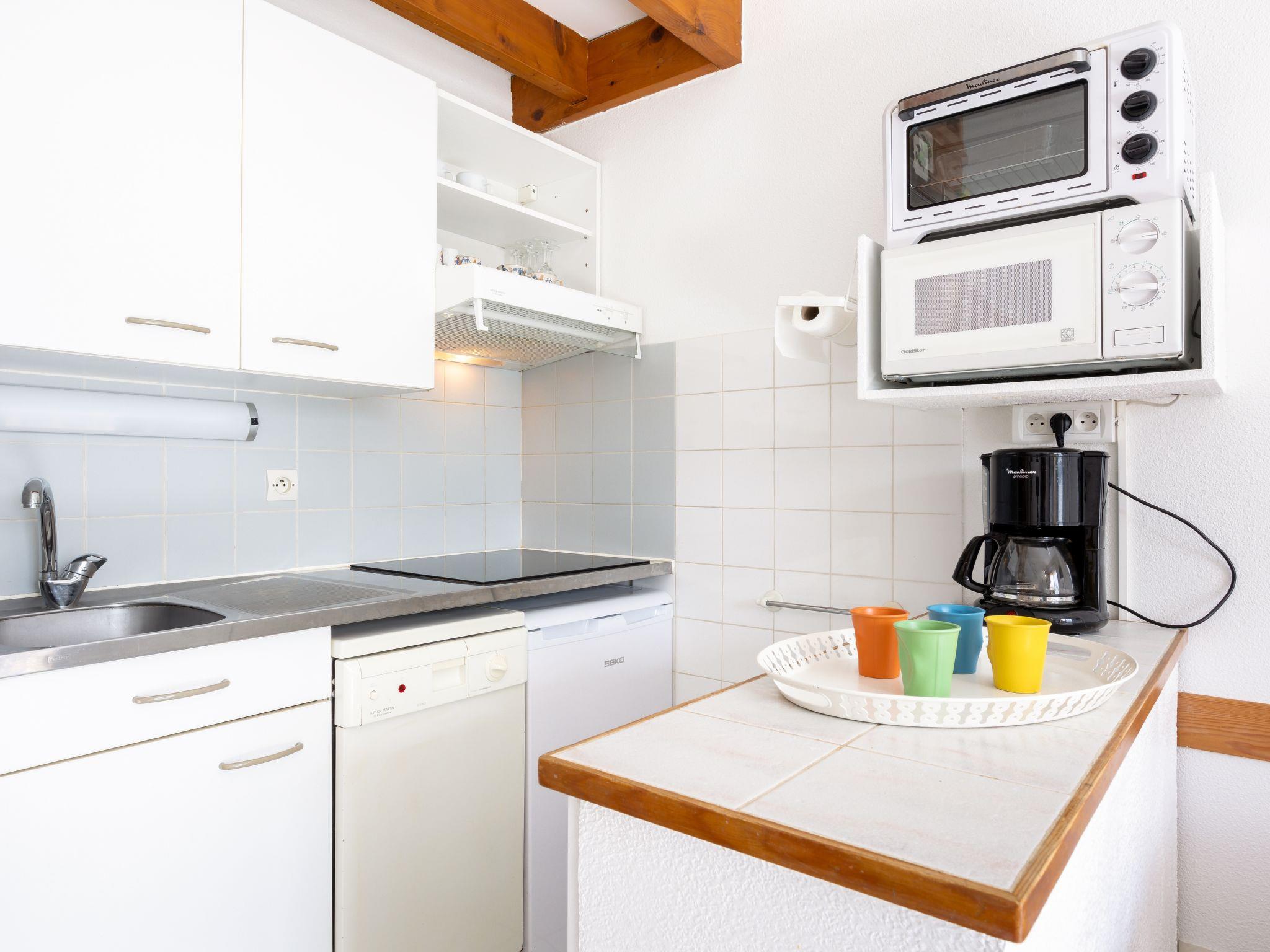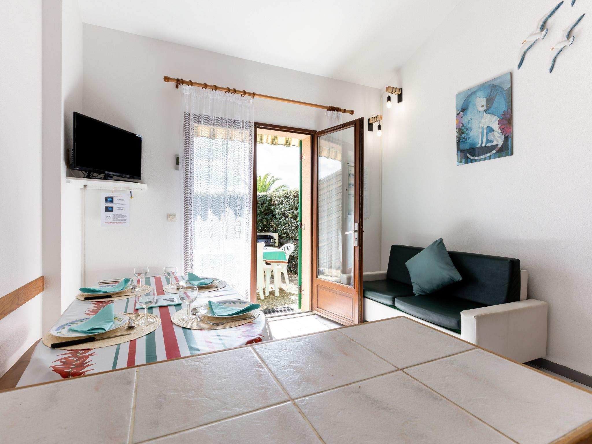 2-room terraced house 32 m2 on 2 levels. Living room with TV. Exit to the terrace. 1 room with 1 french bed (140 cm, length 190 cm). Kitchenette (2 hot plates, mini-oven, dishwasher, microwave). Bathroom, sep. WC. Electric heating. Upper floor: gallery with 1 x 2 bunk beds. Facilities: Internet (WiFi, extra). Please note: smoke alarm. Instead of an enclosed bedroom, some sleeping areas are located in an open-plan area (gallery, alcove, etc.). 40065000129IR