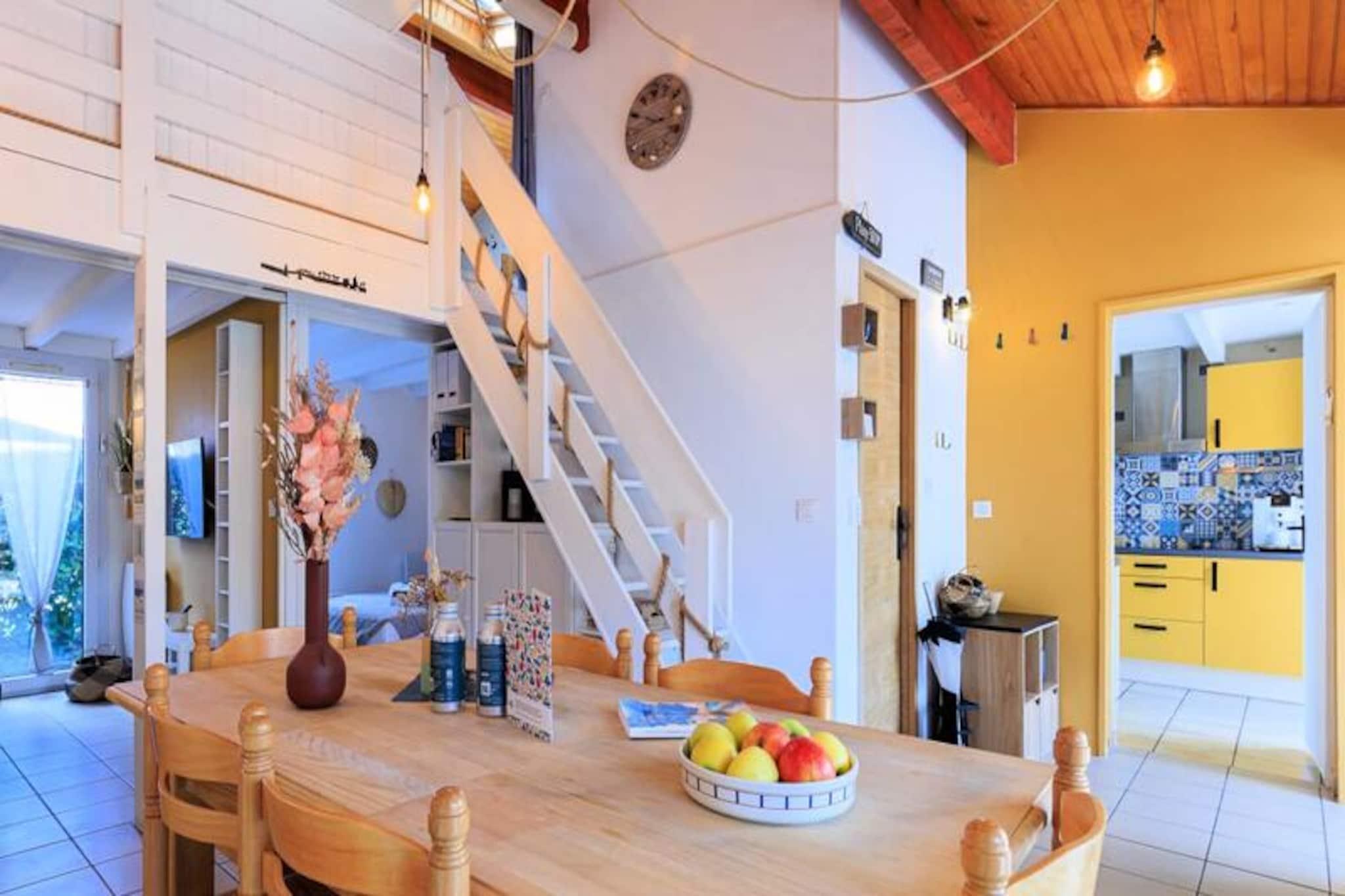 I den fredfyldte kystby Capbreton tilbyder dette charmerende hus på 60 m² et roligt tilflugtssted kun få øjeblikke fra havet og det pulserende bycentrum. Omgivet af frodigt grønt og naturens beroligende lyde inviterer denne ejendom dig til at opleve den perfekte blanding af afslapning og eventyr. Uanset om du planlægger en familieferie, en romantisk flugt eller en ferie med venner, er dette hjem den ideelle base for at udforske Landes-regionens skønhed. Træd indenfor og oplev et gennemtænkt designet rum, der komfortabelt rummer op til seks gæster. Stueetagen har en hyggelig opholds- og spisestue, et fuldt udstyret køkken med moderne apparater og et soveværelse med en dobbeltseng. Ovenpå er der den 16 m² store mezzanin, der rummer et familieværelse med en dobbeltseng og to enkeltsenge, hvilket sikrer afslappende nætter for alle. Udenfor venter en skyggefuld terrasse med grill, liggestole og et spisebord, perfekt til udendørs måltider og afslappede eftermiddage. Yderligere faciliteter inkluderer Wi-Fi, et tv, en vaskemaskine og privat parkering, hvilket sikrer et stressfrit ophold. Capbretons fantastiske strande, travle marked og berømte restauranter er alle inden for rækkevidde. Udforsk den nærliggende Vélodyssée-cykelrute, eller nyd frisk fisk og skaldyr på lokale favoritter som Soweto og Mambo. For dem, der søger eventyr, tilbyder havet uendelige muligheder for surfing, paddleboarding og meget mere. Med Biarritz og lufthavnen kun en kort køretur væk kombinerer denne beliggenhed bekvemmelighed med kystcharme. Lad dette dejlige hus være din indgang til den franske levevis. Fra de fredelige omgivelser til de moderne komfort er hver eneste detalje designet til at gøre din ferie uforglemmelig. Uanset om du nyder lokale delikatesser, cykler gennem naturskønne stier eller blot slapper af på terrassen, lover dette Capbreton-tilflugtssted minder, du vil værdsætte for evigt.