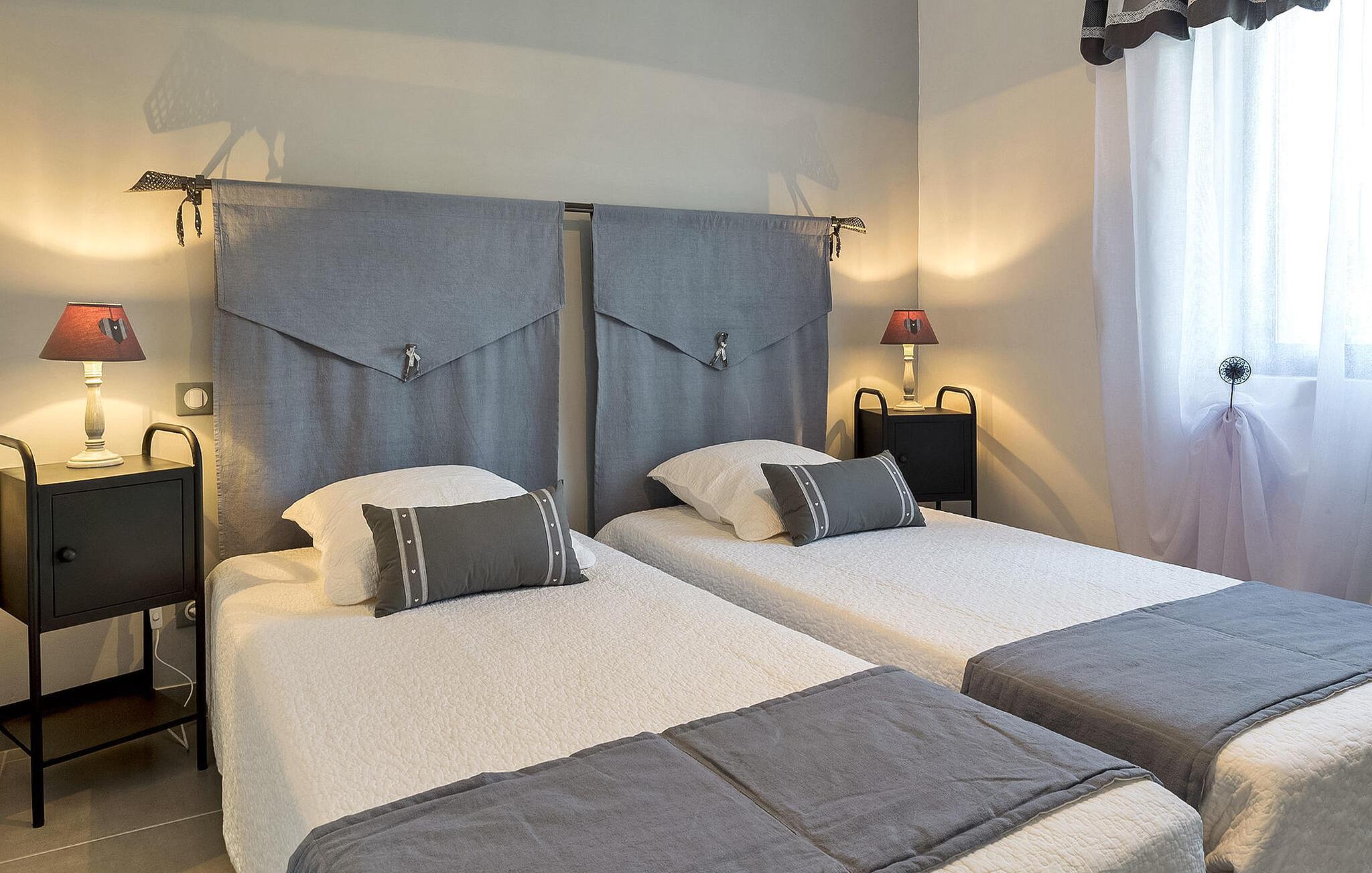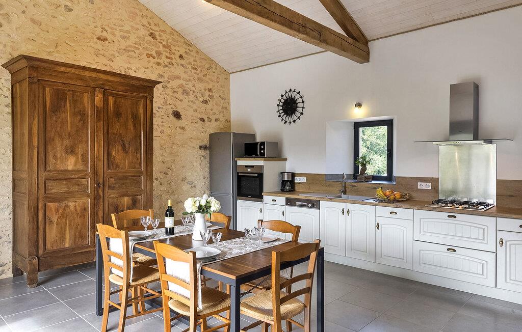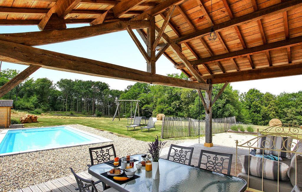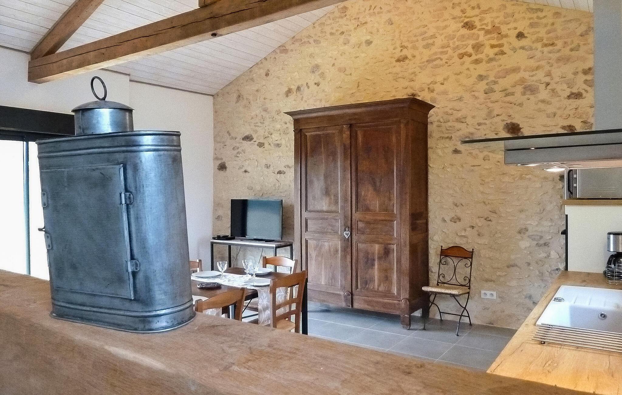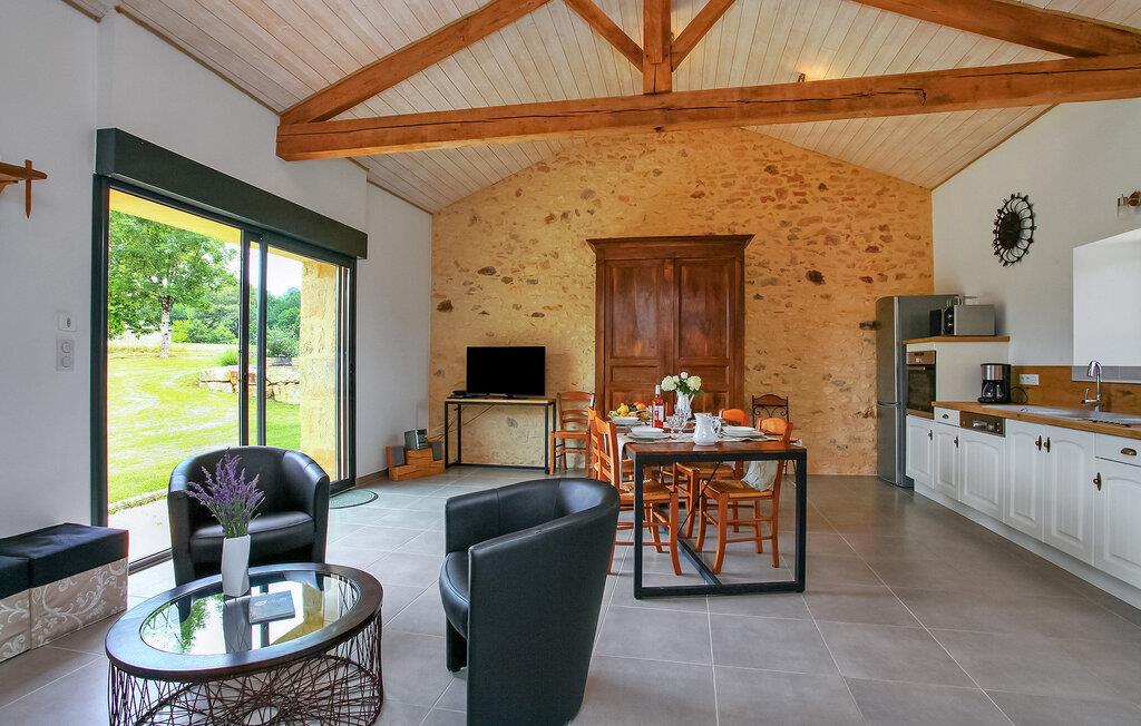 Oplev et charmerende ferieparadis beliggende i det fredfyldte landskab, et roligt tilflugtssted kun en kort afstand på cirka 3 km fra Monpazier, hvor alle dine indkøbsbehov er opfyldt. Dette nyligt renoverede et-etagers feriehus byder på et hyggeligt opholdsrum, der ubesværet kombinerer praktisk med komfort. Træd indenfor for at finde et velindrettet køkkenområde. Det indbydende spise-/siddeområde kan prale af en karnap, der giver problemfri adgang til det fri. Når du træder udenfor på den ekspansive grund, bliver du mødt af store græsarealer med malerisk udsigt over det omkringliggende landskab. En overdækket terrasse har udsigt over den private sikrede pool, der inviterer dig til at nyde afslappede stunder midt i det naturskønne landskab. Der er også en praktisk grill til udendørs spisning. Så kom og nyd roen i dette dejlige landskabsretræte. Huset ligger inden for 3 km fra Monpazier, hvor du finder alle butikkerne. Nyd din ferie i Dordogne i Quercy - Périgord.
