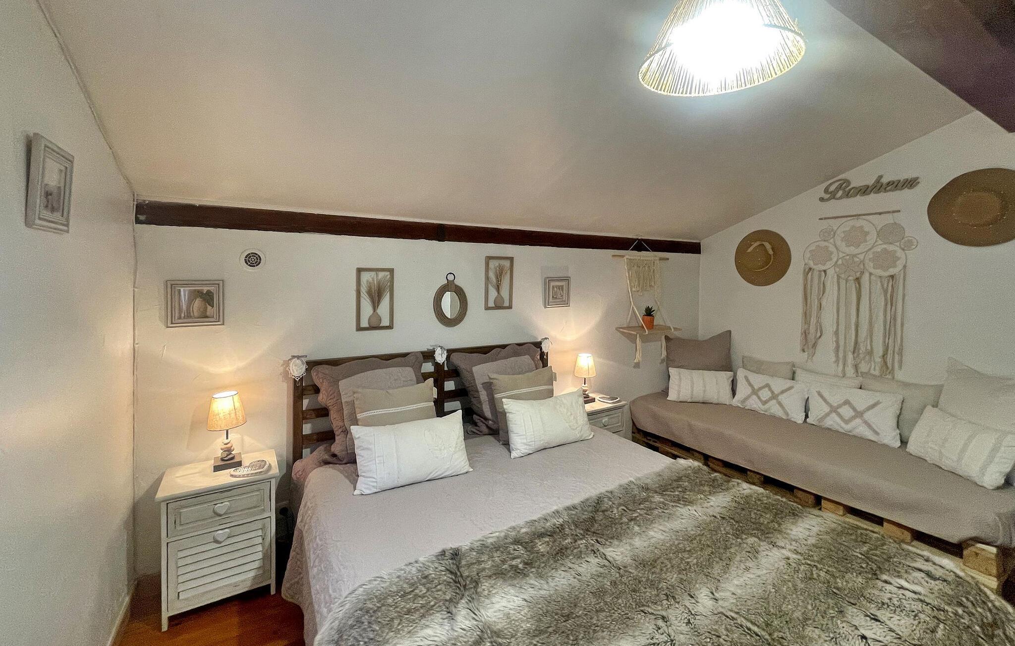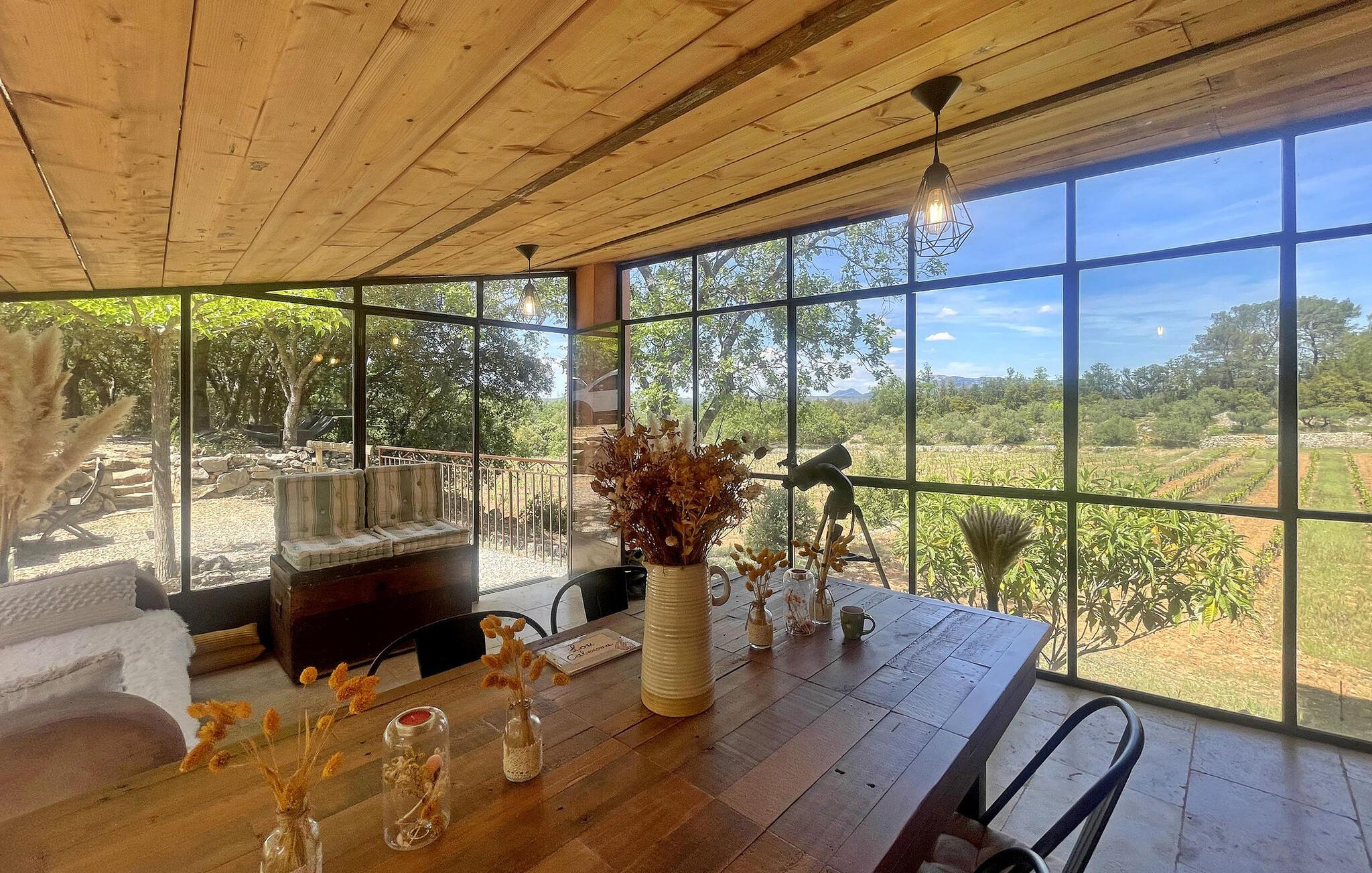 Oplev roen i Carcès på denne charmerende ferie omgivet af vinmarker og oliventræer. Denne helt unikke ejendom tilbyder et roligt sted at nyde din ferie til Frankrig. Stueetagen har en fuldt glaseret stue med betagende panoramaudsigt over den omkringliggende vingård, plus en anden stue med aircondition, hvilket gør det til et dejligt køligt tilflugtssted i de varmere sommermåneder. Adgang til første sal og haveniveau er via en finurlig trævindeltrappe. Ovenpå byder loftsværelse 2 dig velkommen med en dobbeltseng og en ekstra enkeltseng egnet til et barn. En udendørs terrasse med pizzaovn og havemøbler har udsigt over det vidtstrakte 7 hektar store land. En lille privat swimmingpool, 4 mx 3 m, med flad bund, er sikret med en alarm for ro i sindet. På grund af sin landlige beliggenhed involverer adgangen til ejendommen en stenet grusvej, uegnet til lave/sportsbiler. Huset ligger omkring 3,5 km fra landsbyen Carcès, hvor du finder alle lokale butikker og faciliteter. Du kan slentre til Caramy-vandfaldene, besøge hjertet af landsbyen og dens slot, mountainbiketure fra huset, vandre, cykle, besøge kældrene, fiske ved Carcès-søen... Fordyb dig i roen i denne landlige oase , perfekt til en foryngende ferieflugt. Venligst ikke hjemmet er ikke egnet til personer med nedsat mobilitet.