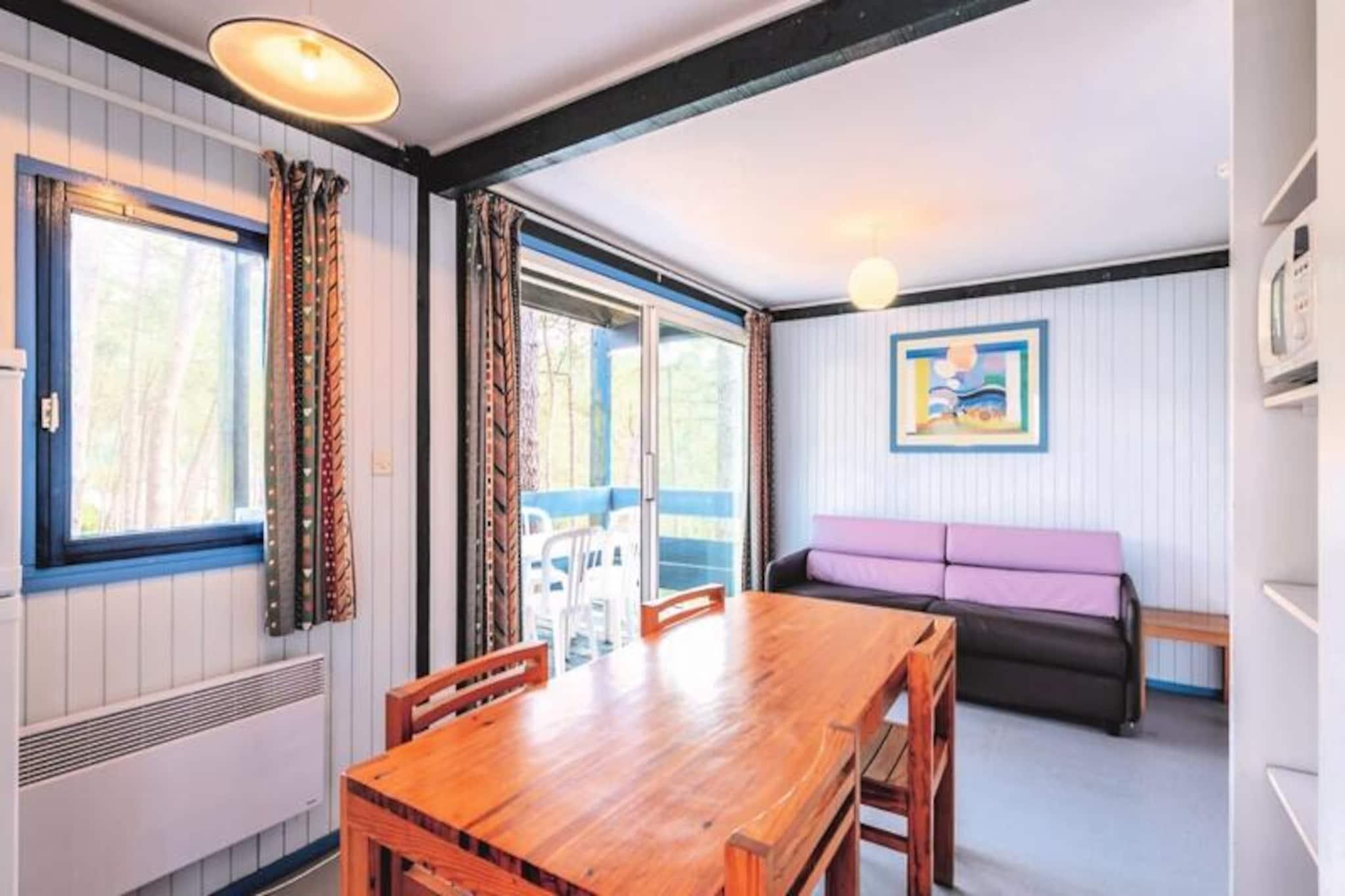 La Résidence Domaine Les Cavales se encuentra en Carcans, en la costa de Aquitania. Su proximidad al lago de Carcans y al océano al otro lado lo convierten en un lugar privilegiado para unas vacaciones en plena naturaleza, centradas en el deporte y las actividades acuáticas. La Residencia Domaine Les Cavales es ideal para familias: su piscina de 240 m² será el lugar favorito de grandes y pequeños en los bonitos días soleados. El lugar te deja soñando, en medio de los pinos, ¡el cambio de escenario será total! Si buscas recargar pilas, ¡esta residencia está hecha para ti! Estarás a menos de 5 minutos del lago Carcans, donde podrás practicar diferentes actividades acuáticas: piragüismo, windsurf, optimista. Tendrá acceso a 120 km de carriles bici directamente desde la residencia, suficientes para descubrir los bellos paisajes de la zona a su propio ritmo, en bicicleta. Salón con 1 sofá cama Cocina equipada Cuarto de baño, WC Balcón cubierto Se admiten mascotas - 10EURO/noche/mascota - Se permite 1 mascota por alojamiento (no permitida en zonas comunes) Depósito (adicional) - 200 Kit para bebé: cama, bañera y trona: disponible en préstamo previa solicitud al realizar la reserva Ropa de cama incluida (camas no hechas a la llegada) Ropa de baño - toalla: 3,50 euros; ; toalla de baño: 4,50 euros; ; Kit de baño (1 toalla + 1 toalla de baño + 1 esterilla): 7,50 EURO; Limpieza final de estancia - De 1 a 5 noches: Estudio 2/3 personas = 12 € / noche 3 habitaciones 4/6 personas = 18 € / noche A partir de 6 noches: Estudio 2/3 personas = 65 € 3 habitaciones 4/6 personas = 90 € Aparcamiento - gratuito Piscina - piscina no climatizada de 240 m² + piscina infantil de 40 m² - abierta toda la temporada Tasa turística (cargo adicional) - según tarifas vigentes, pago en el sitio