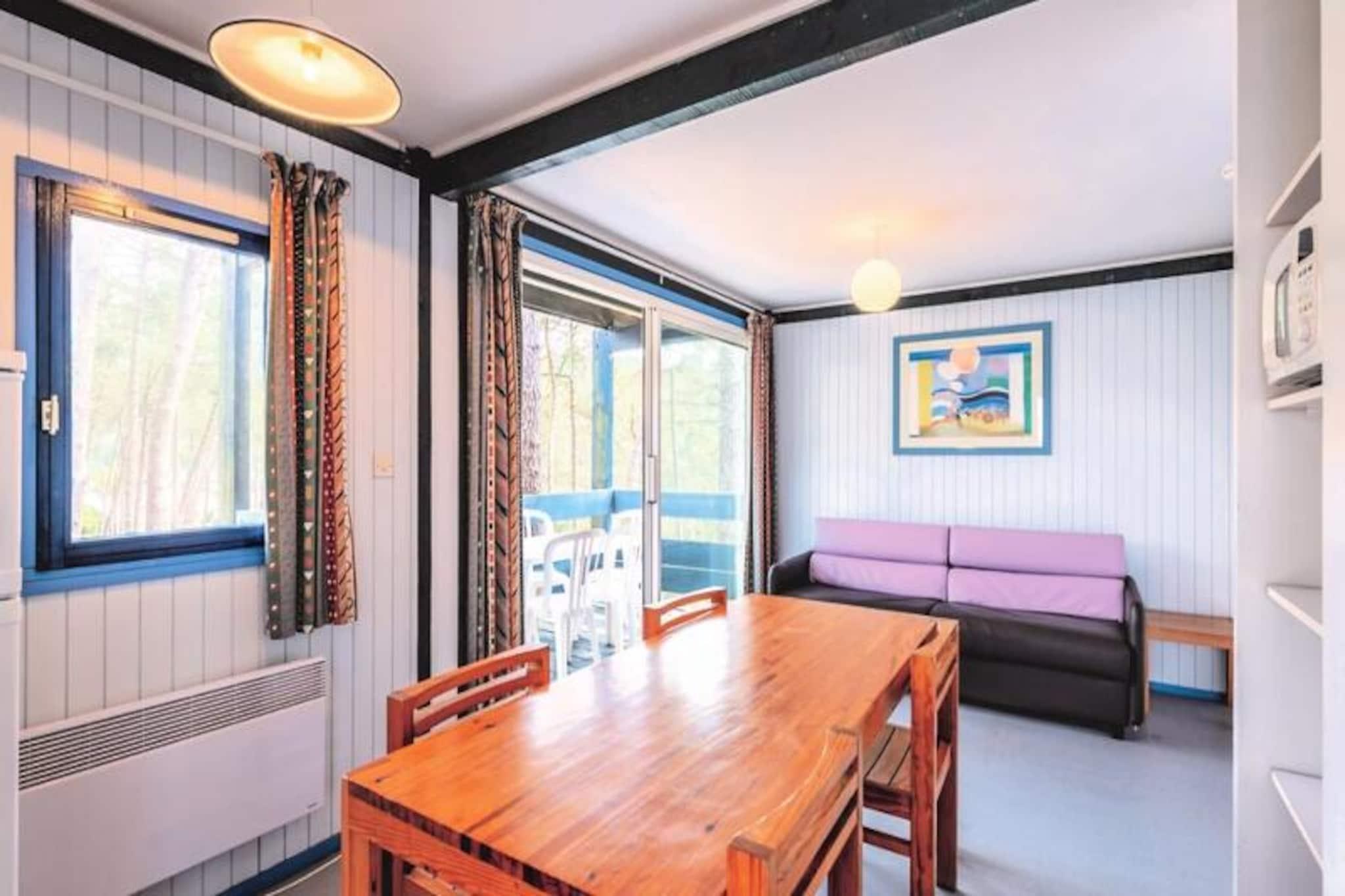 La Résidence Domaine Les Cavales se encuentra en Carcans, en la costa de Aquitania. Su proximidad al lago de Carcans y al océano al otro lado lo convierten en un lugar privilegiado para unas vacaciones en plena naturaleza, centradas en el deporte y las actividades acuáticas. La Residencia Domaine Les Cavales es ideal para familias: su piscina de 240 m² será el lugar favorito de grandes y pequeños en los bonitos días soleados. El lugar te deja soñando, en medio de los pinos, ¡el cambio de escenario será total! Si buscas recargar pilas, ¡esta residencia está hecha para ti! Estarás a menos de 5 minutos del lago Carcans, donde podrás practicar diferentes actividades acuáticas: piragüismo, windsurf, optimista. Tendrá acceso a 120 km de carriles bici directamente desde la residencia, suficientes para descubrir los bellos paisajes de la zona a su propio ritmo, en bicicleta. Permanecer Cocina equipada Habitación con 1 cama doble Dormitorio con literas de 2x2 Cuarto de baño, WC separado. Balcón cubierto Tenga en cuenta: el alojamiento está en la planta baja (unos pocos pasos para acceder al alojamiento) Se admiten mascotas - 10EURO/noche/mascota - Se permite 1 mascota por alojamiento (no permitida en zonas comunes) Depósito (adicional) - 200 Kit para bebé: cama, bañera y trona: disponible en préstamo previa solicitud al realizar la reserva Ropa de cama incluida (camas no hechas a la llegada) Ropa de baño - toalla: 3,50 euros; ; toalla de baño: 4,50 euros; ; Kit de baño (1 toalla + 1 toalla de baño + 1 esterilla): 7,50 EURO; Limpieza final de estancia - De 1 a 5 noches: Estudio 2/3 personas = 12 € / noche 3 habitaciones 4/6 personas = 18 € / noche A partir de 6 noches: Estudio 2/3 personas = 65 € 3 habitaciones 4/6 personas = 90 € Aparcamiento - gratuito Piscina - piscina no climatizada de 240 m² + piscina infantil de 40 m² - abierta toda la temporada Tasa turística (cargo adicional) - según tarifas vigentes, pago en el sitio